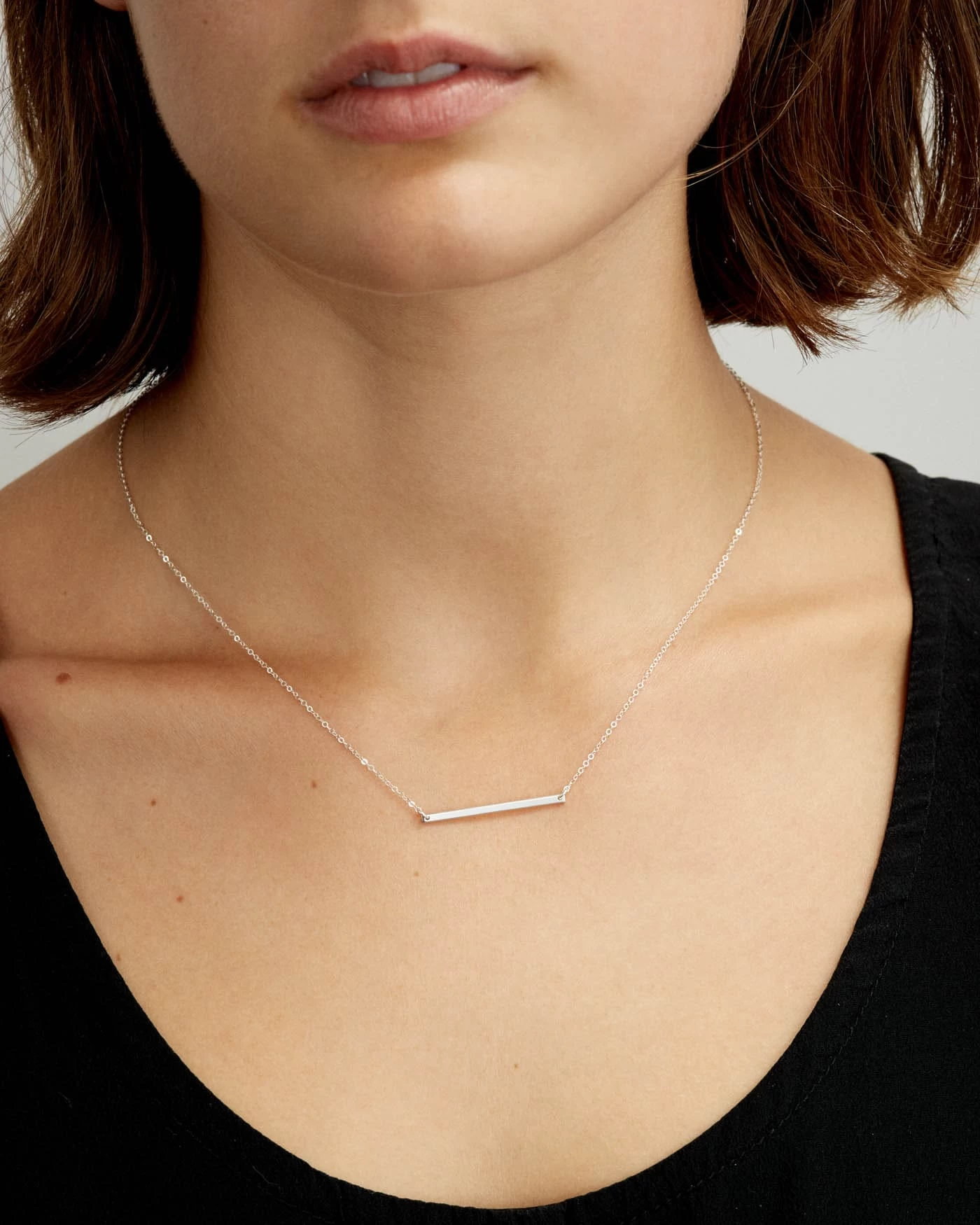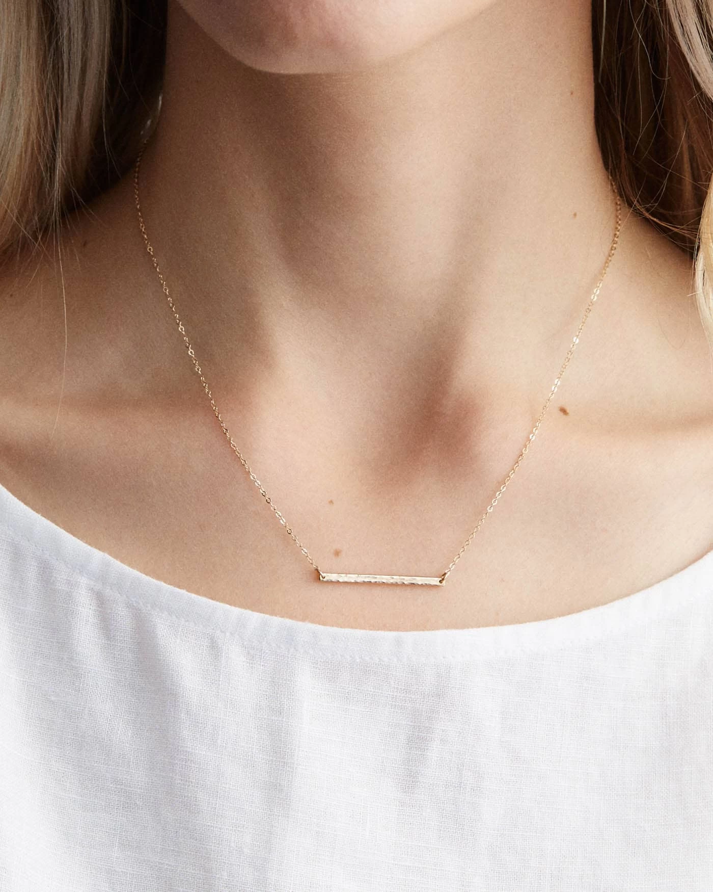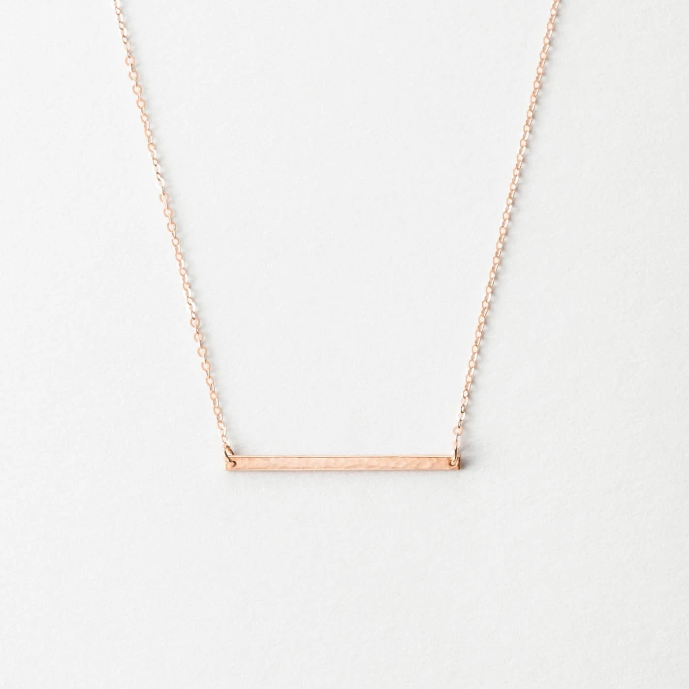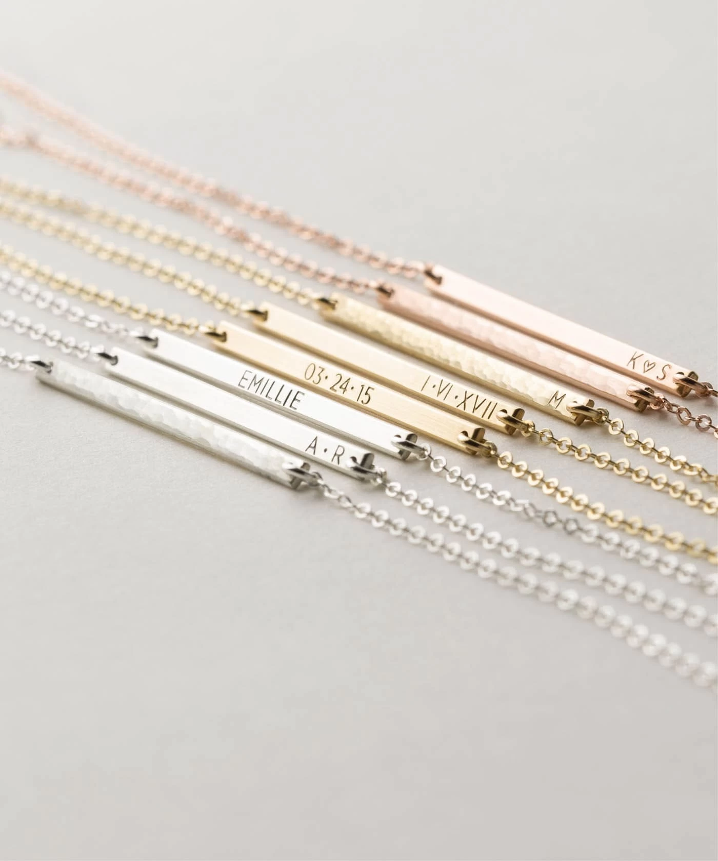 A delicate bar with the tiniest inscriptions. Personalize with a few letters… or leave it blank.