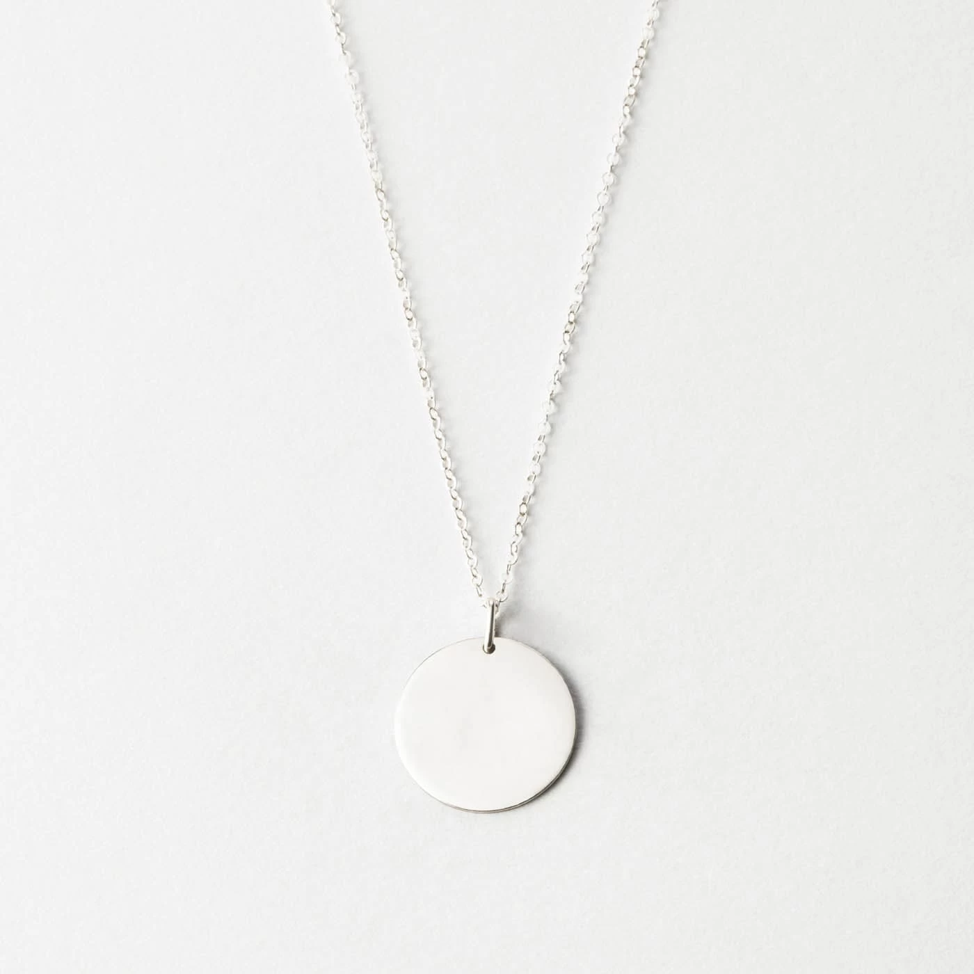 Our 16mm large-sized disk necklace, without personalization. A timeless piece to dress up or down.