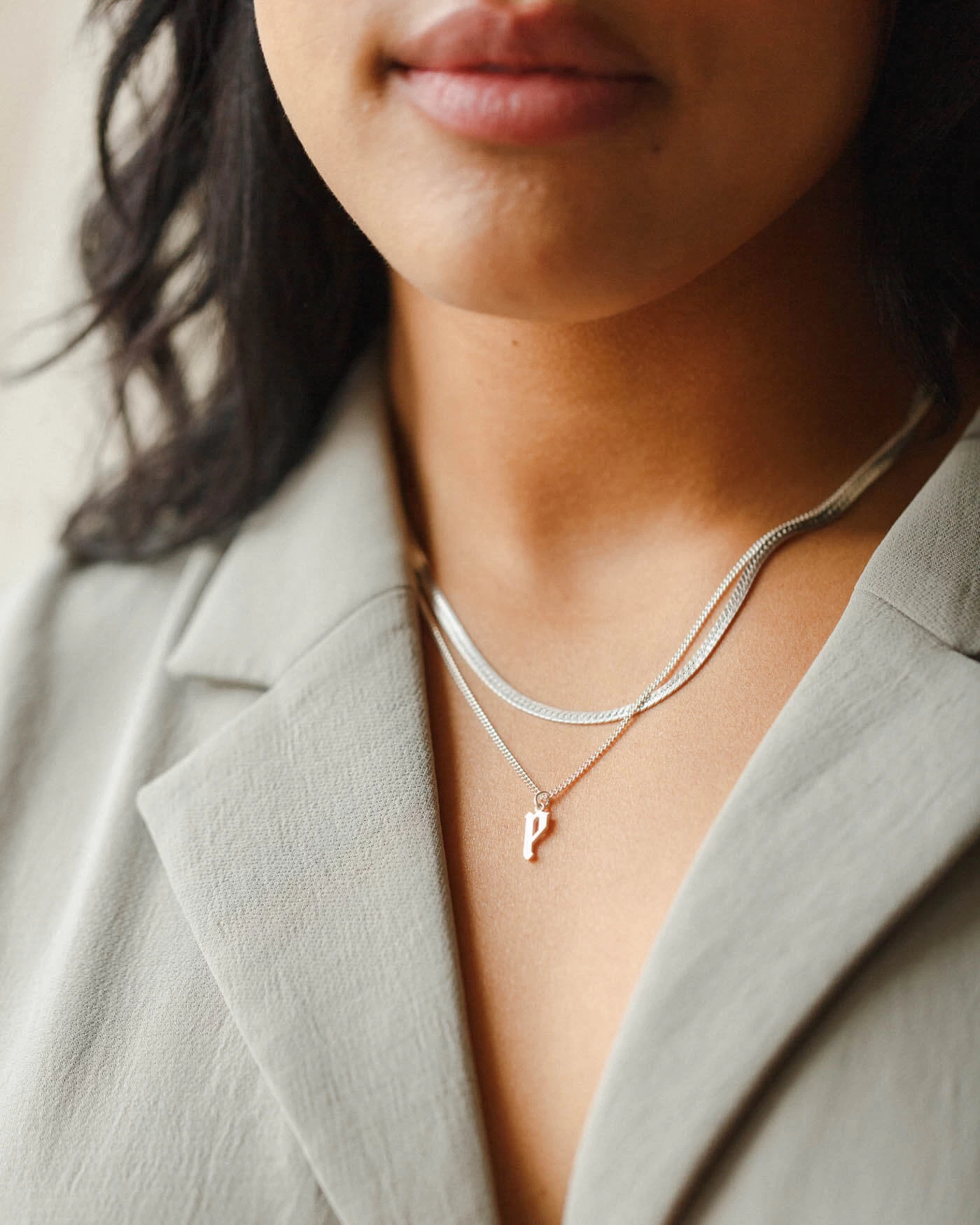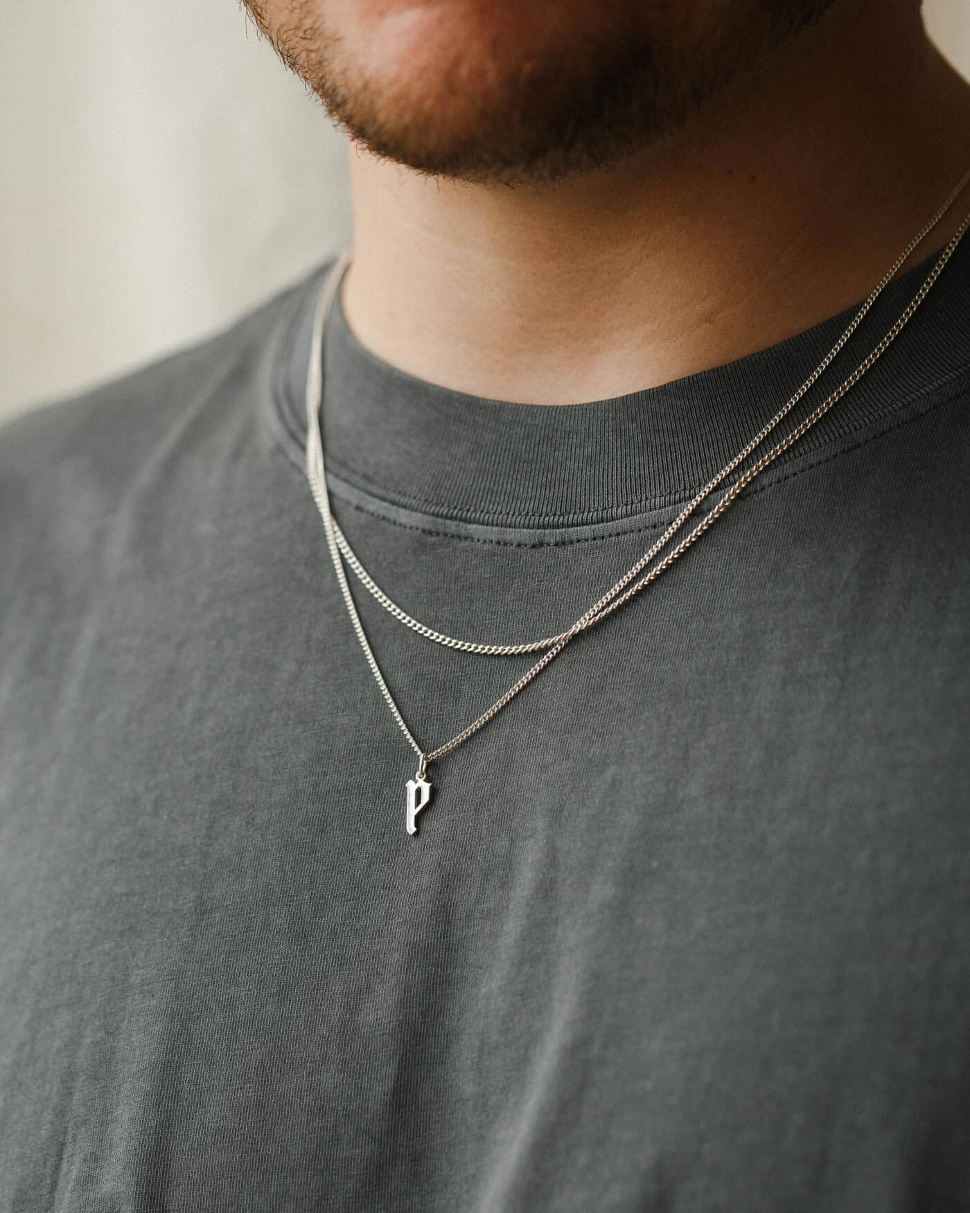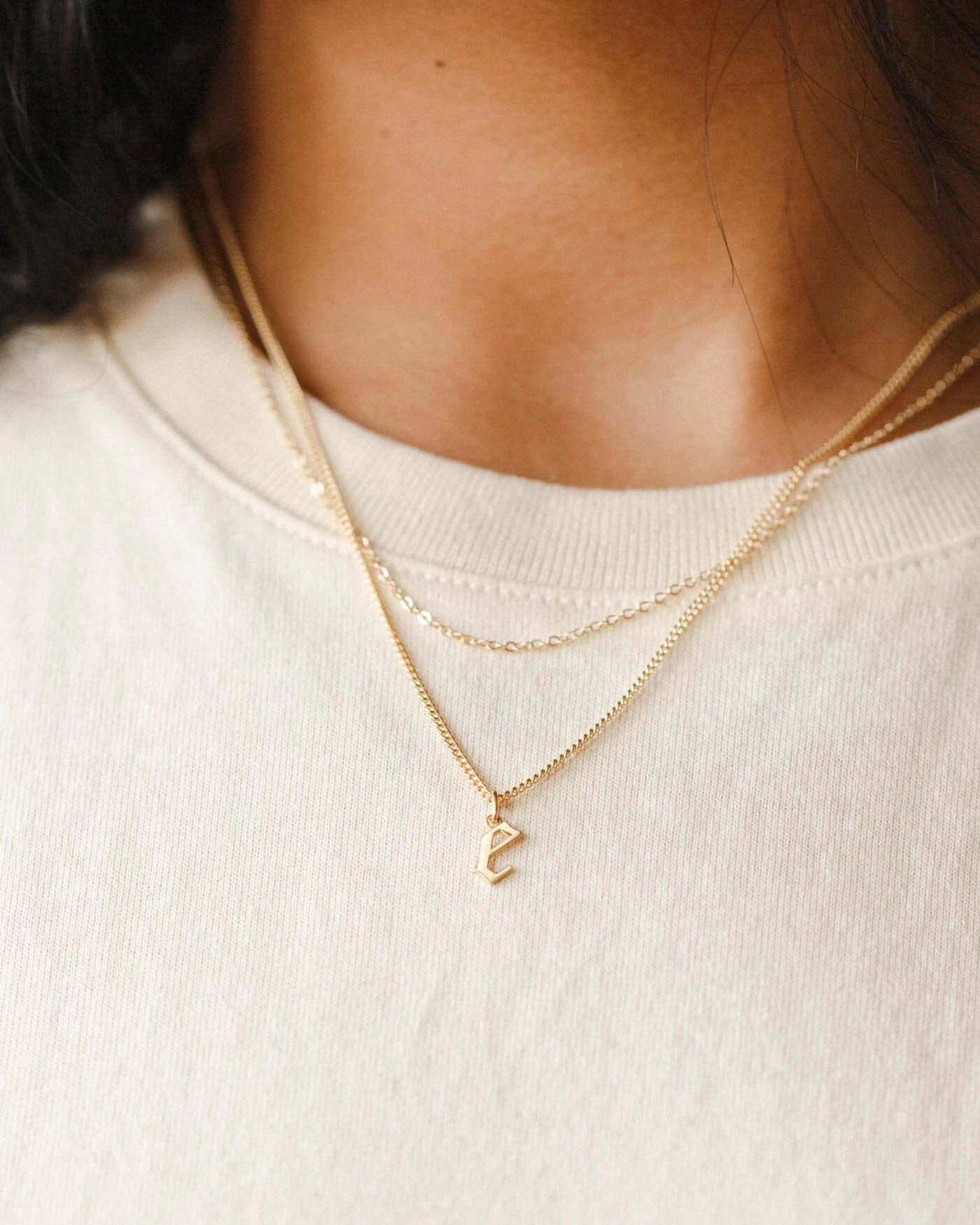You have something to say and we’re here for it. Wear it out loud with a bold gothic initial pendant paired with a slightly chunky Theo Chain for a look you can’t miss.