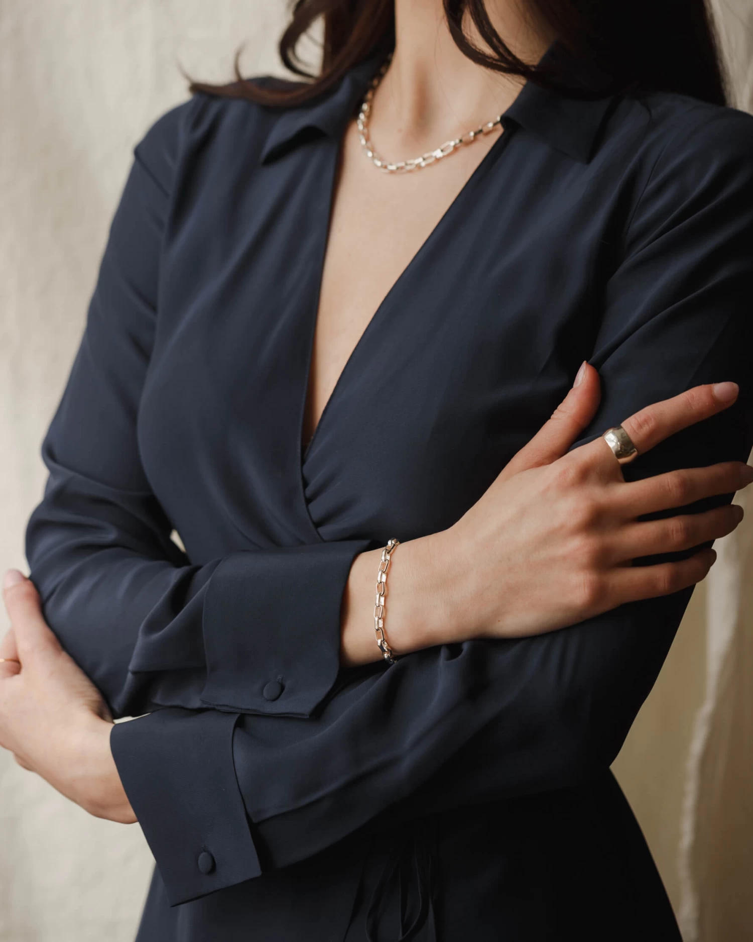 Hypoallergenic, easy to care for and designed to stack with silver and gold alike, this chunky rolo bracelet proves that being dramatic is a good thing.