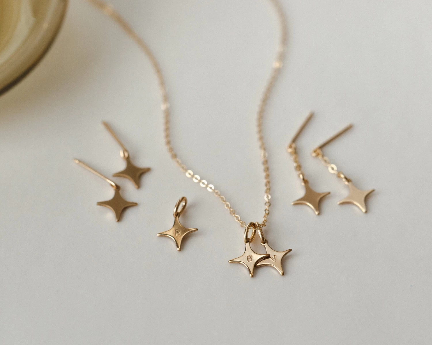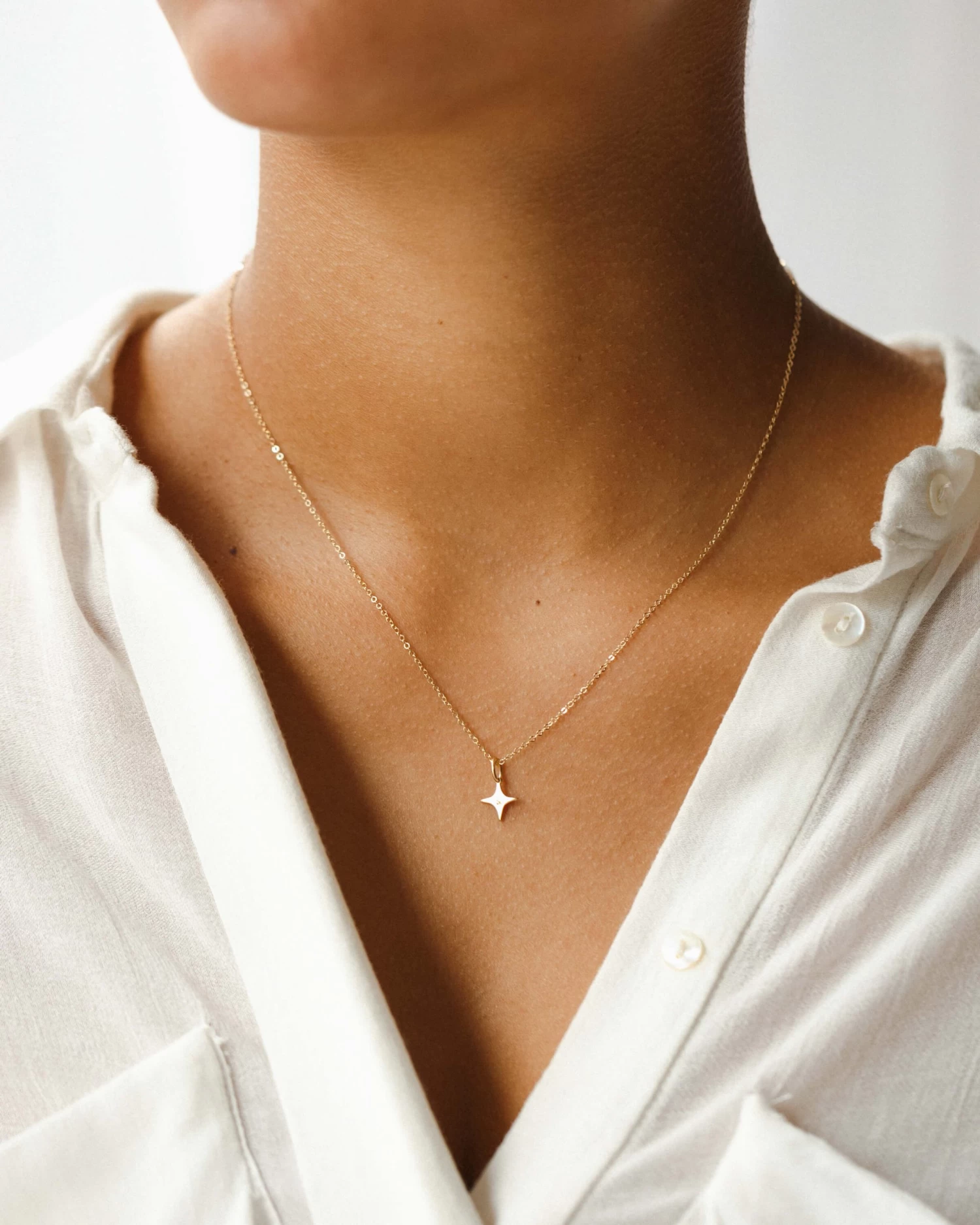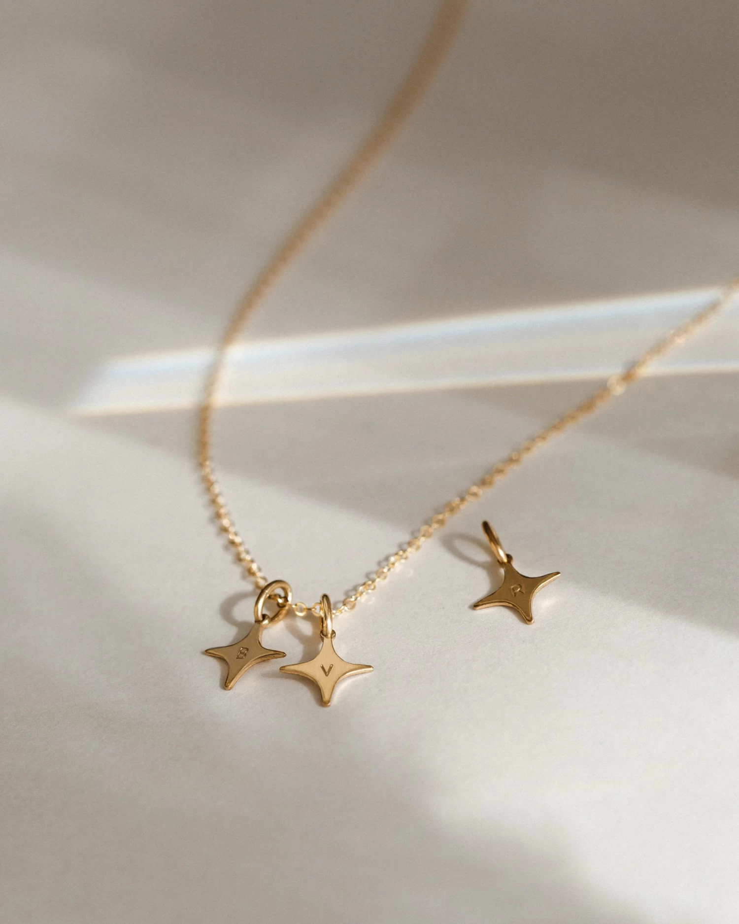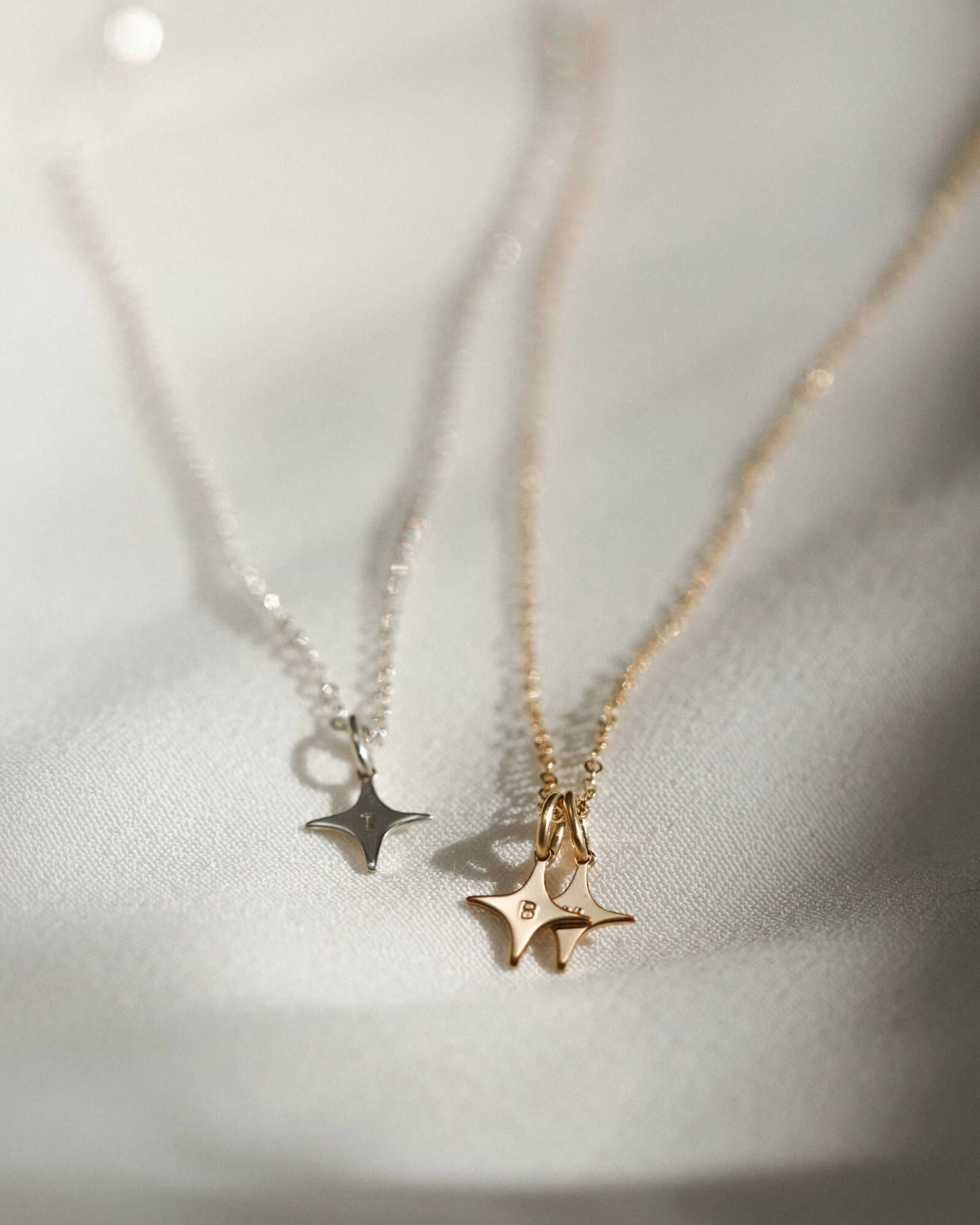 Personalize your star pendant with a tiny initial to represent yourself or your loved ones, leave it blank for a subtler statement or pile on a few pendants to create your own constellation! Strung on our ever-sparkling dainty chain and perfect for layering with other pendant necklaces.