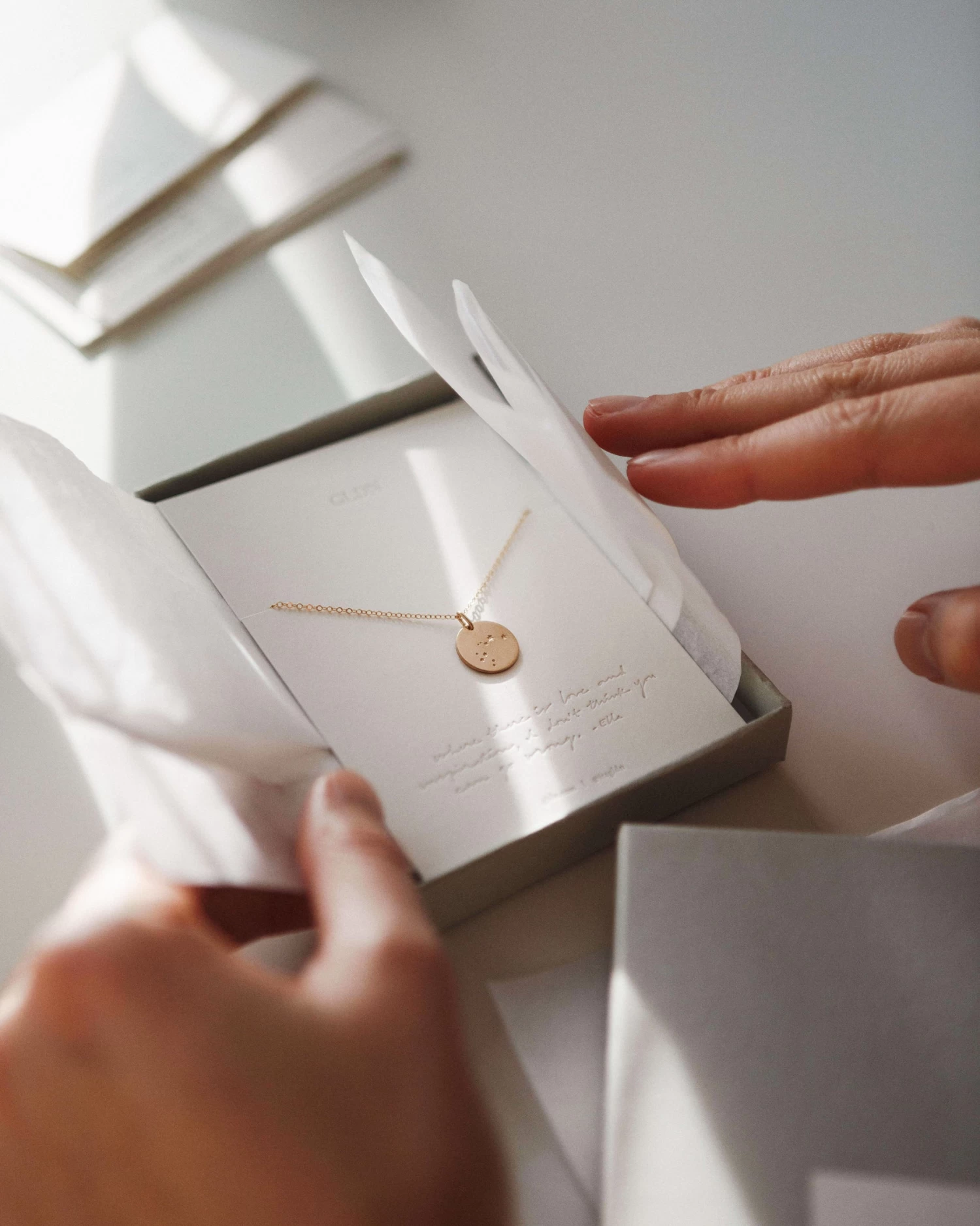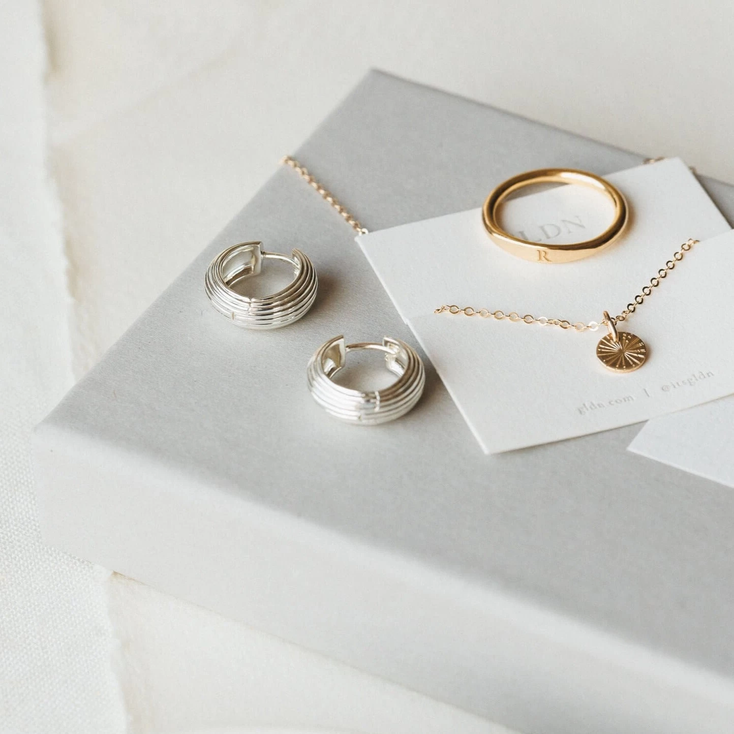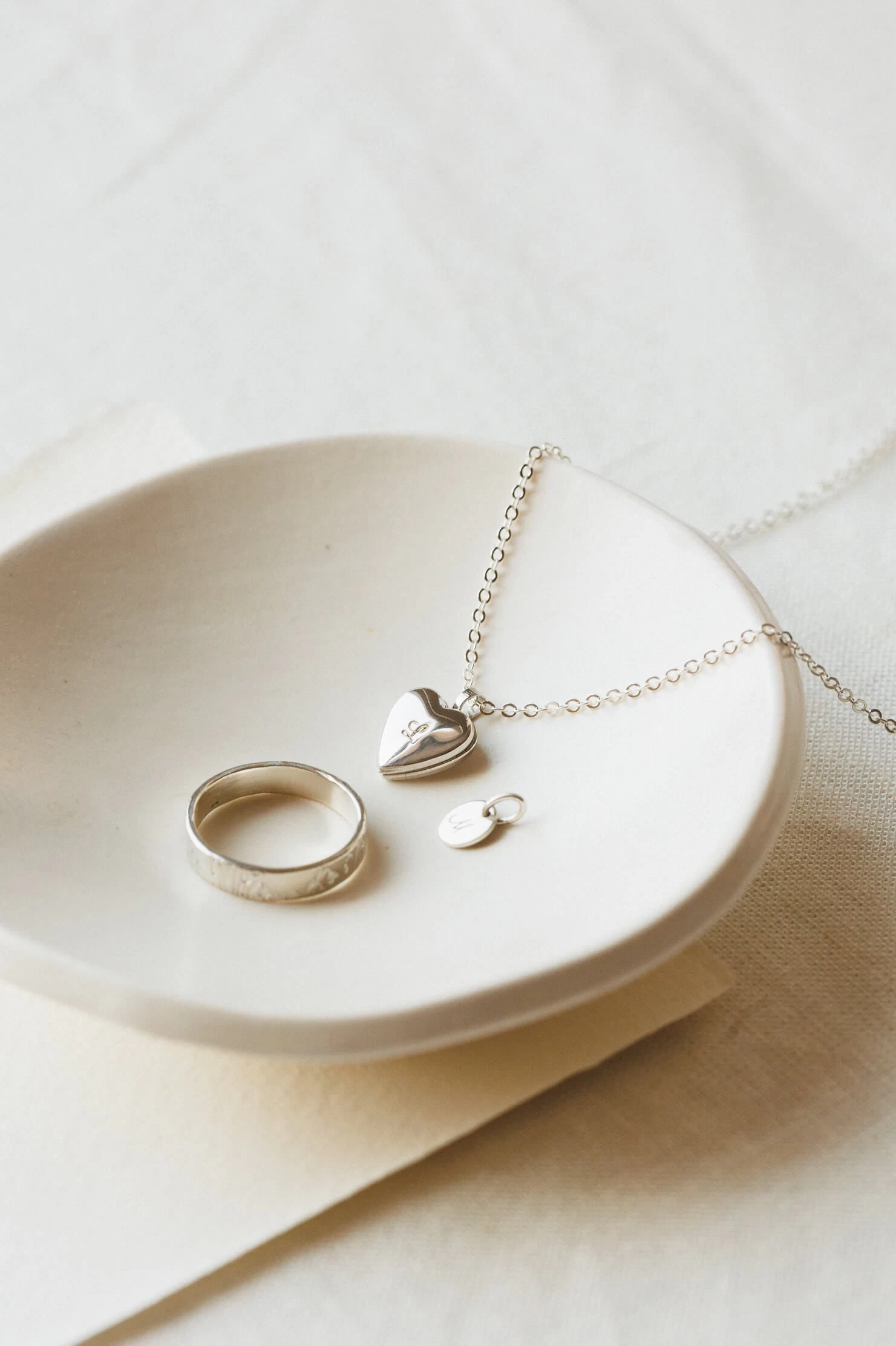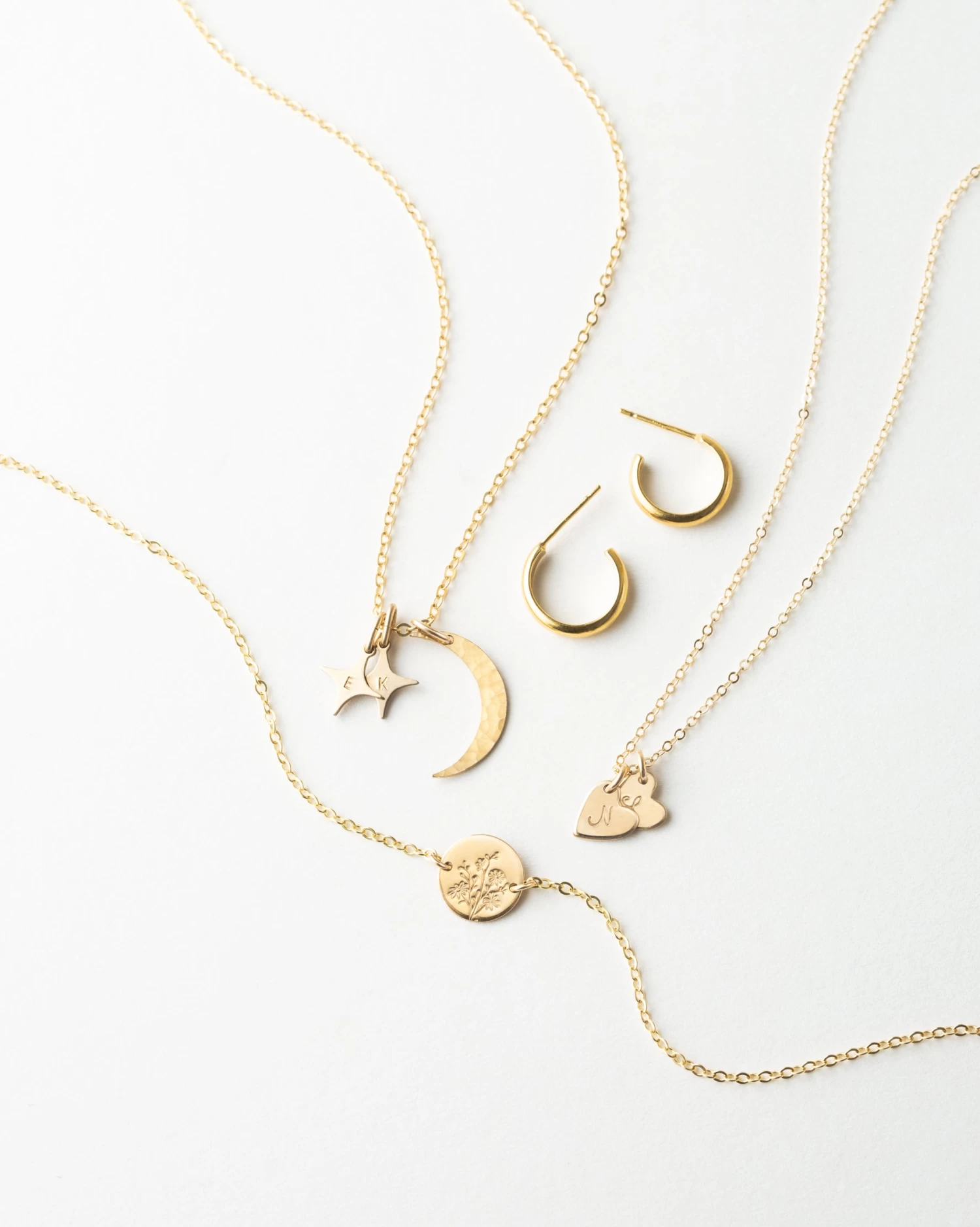 To order, choose your preferred metal(s) and general neck and wrist size from the drop-down menus, then add a note including your ring size and any initials you’d be interested in seeing on a piece.