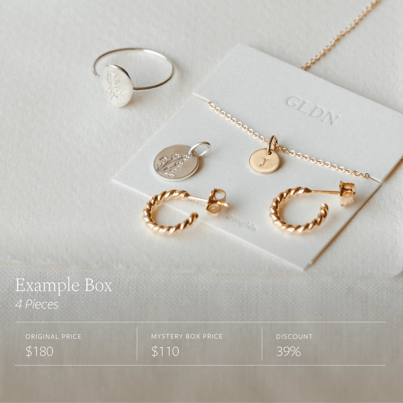 <span data-buffer="Unwrap a surprise from us to you! Each box includes 3-4 pieces hand-picked by our team: a combo of necklaces, rings, earrings, bracelets or pendants valued at at least $145.
