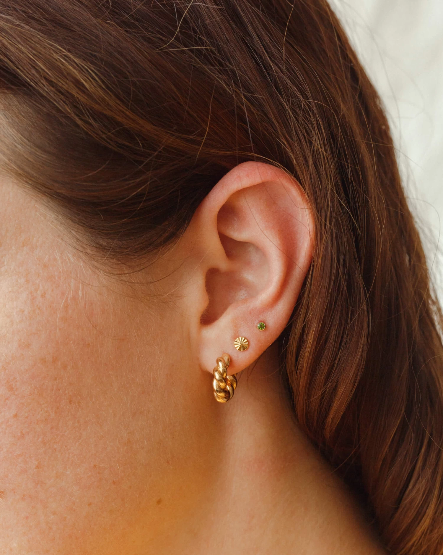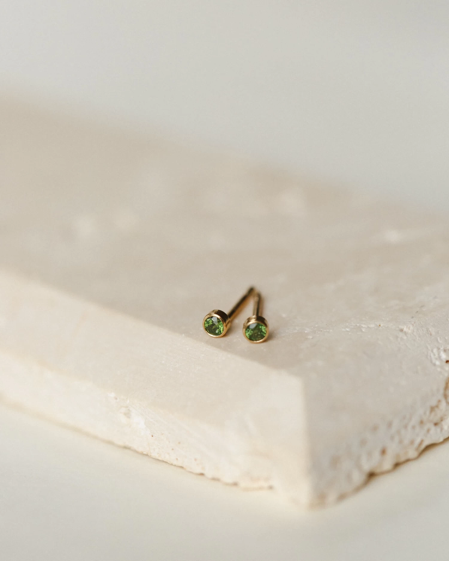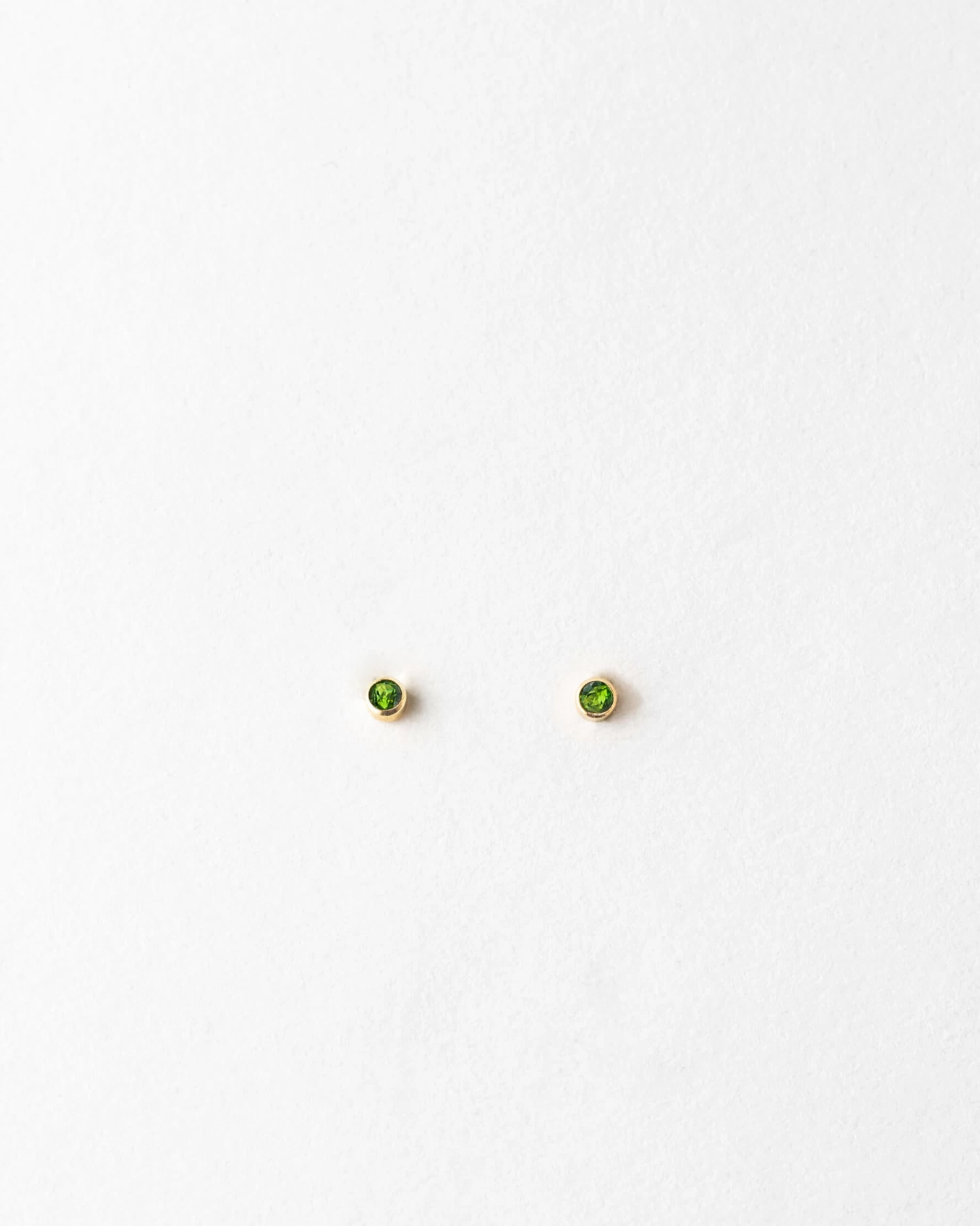 This limited edition stud features a genuine emerald-green tourmaline set in a halo of gold fill or silver, available as a single or pair.