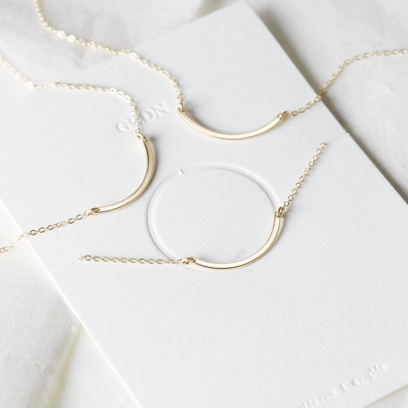 The set of arched, hand-hammered pendants comes together to form a circle when together, and makes a minimalist statement when apart. AKA the modern, streamlined friendship necklaces you’ve been dreaming of.