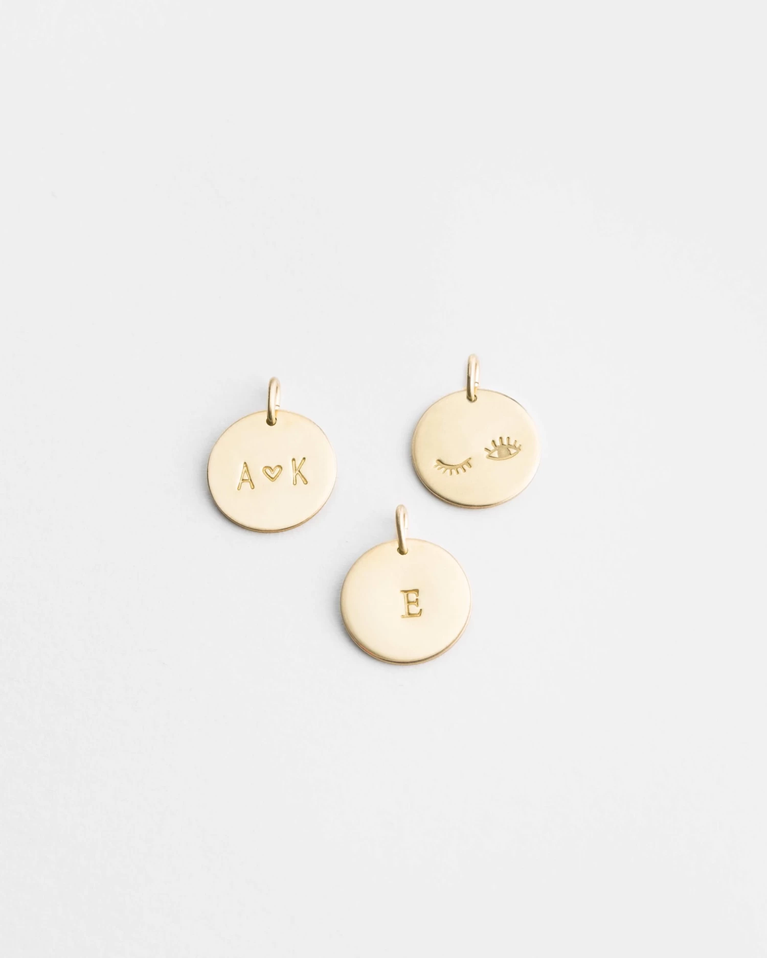Make your piece even more personal — add a medium 13mm disk, personalized with hand-stamped letters or symbols.