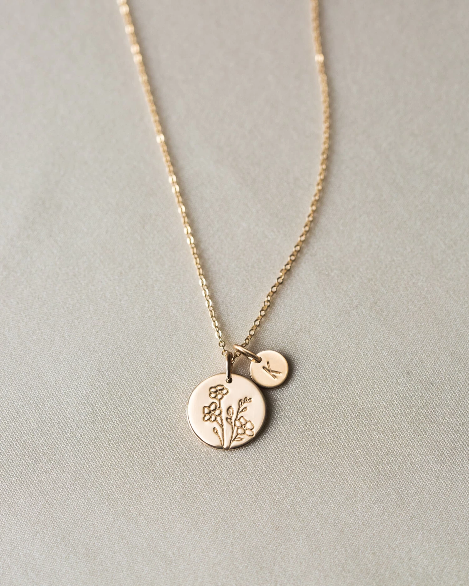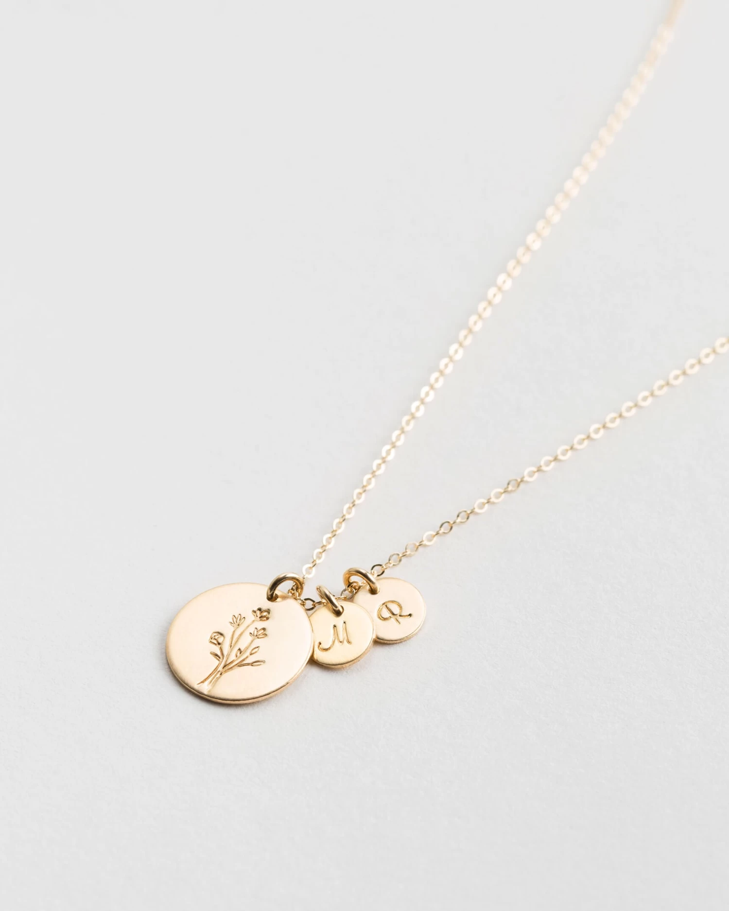Spotlight your favorite bloom with this floral spin on our best-selling Bennett Necklace! Make it extra meaningful with up to five tiny tags personalized with special initials or symbols.