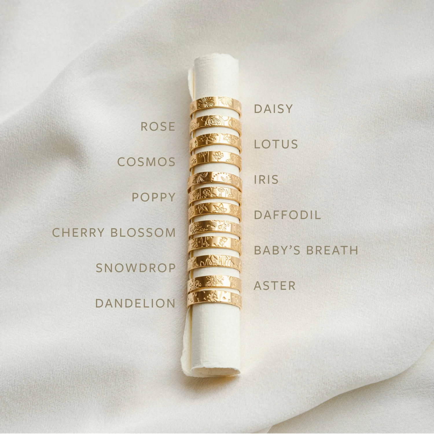 | Style | Aster, Baby's Breath, Cherry Blossom, Cosmos, Daffodil, Daisy, Dandelion, Iris, Lotus, Poppy, Rose, Snowdrop |