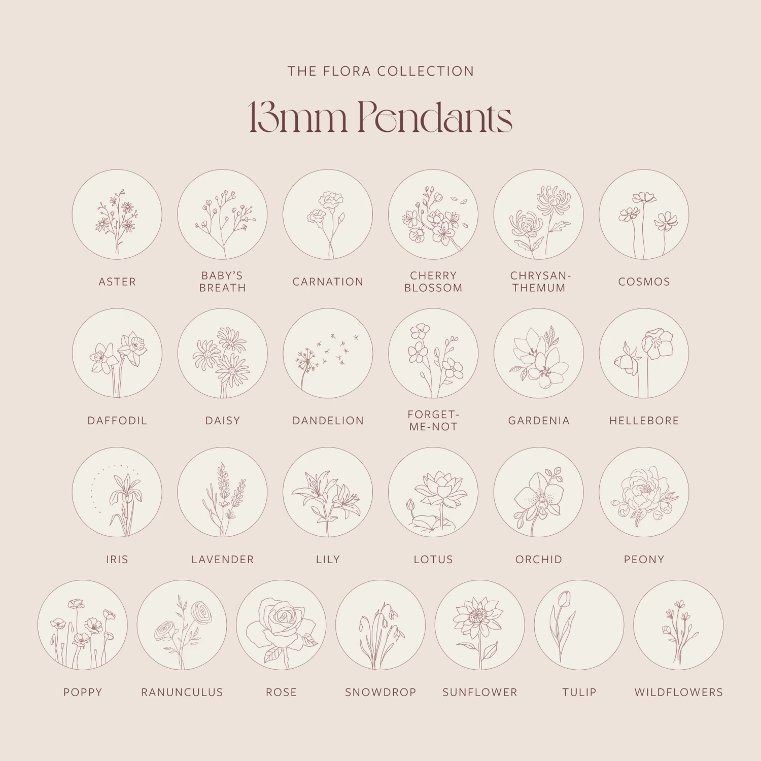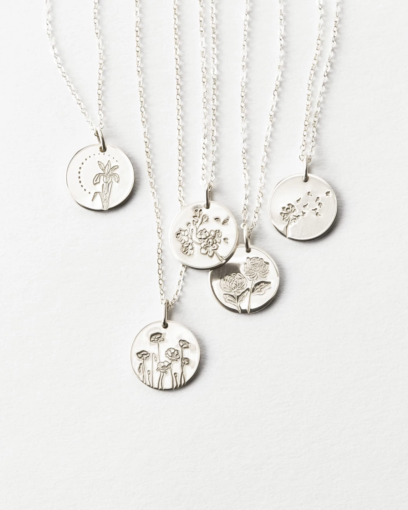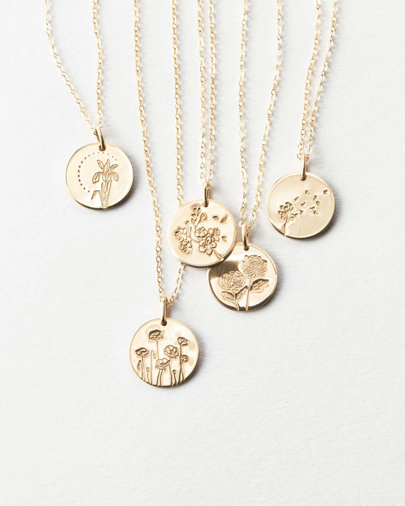 Spotlight a beloved bloom on our best-selling disk pendant (a classic, and for good reason). Each flower is elegantly illustrated and stamped by hand in our studio. Will you opt for a lily necklace? An iris? A romantic rose? 20+ blooms are yours for the choosing.