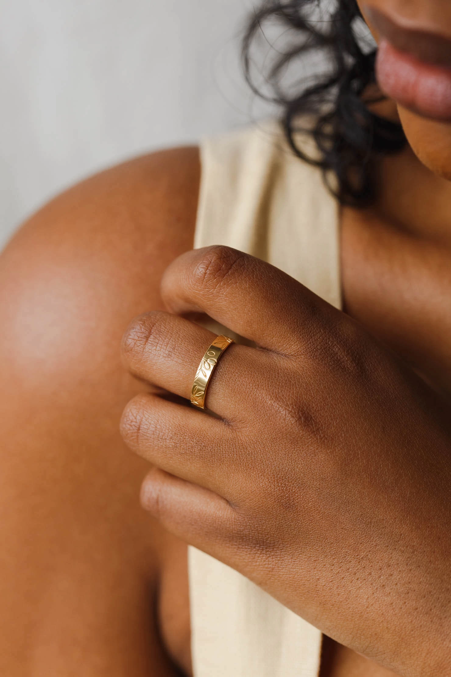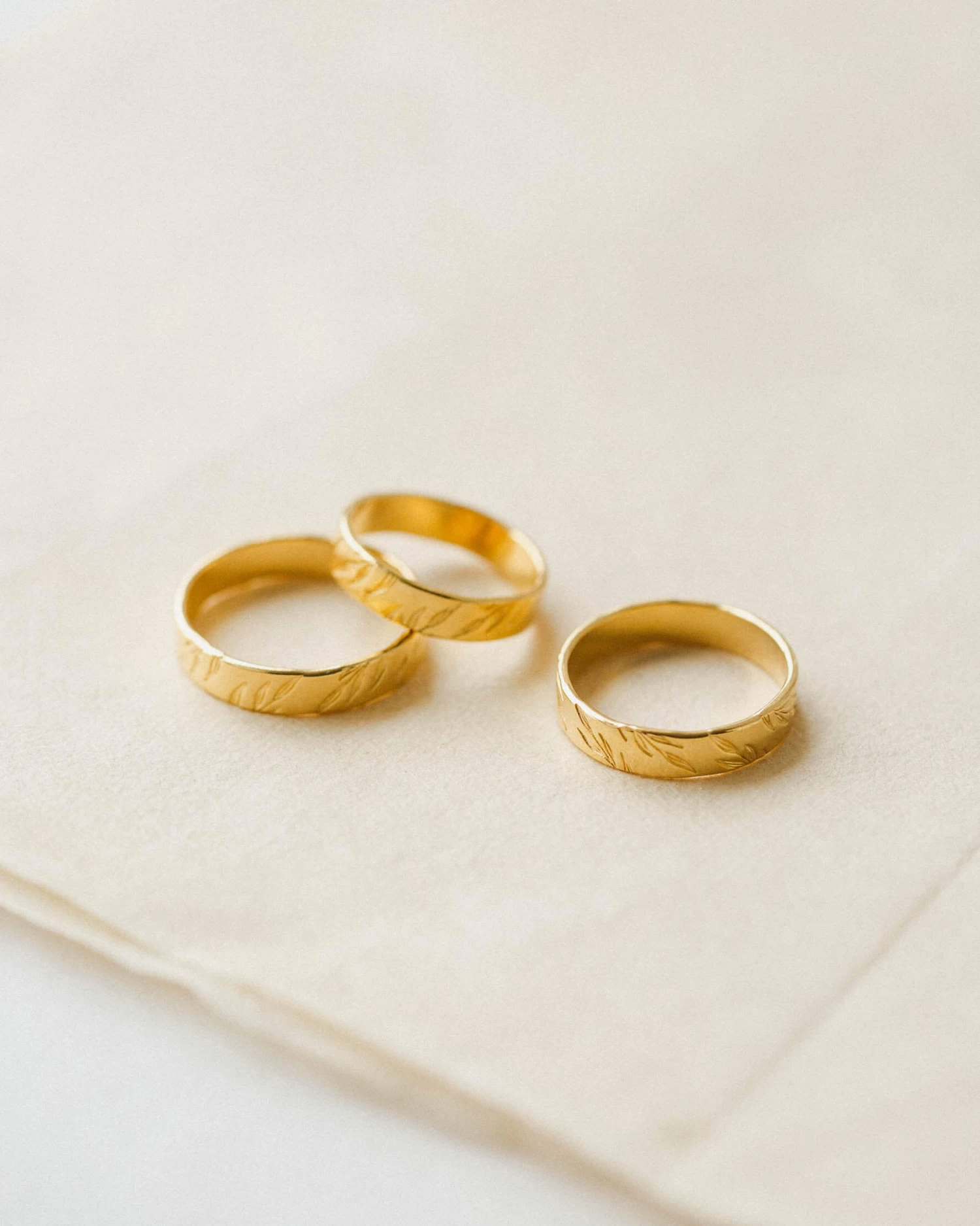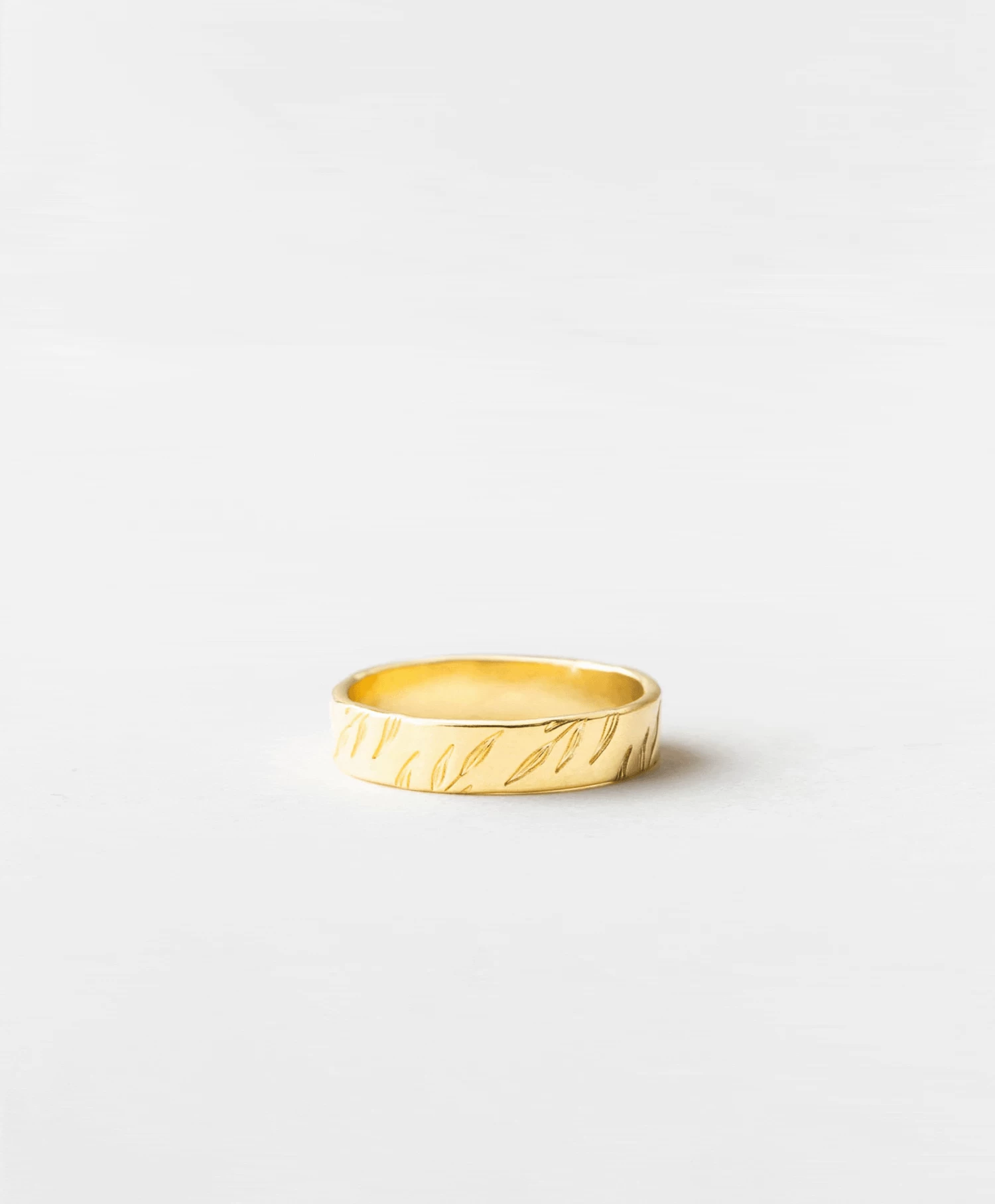 Made to mirror the natural world, each band is perfectly imperfect and one-of-a-kind! Every leaf is hand-stamped individually around the ring(meaning no two will be alike) and the design will look unique from every angle. Such is the magic of this piece; a romantic celebration of some of our world’s greatest wonders.