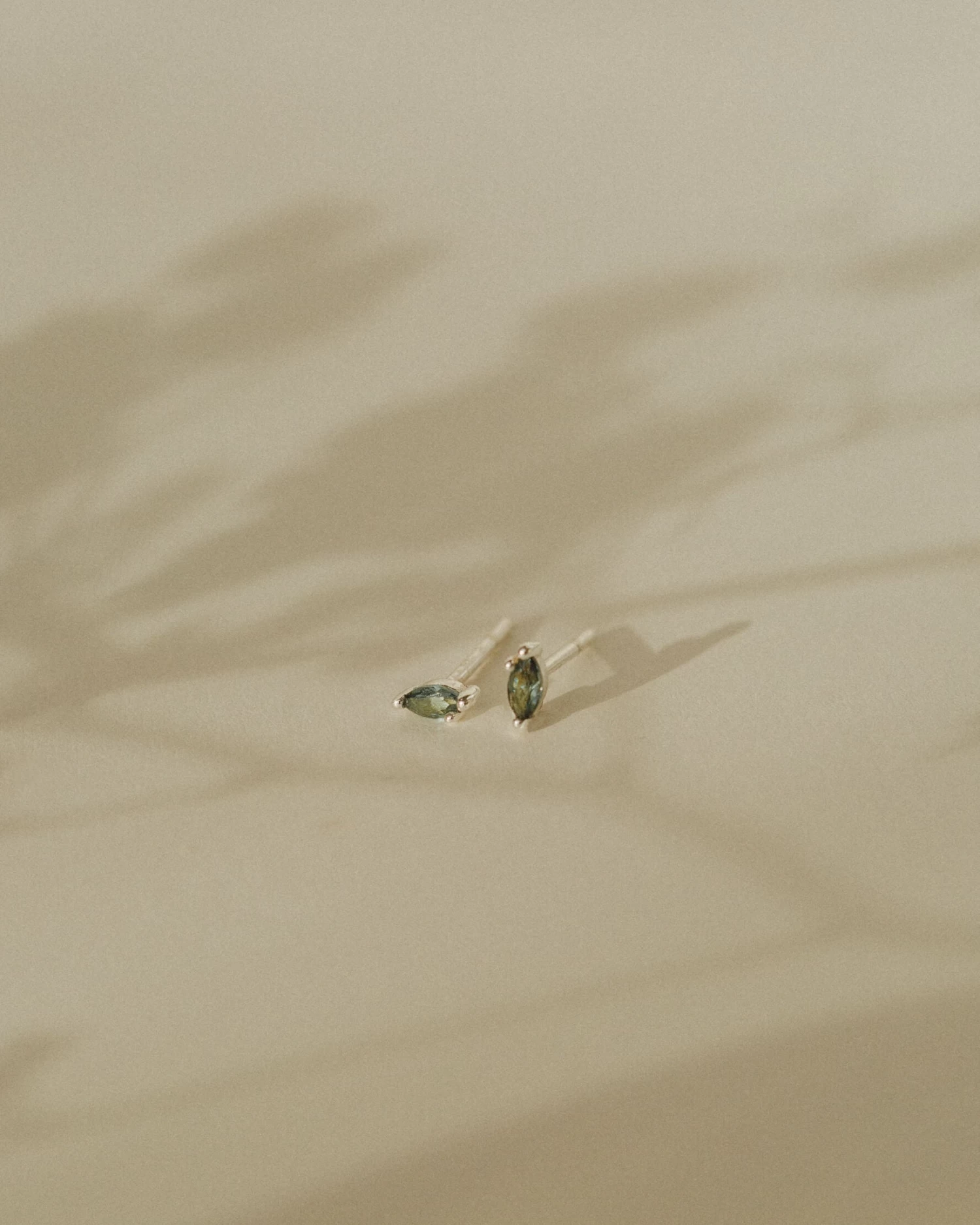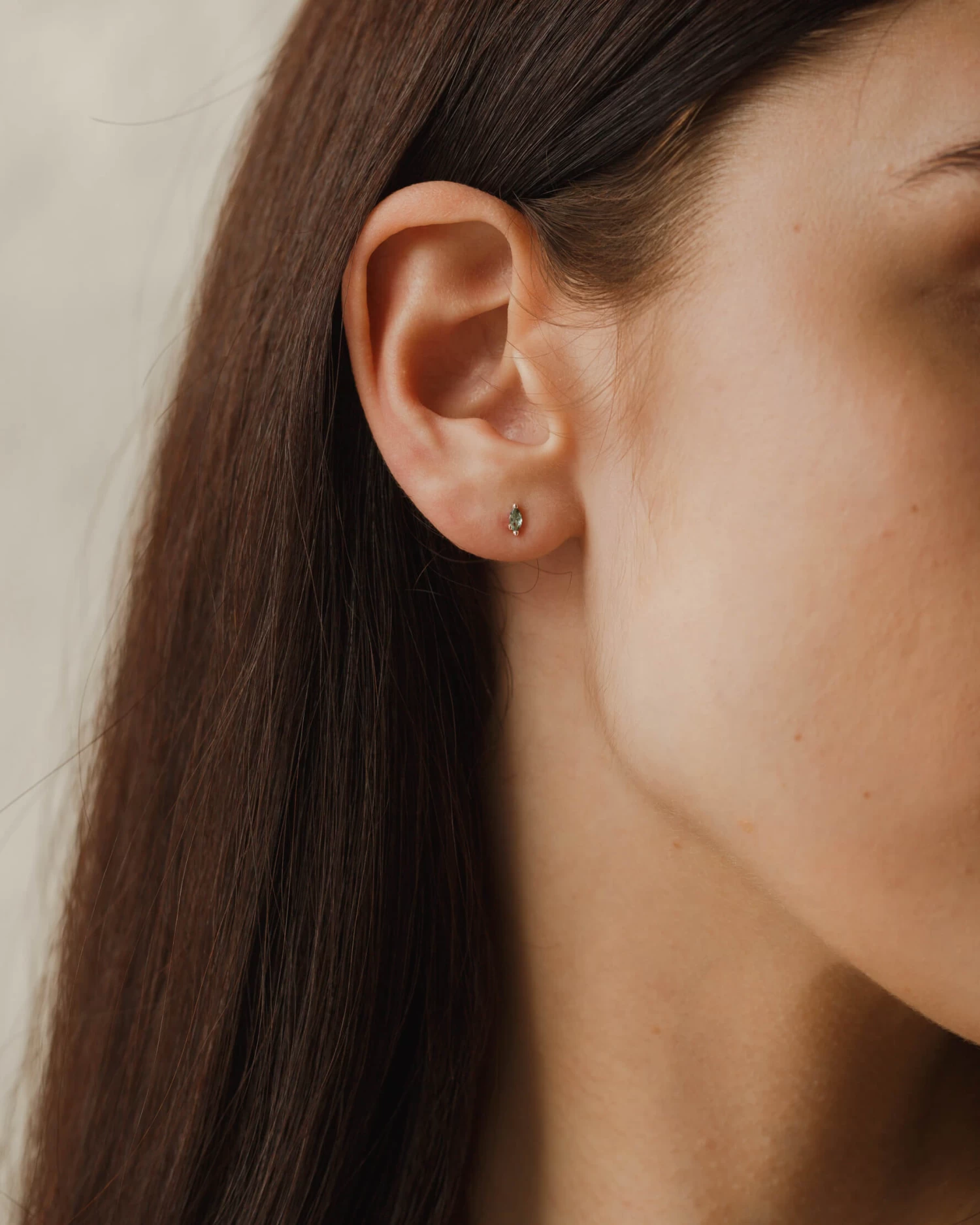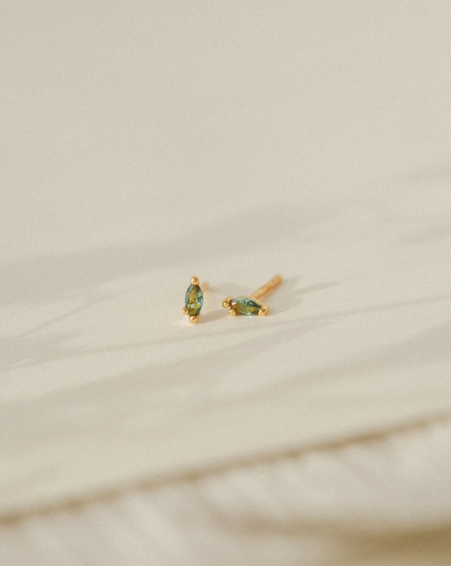 A leaf of paper, a leaf falling at dusk. Featuring a forest emerald gemstone punctuated with gold vermeil, sterling silver or 10k solid gold accents, this asymmetrical stud invites you to let it all out and, when the time is right, to let it all go. Sold as a single or pair.