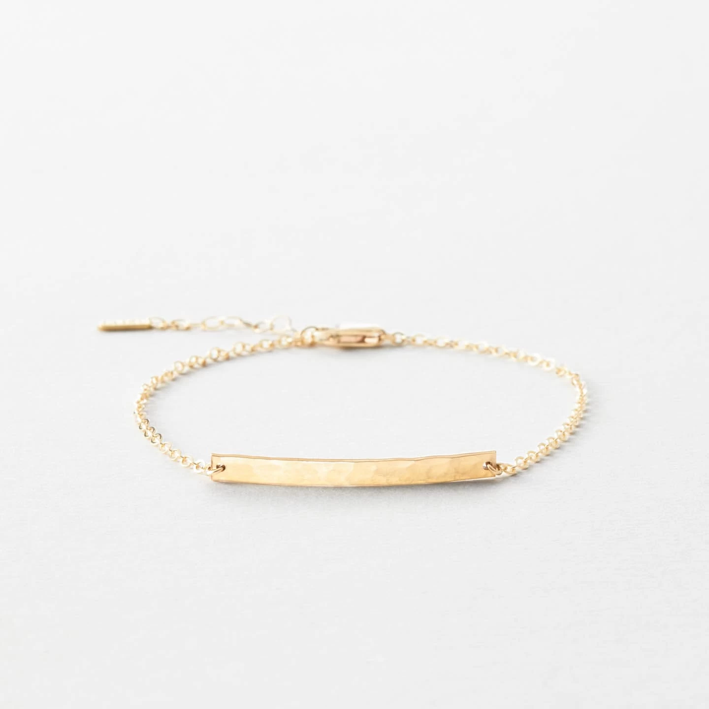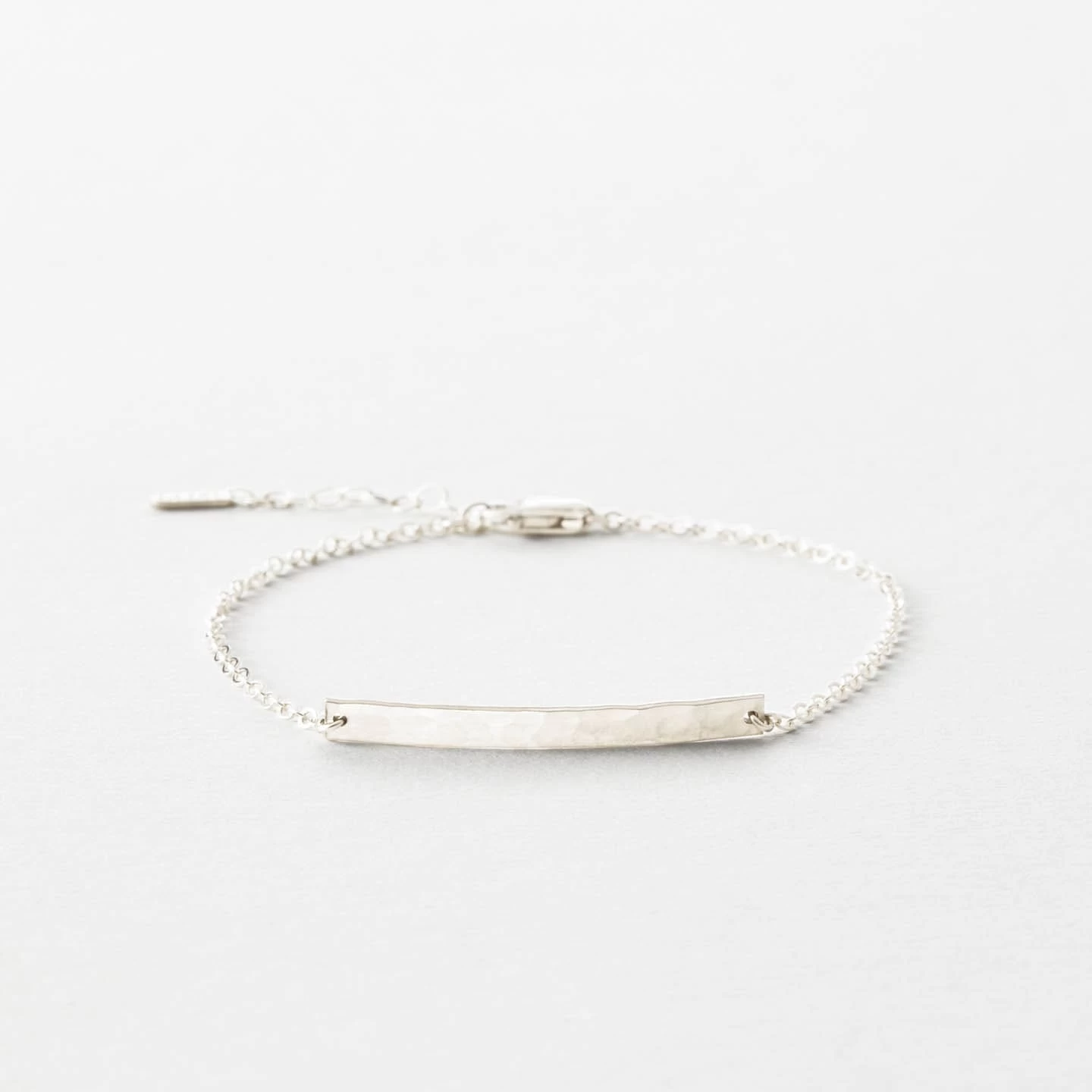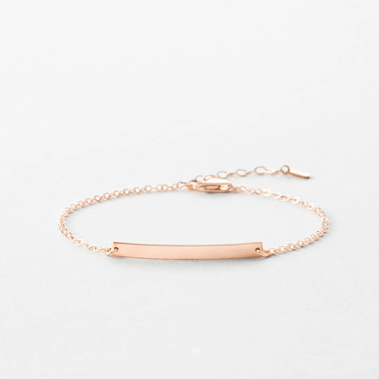 Looking for something subtler? Try our teeny Basquiat Bar Bracelet (best for extra short, tiny inscriptions)! Looking for something bolder? Our Serra Bar Bracelet is our largest ID-type bracelet.
