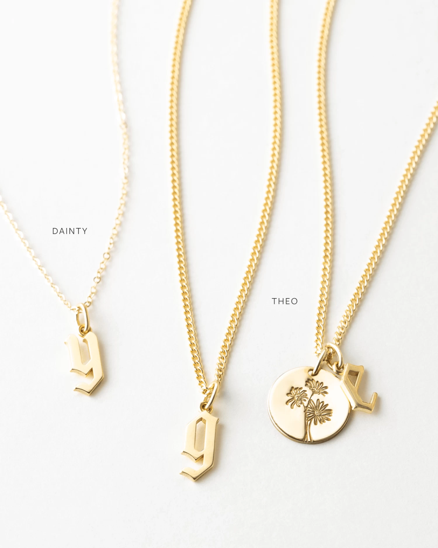 Delicately dramatic. Just edgy enough. Bring big personality to your stack with this dainty add-on initial in a gothic lettering style—a team favorite here at GLDN!