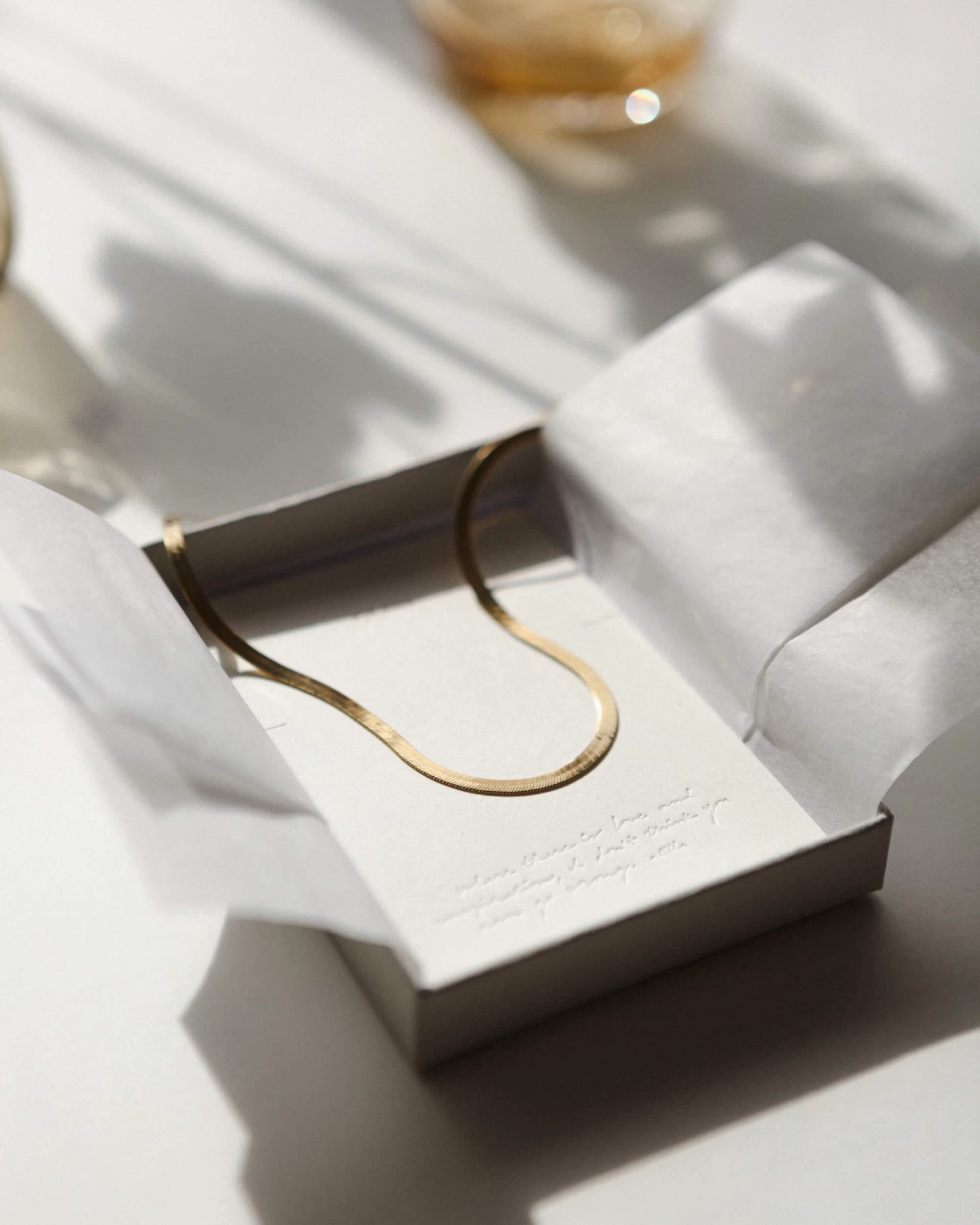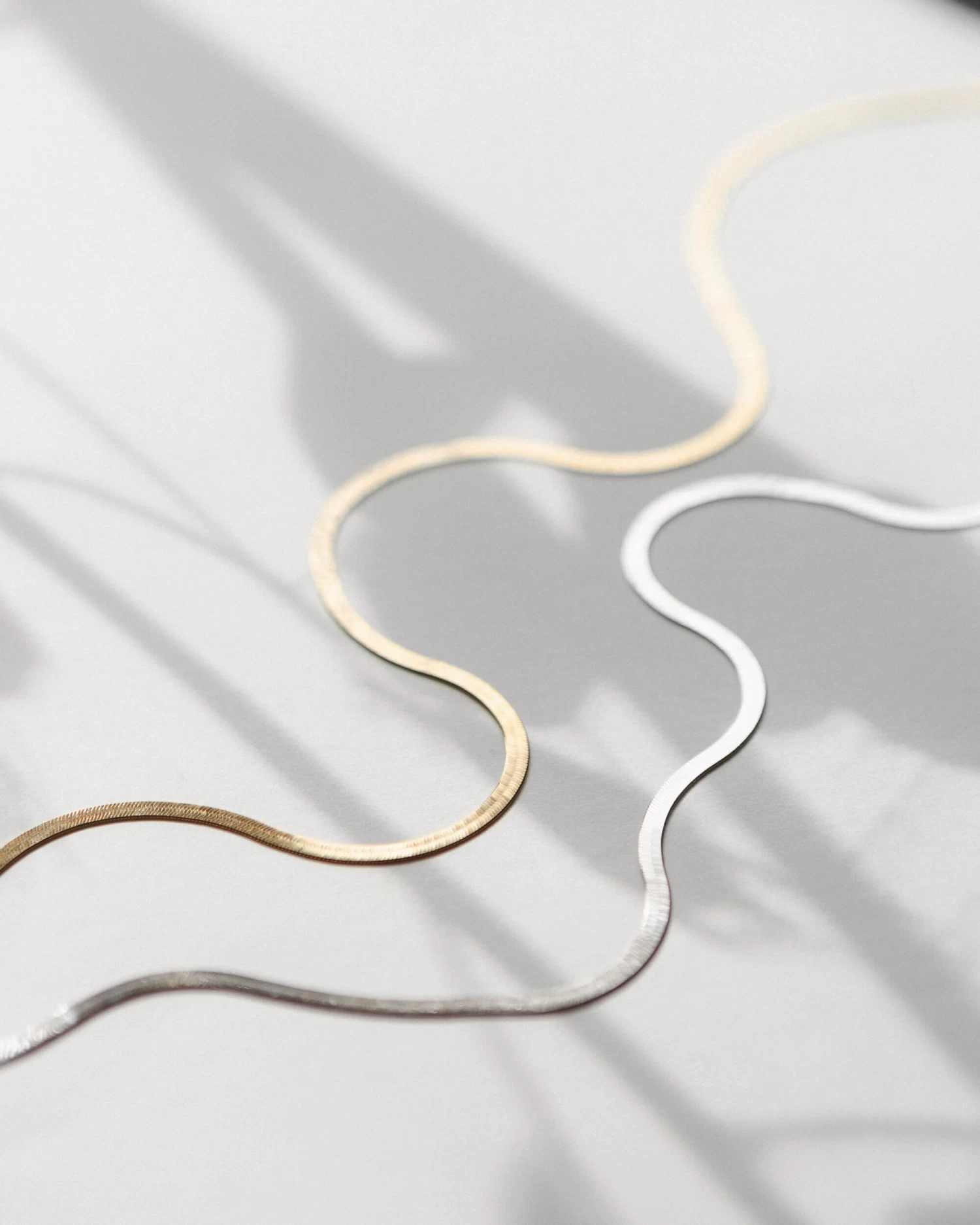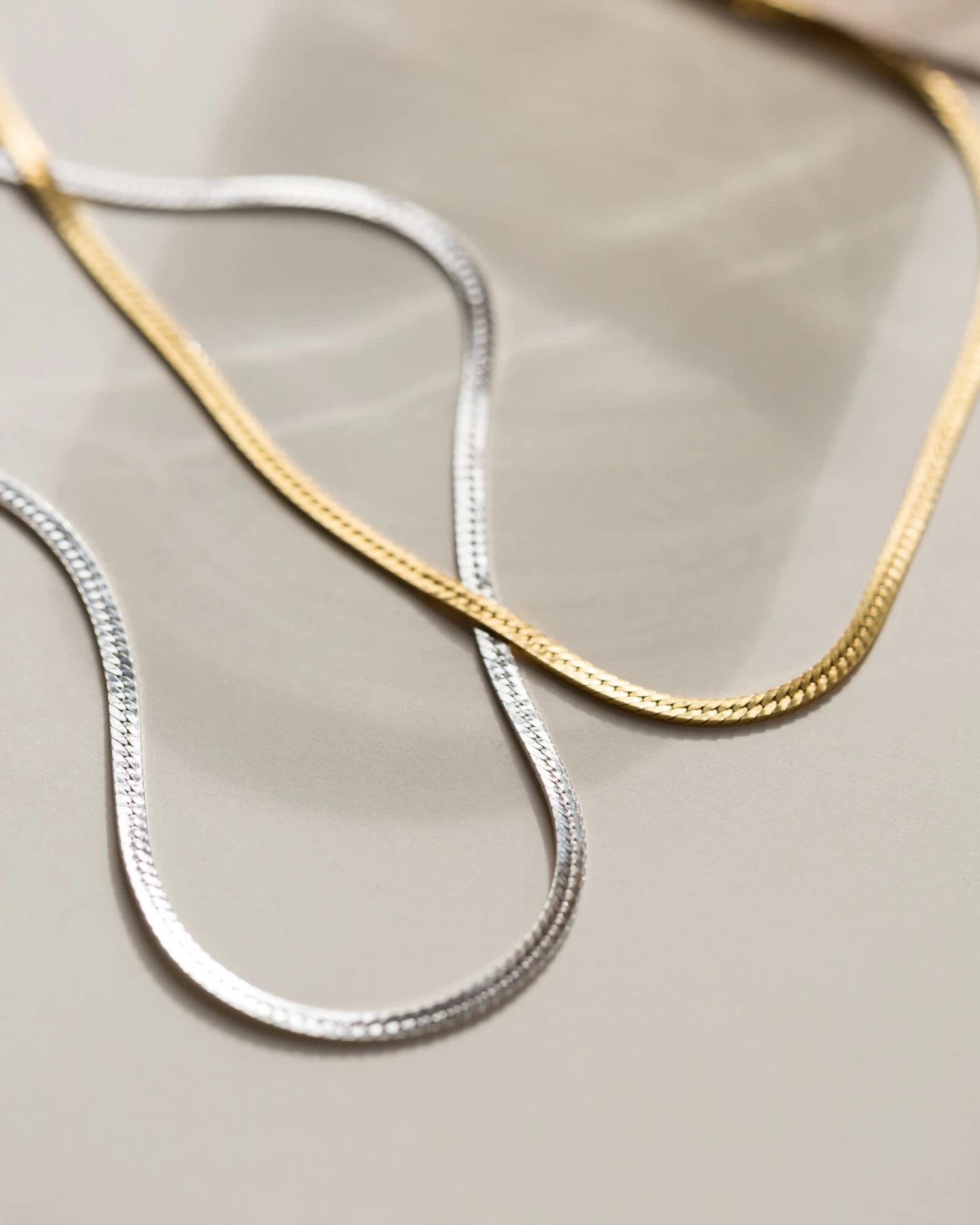 Our bold herringbone chain is a simple way to make a big statement. Wear it by itself to grab attention, or layer it to make any look pop.