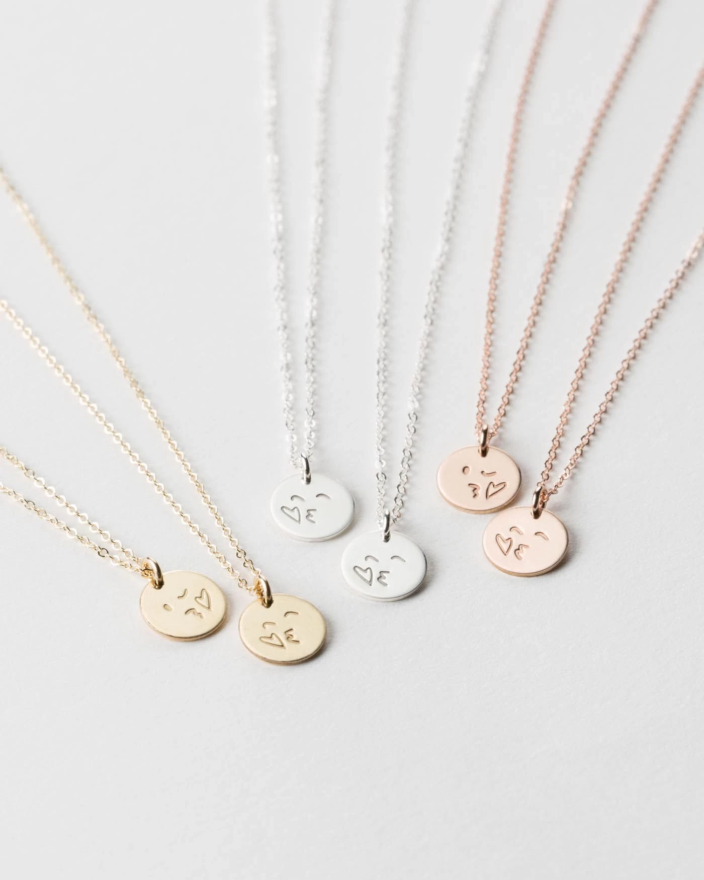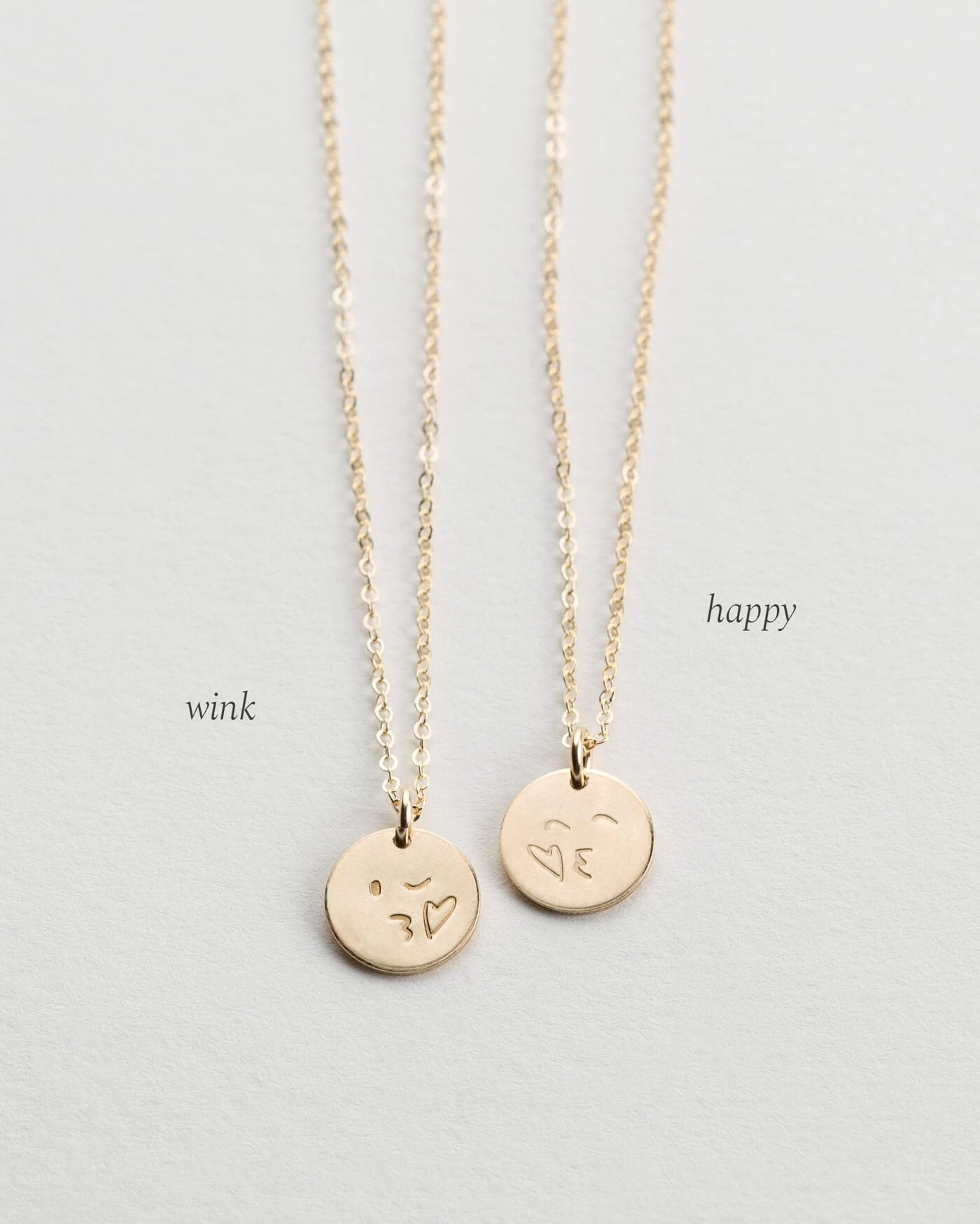 Choose your kiss emoji style — happy or wink — and if you’d like a single piece or a set of 2 to share.