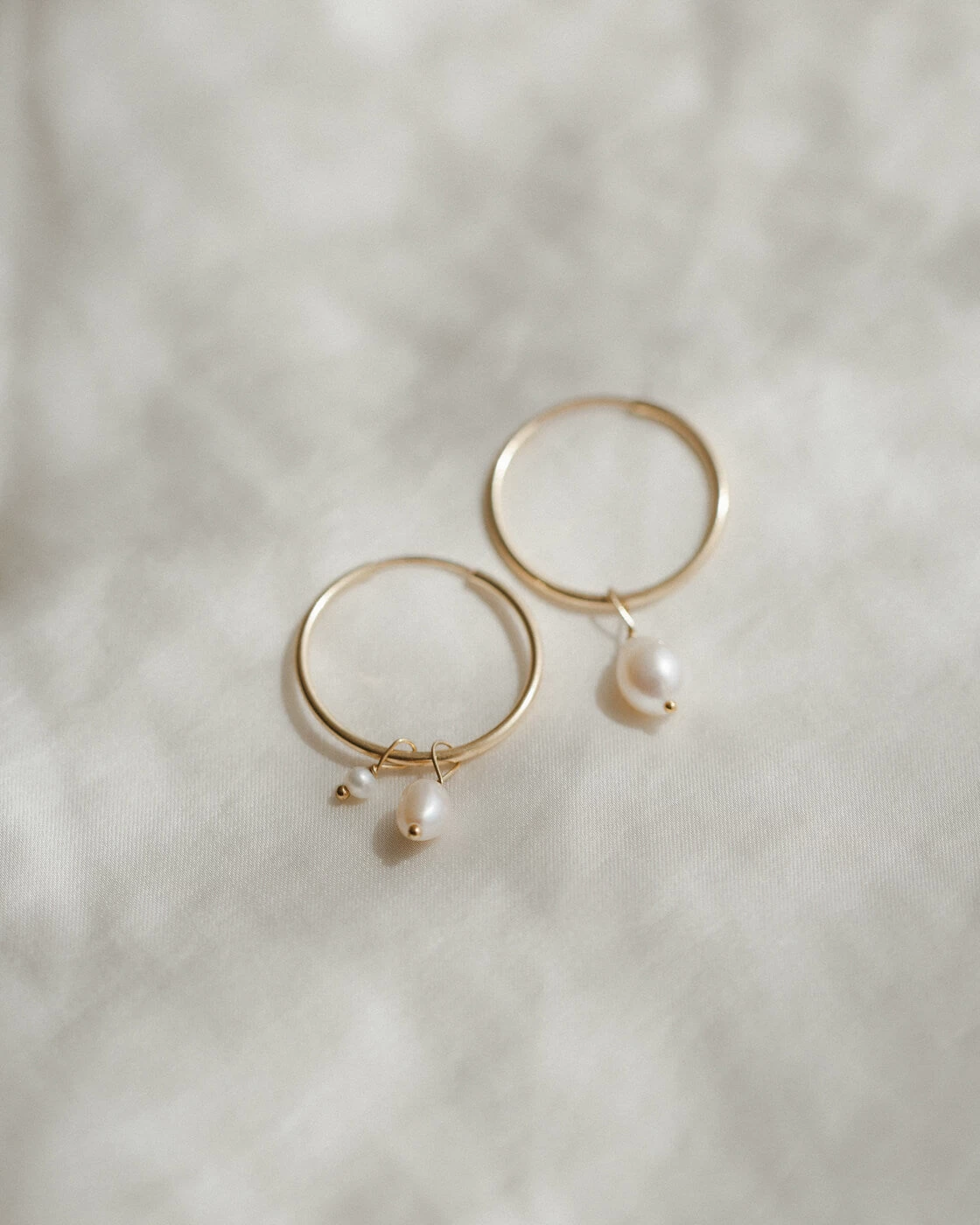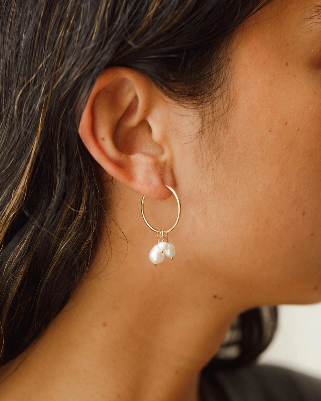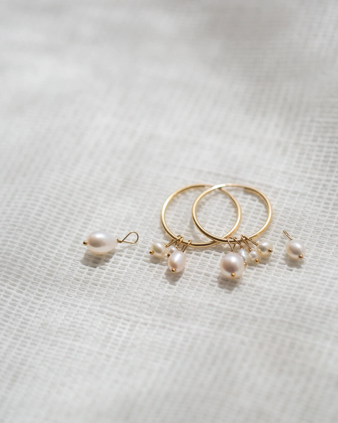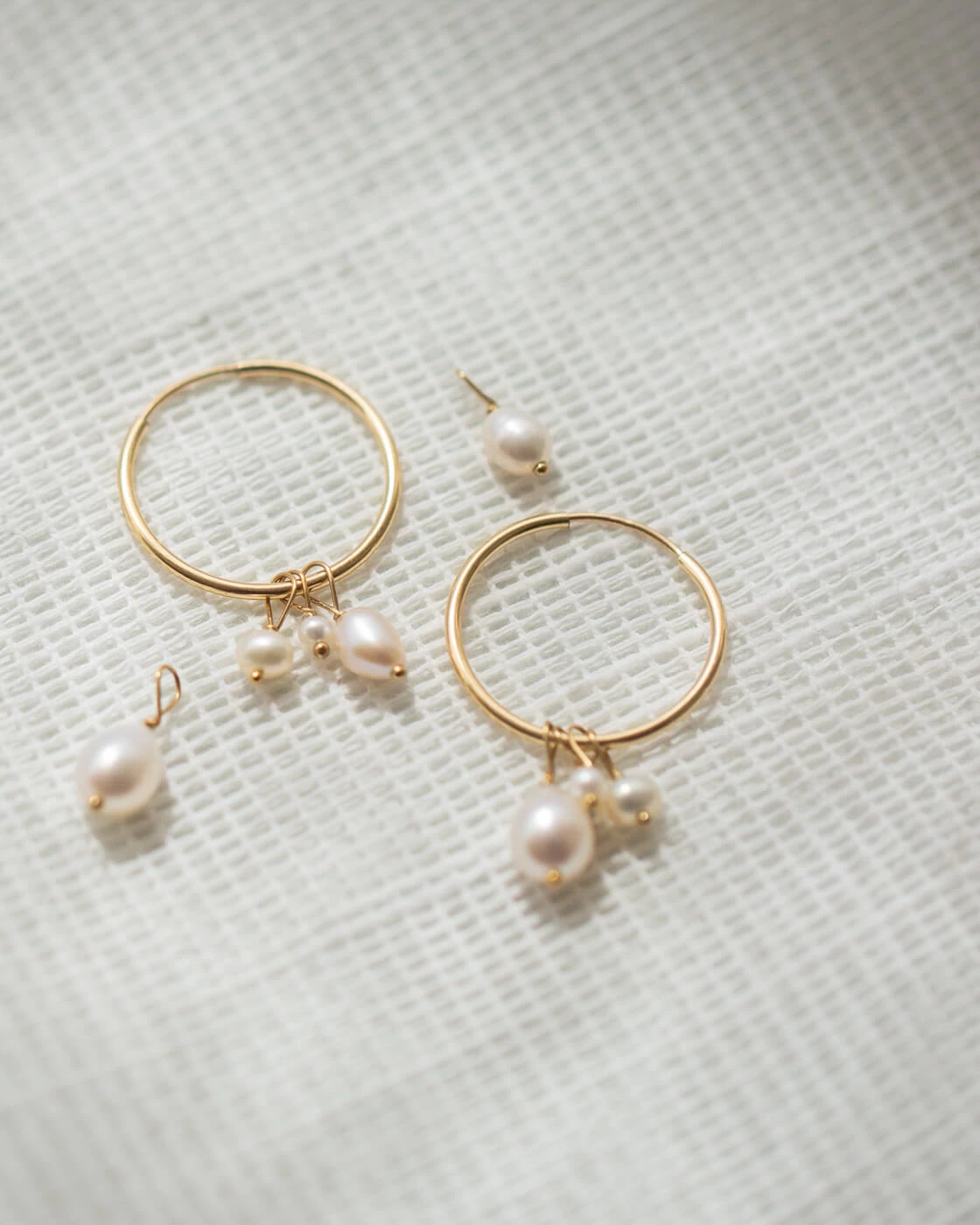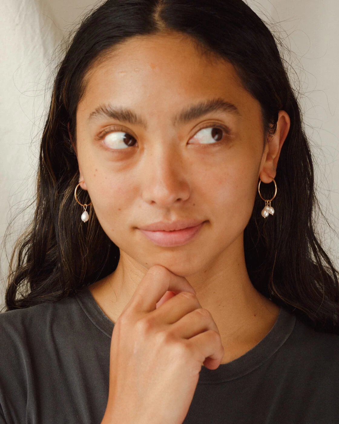 Change your hoops with your mood (and make them different every single day)! Pile on all the pearls, create an asymmetrical look or keep it simple with one pearl on each hoop—it’s completely up to you.