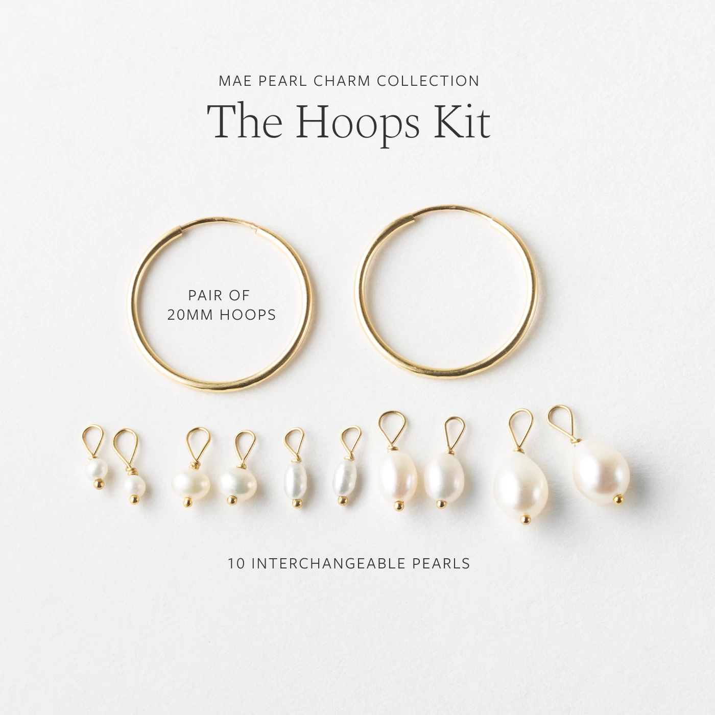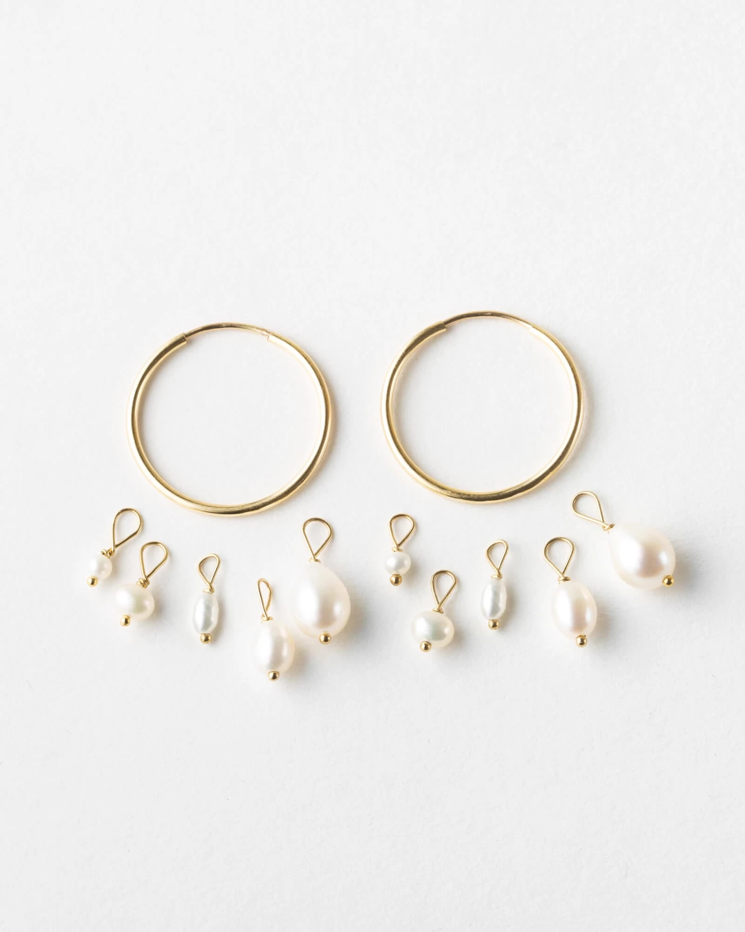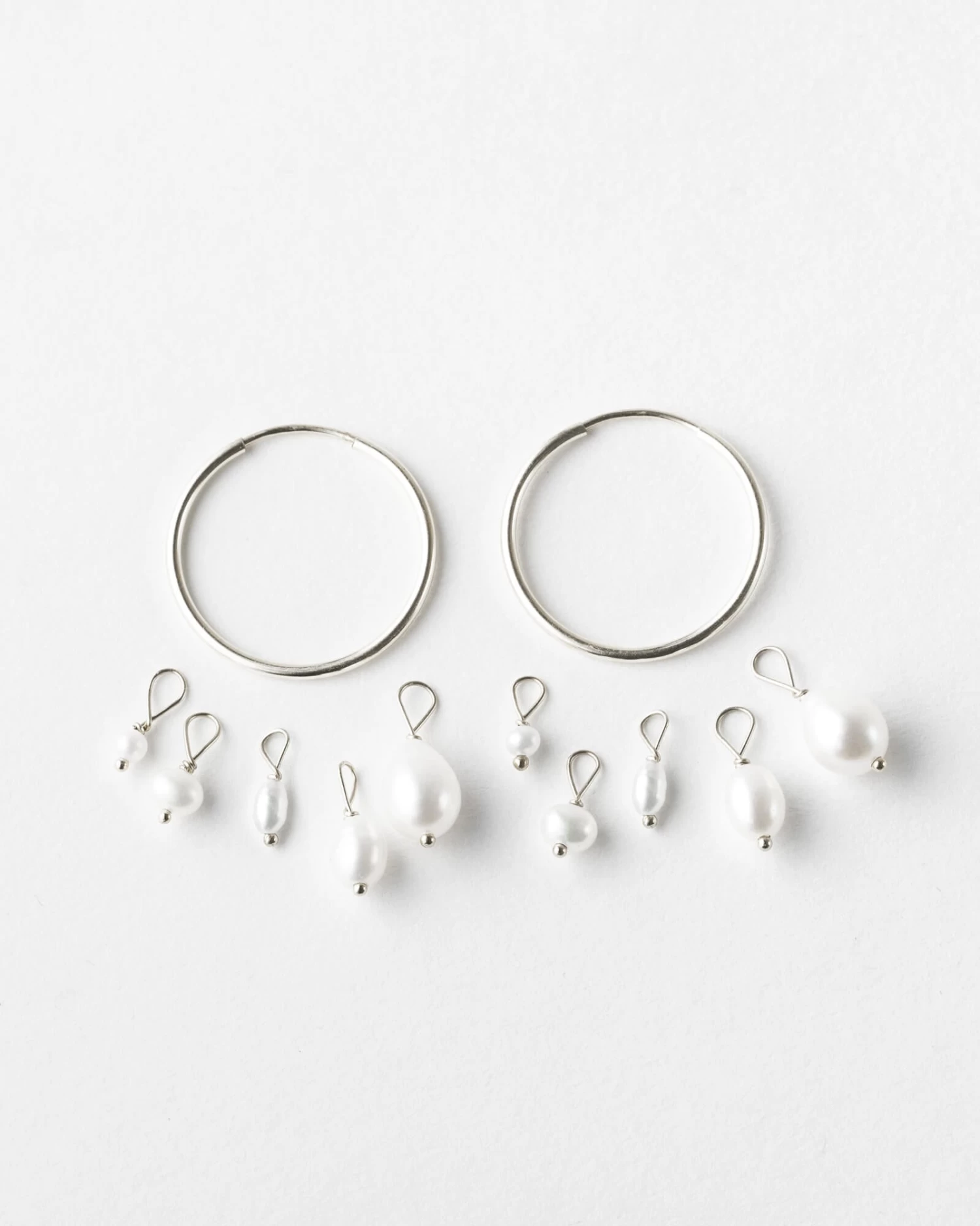 Each set includes ten organic, asymmetrical pearl charms plus one pair of endless hoops.