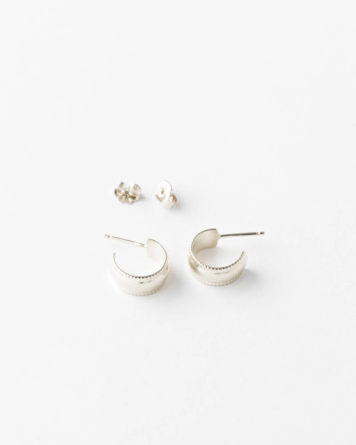 Meet Milly, a textured huggie hoop that makes a mighty statement. Wear these milgrain hoops on their own or in a stack for a classic style with a modern flair. Sold as a pair.
