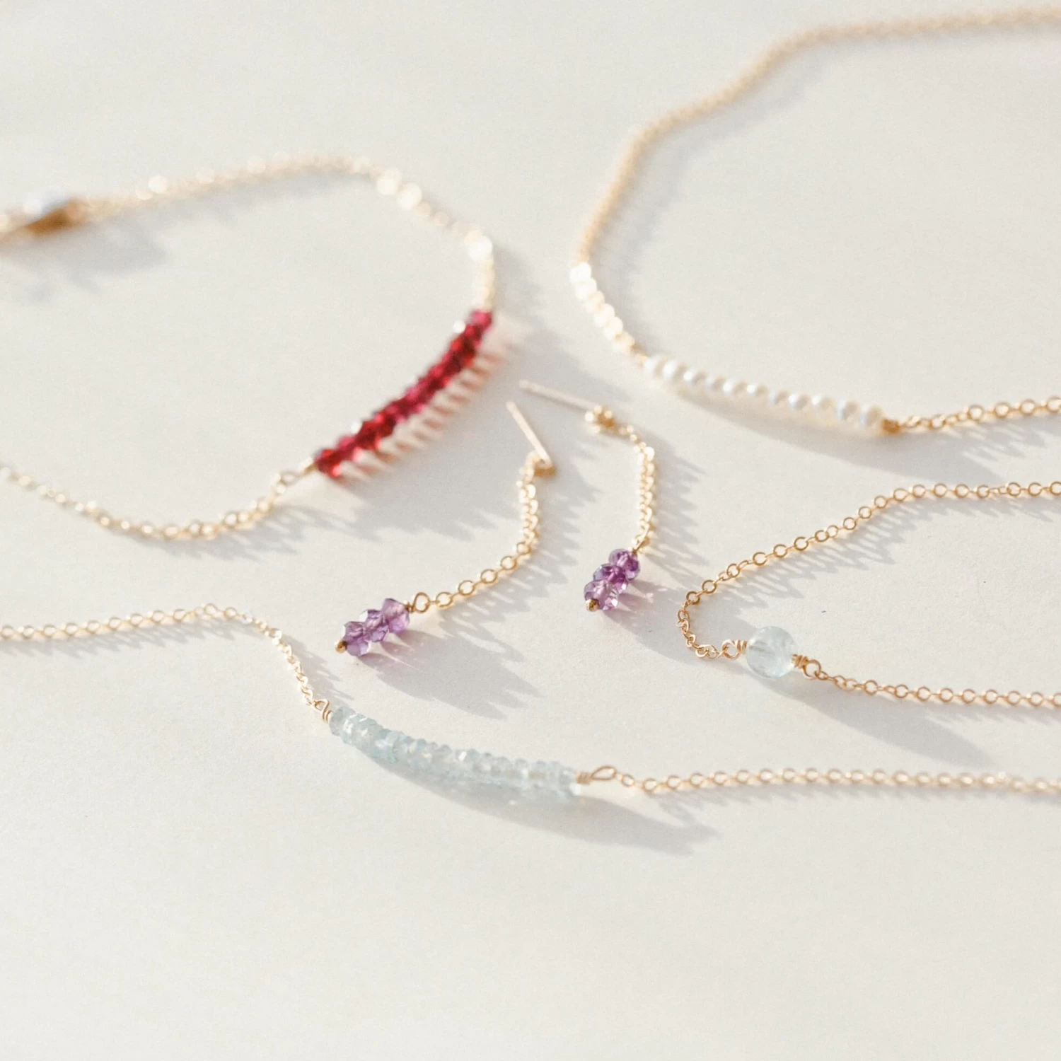 | Gemstone | Garnet, Amethyst, Aquamarine, White Topaz, Emerald, Freshwater Pearl, Ruby, Peridot, Dark Sapphire, Shaded Pink Tourmaline, Golden Citrine, Tanzanite, Labradorite, Black Spinel, Turquoise |