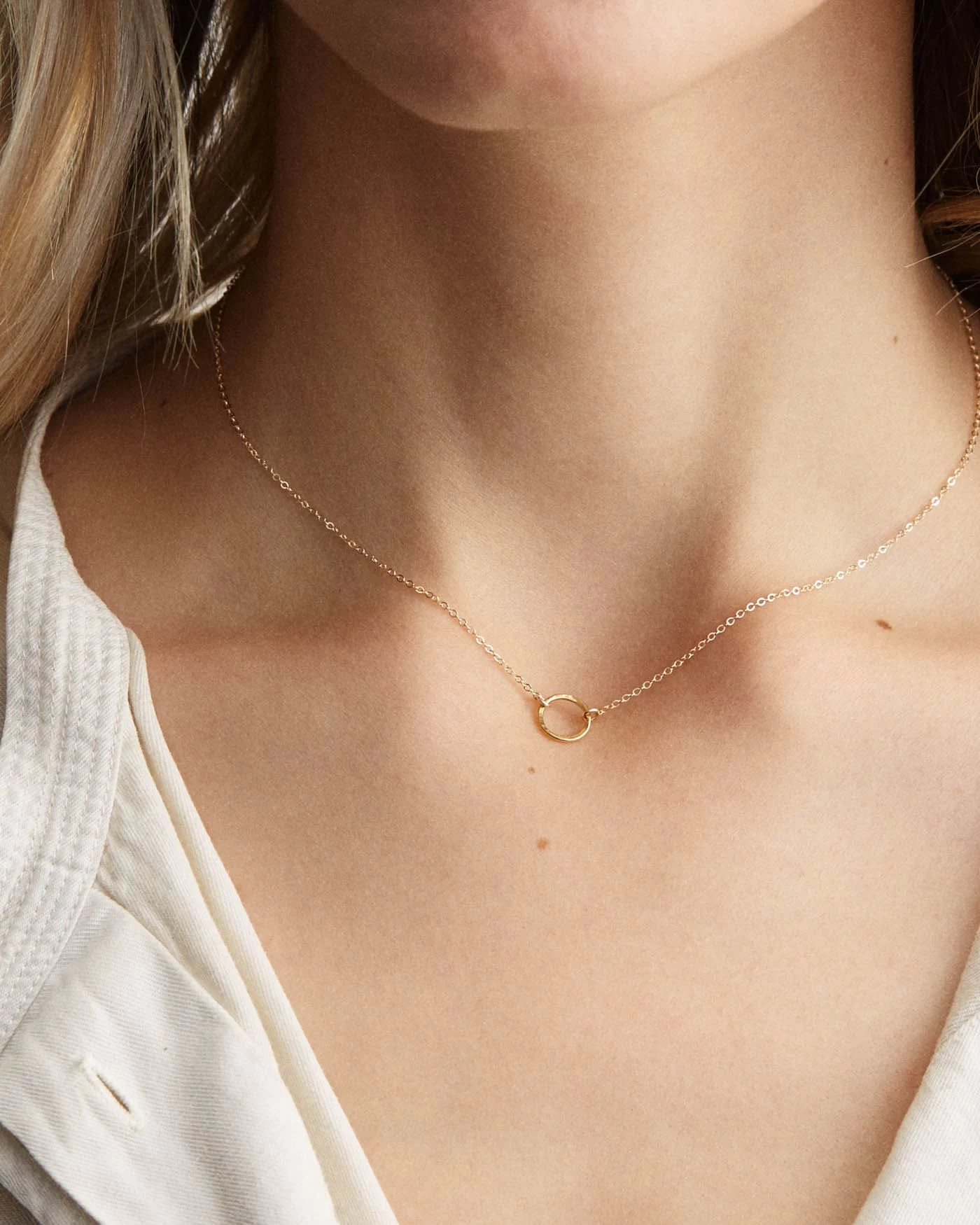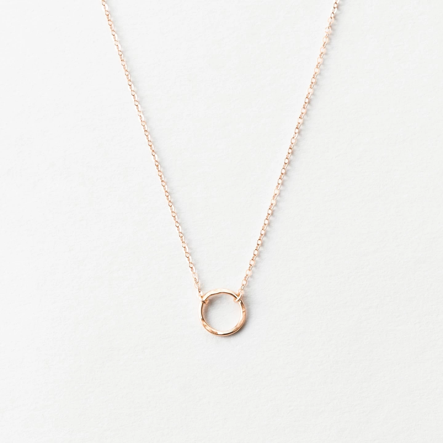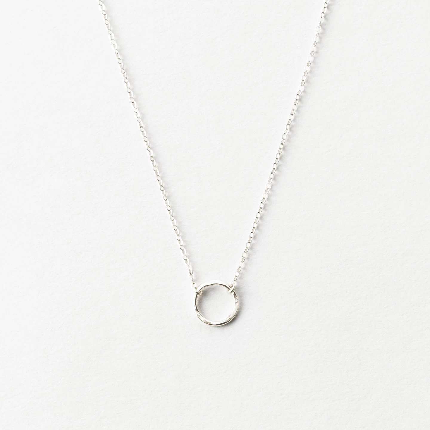 Meet Mona, the daintiest of our open circle necklaces. The hand-formed, textured 9mm circle is suspended in chain- a timeless design, great for everyday, that also layers beautifully with others.