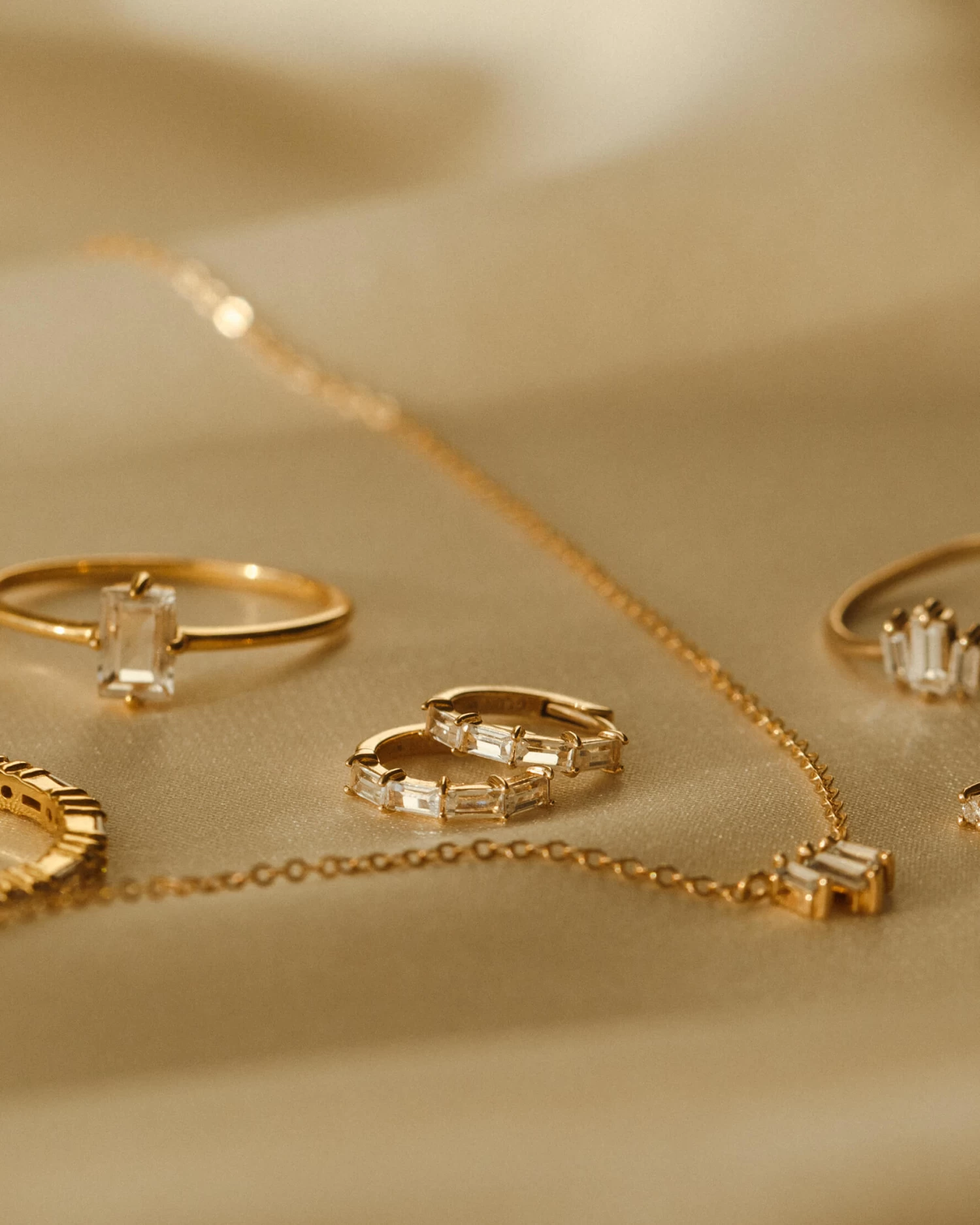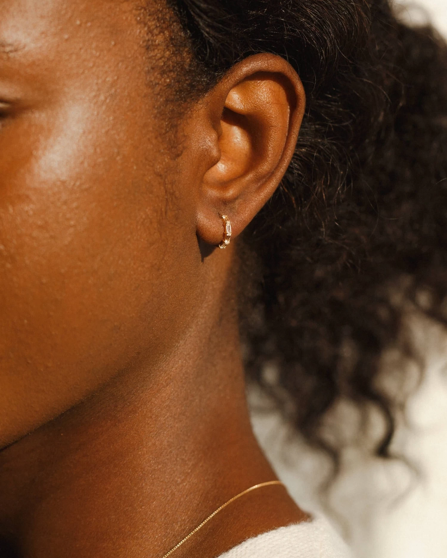A little vintage, a little modern, dreamy as can be. These baguette hoops are crafted with lab-grown white sapphires and hinged for easy, comfy stacking. We love them in a second piercing (paired with a few studs or a larger hoop).