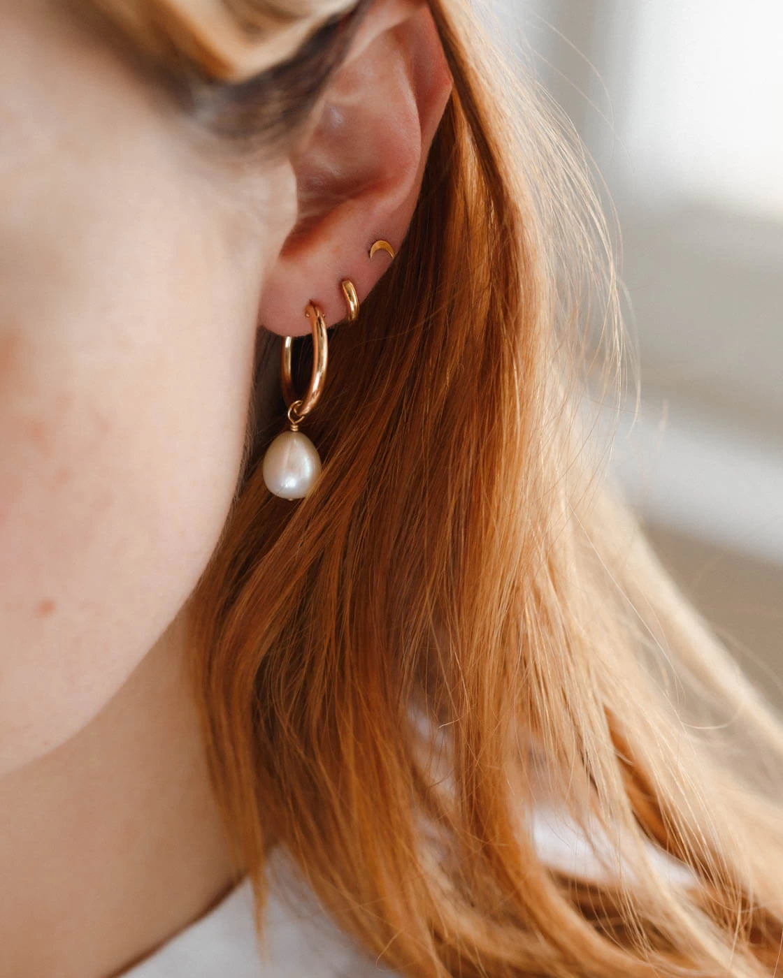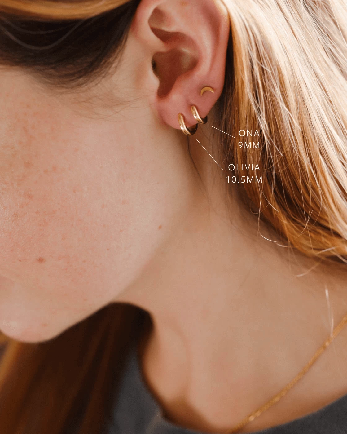 Waiting for the ultimate everyday huggies? This is your sign. Perfectly proportioned, gently rounded, hinged for easy on-off and specially designed for a snug fit in 2nd or 3rd piercings. Sold as a pair.