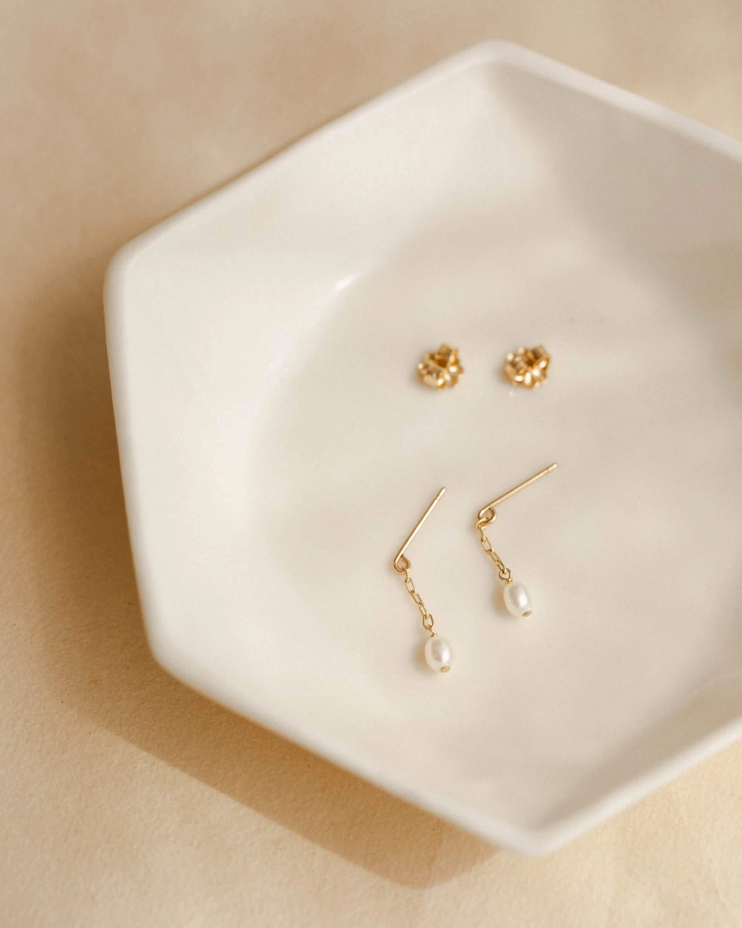 Make your earscape dance with tiny freshwater pearls dropped from the daintiest chain—a whisper, not a shout. Ideal for your wedding day, every day or a pearls’ night out. Sold as a pair.