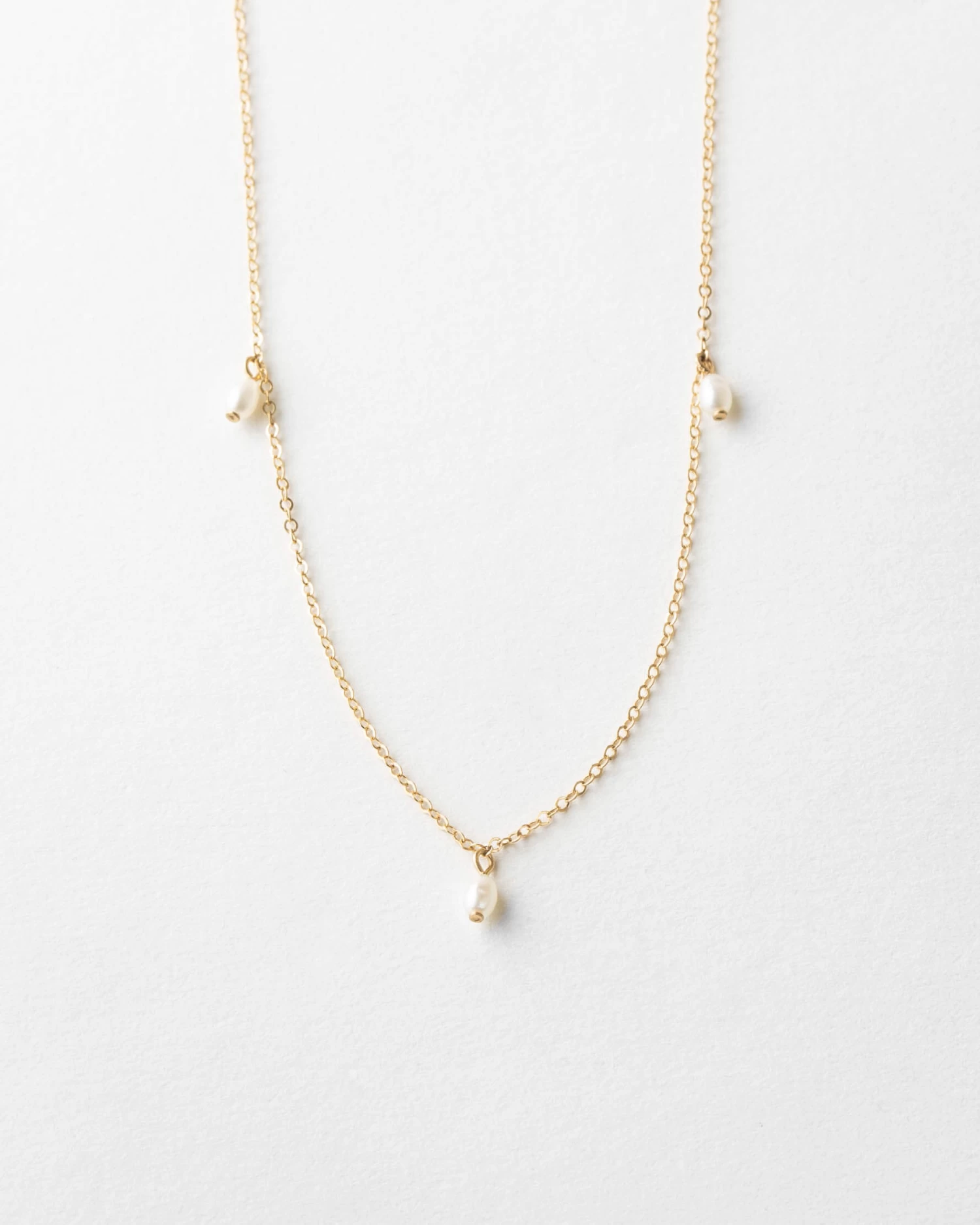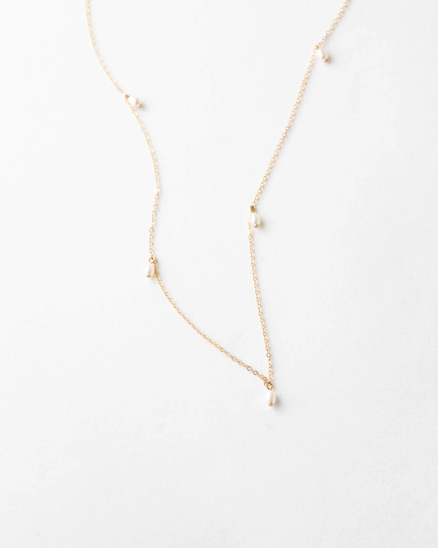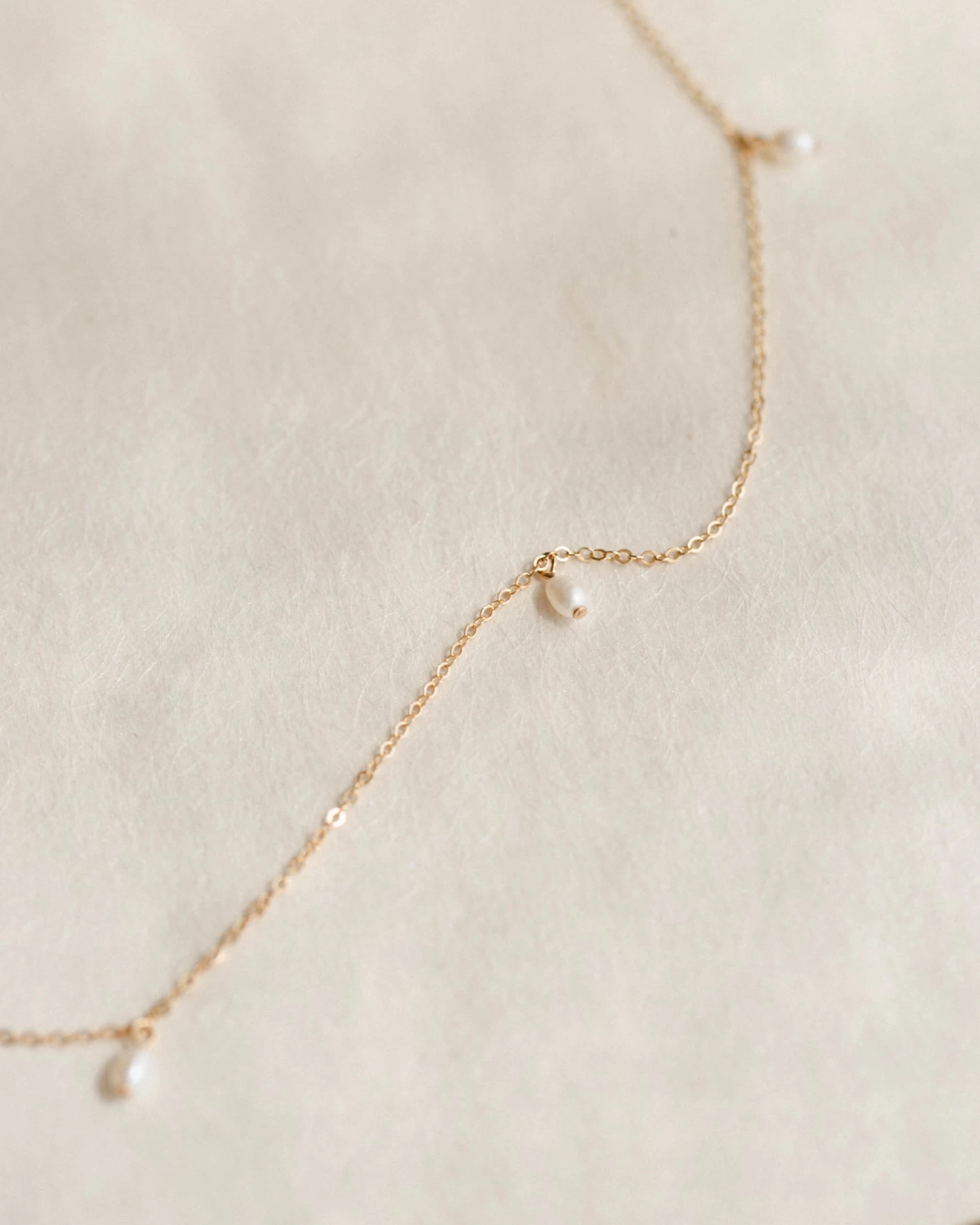 This ultra-dainty freshwater necklace stacks like a chain, sways like a charm necklace and wears like a touch of 24/7 romance—ideal for your wedding day, every day or a pearls’ night out.