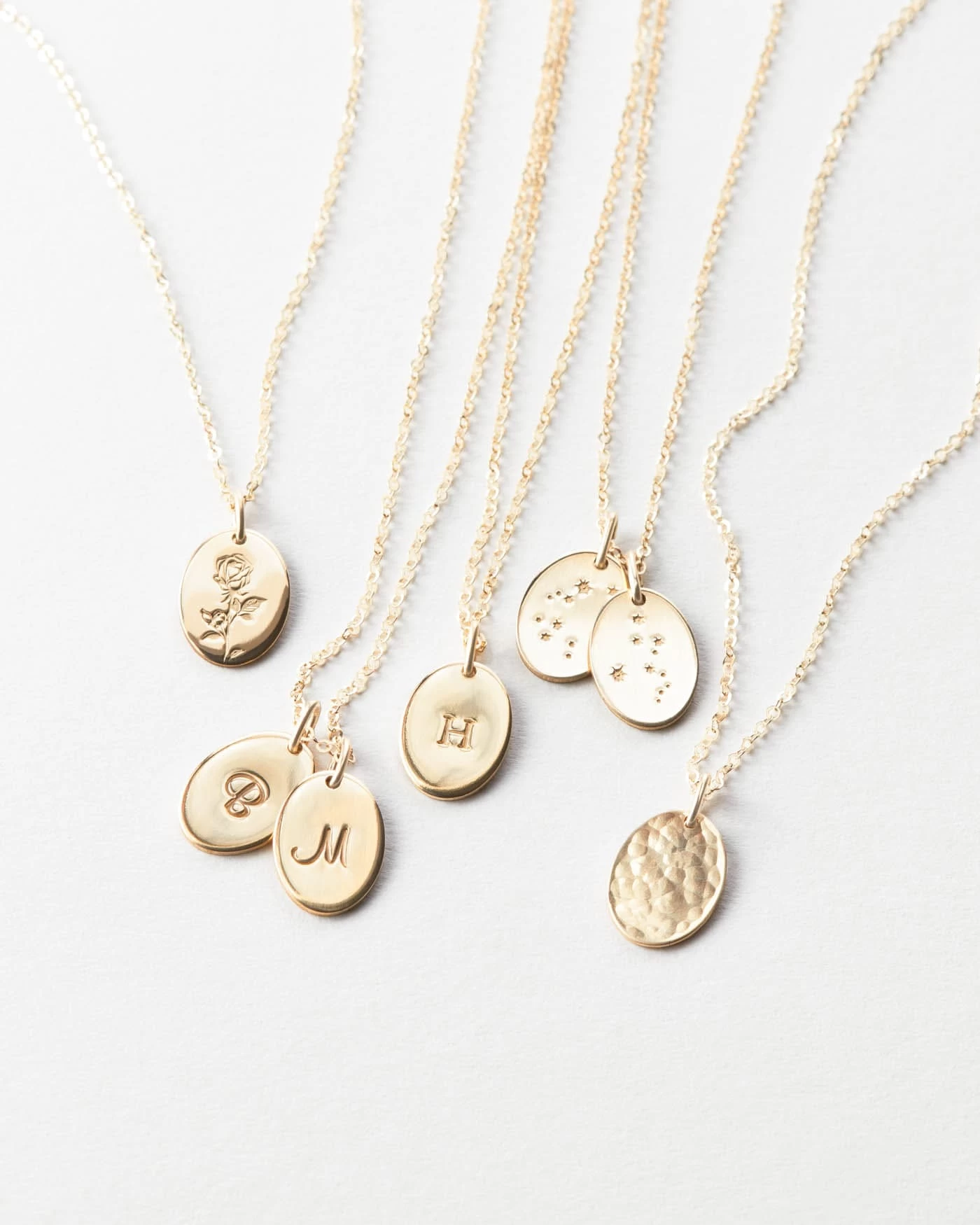 A little vintage flair for everyday wear. This timeless oval pendant can be personalized with initials or symbols, in a smooth or hand-hammered finish.