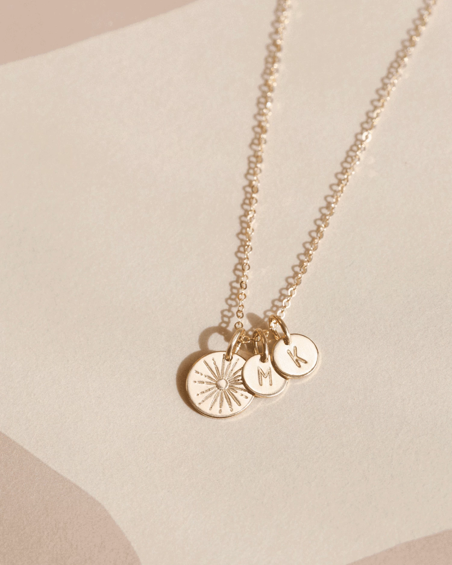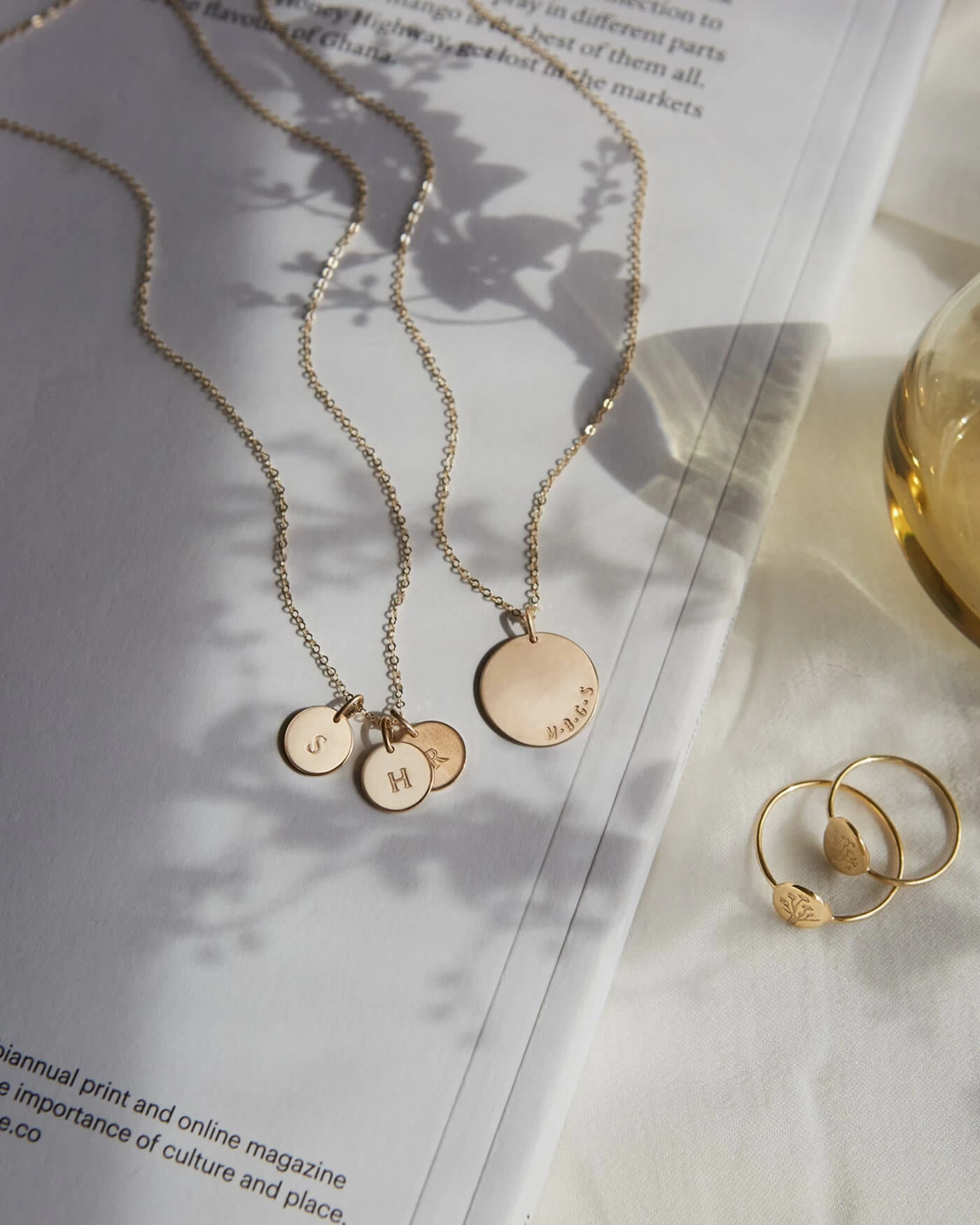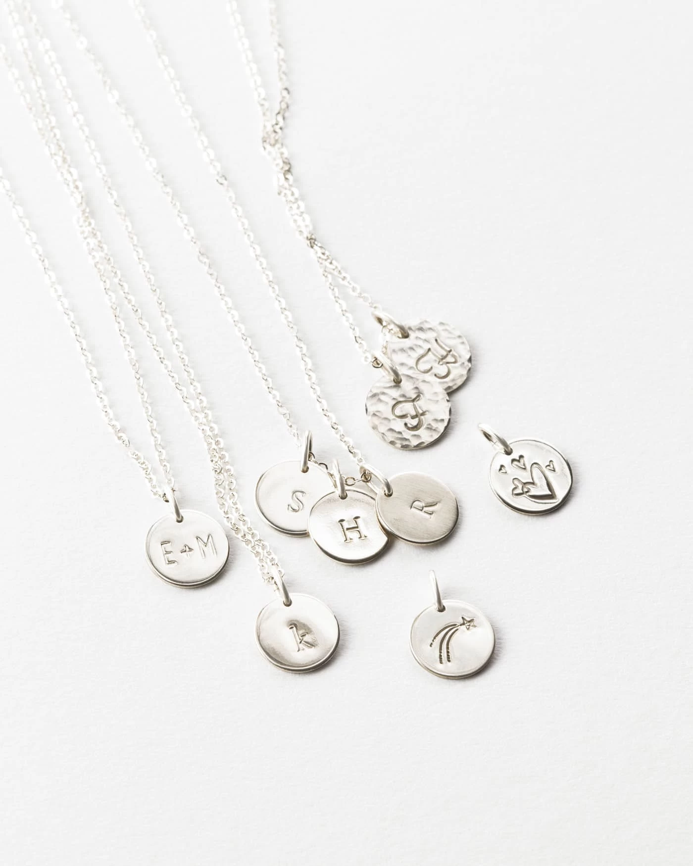 Directions: add your initials and wear every day. This small disk necklace is ready to personalize with special letters or symbols to keep close.