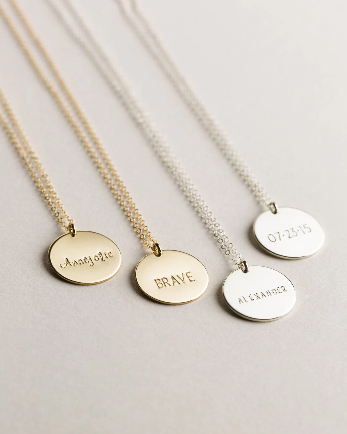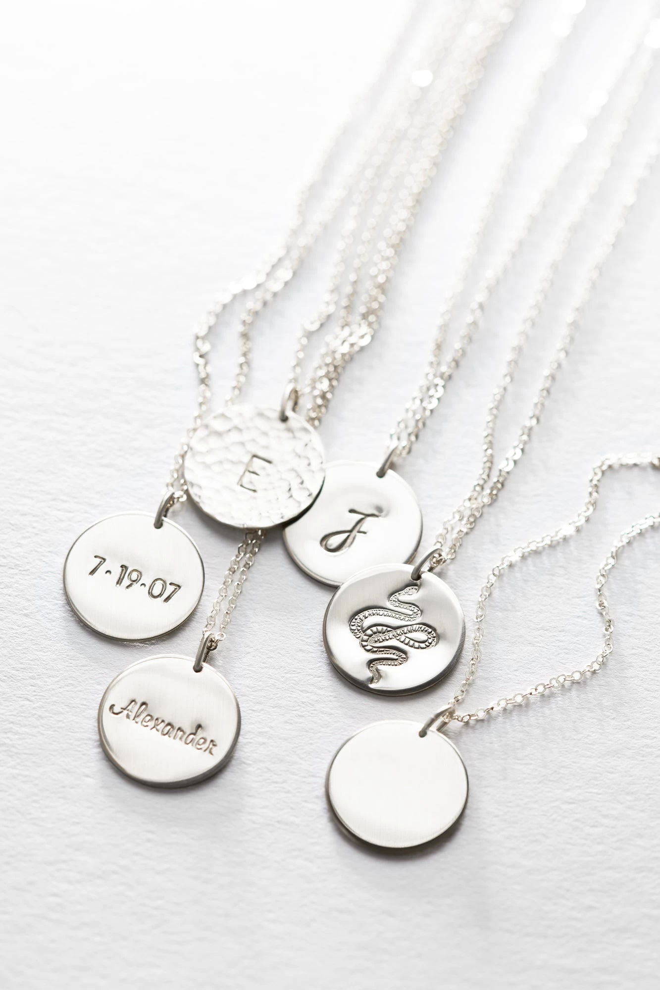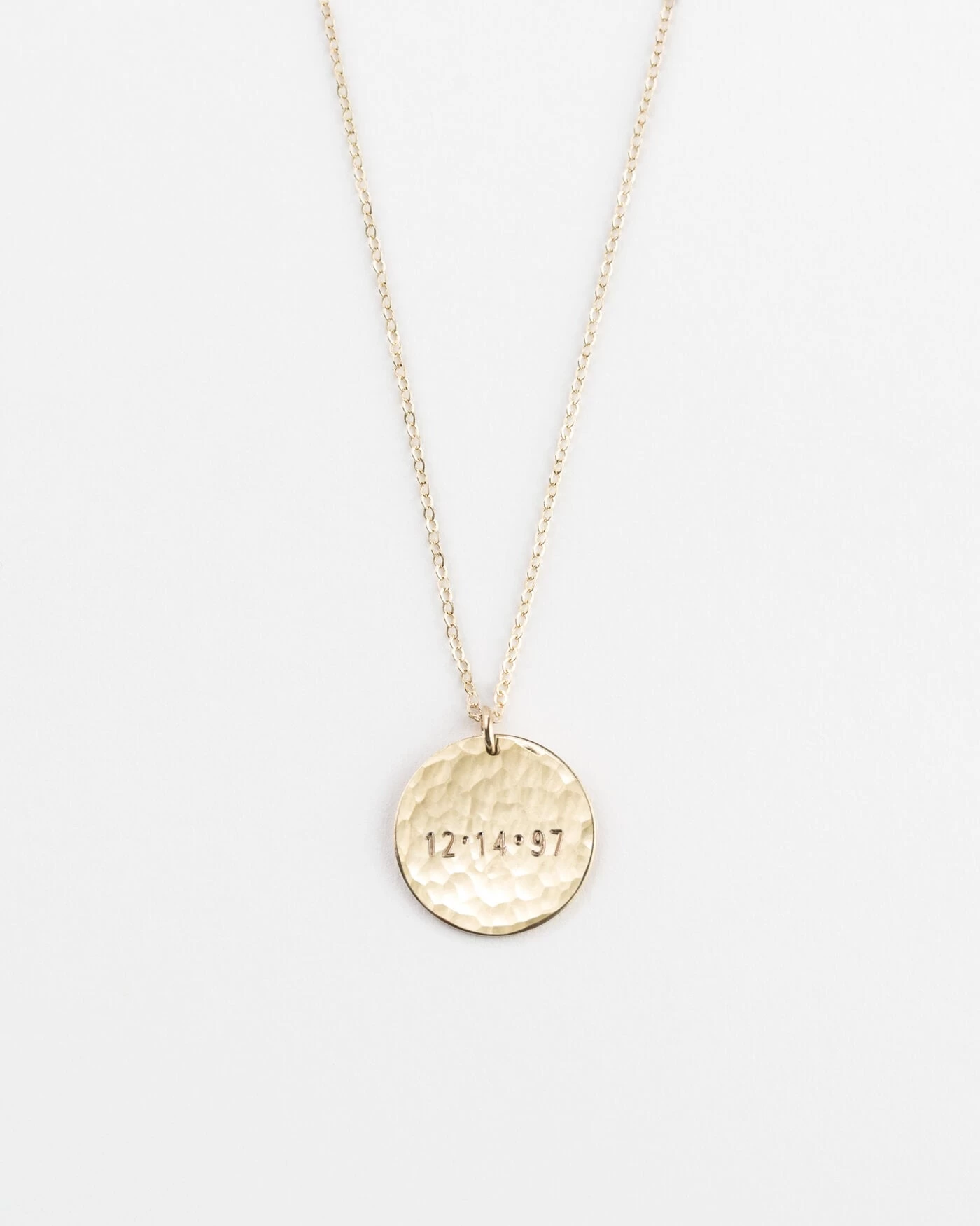 Available in two finishes—high-polish smooth or hand-hammered—and strung on our ever-sparkling dainty chain.