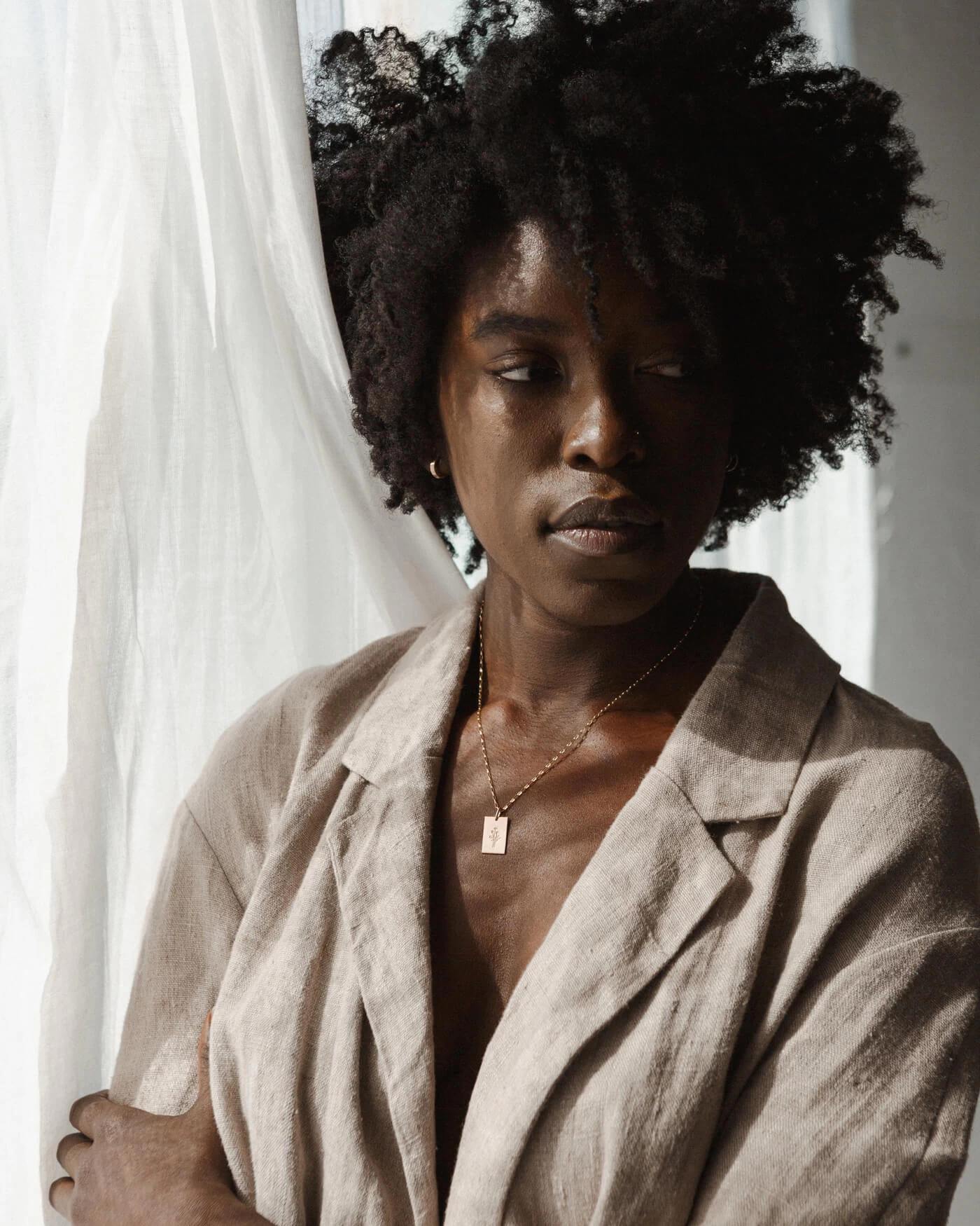 Make a modern statement with our favorite rectangle pendant: a master class in mixing masculine and feminine energy.