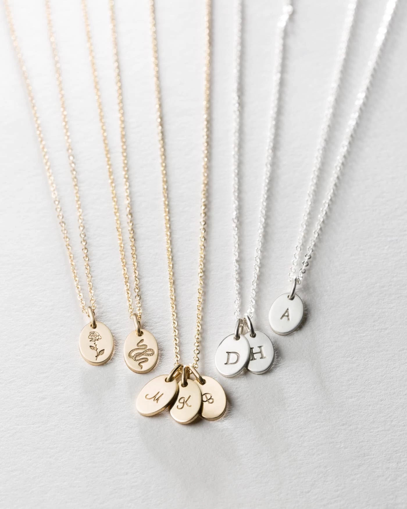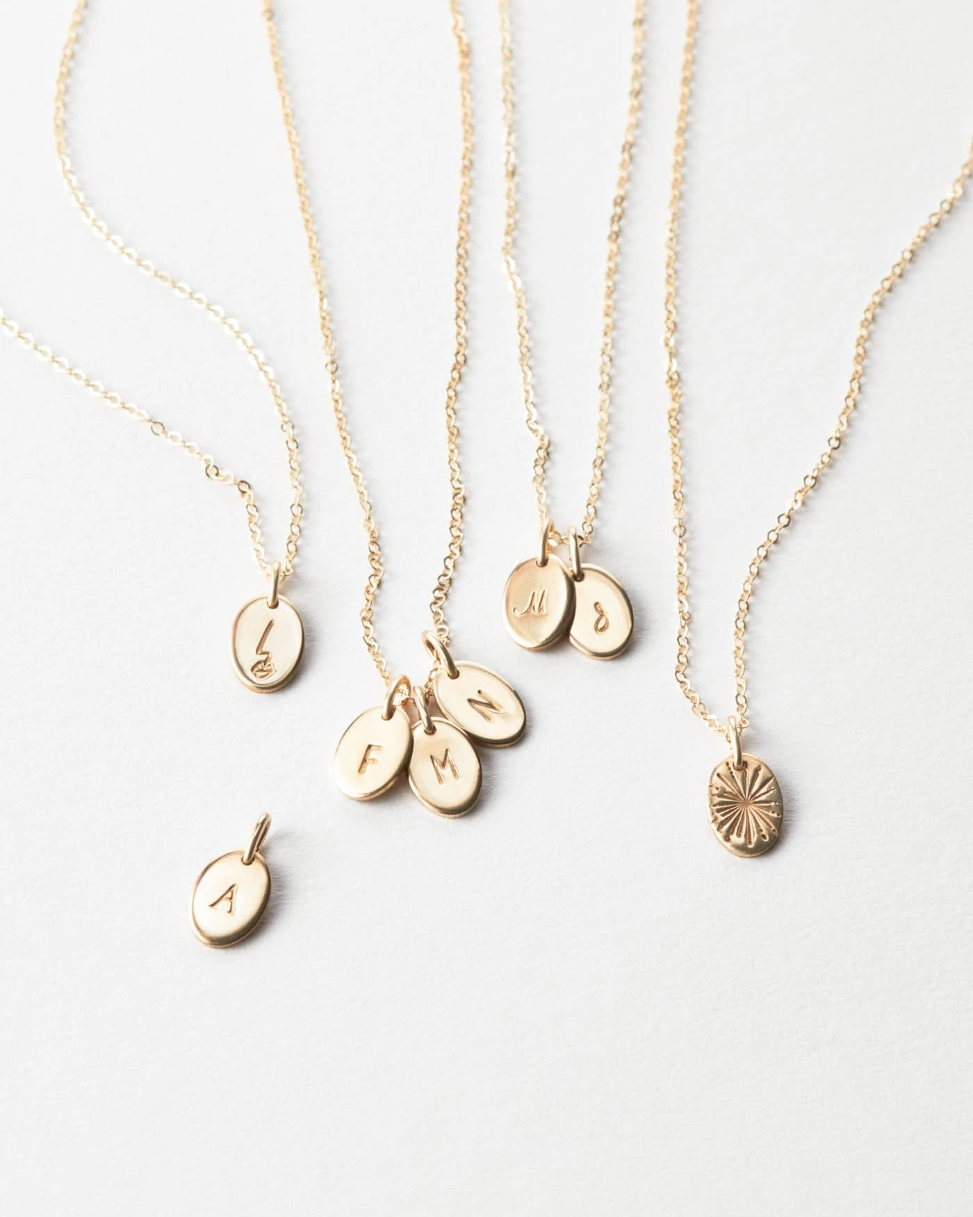 The cutest tiny oval pendants to personalize with your favorite initials or symbols (or both). A timeless twist on our classic disks.
