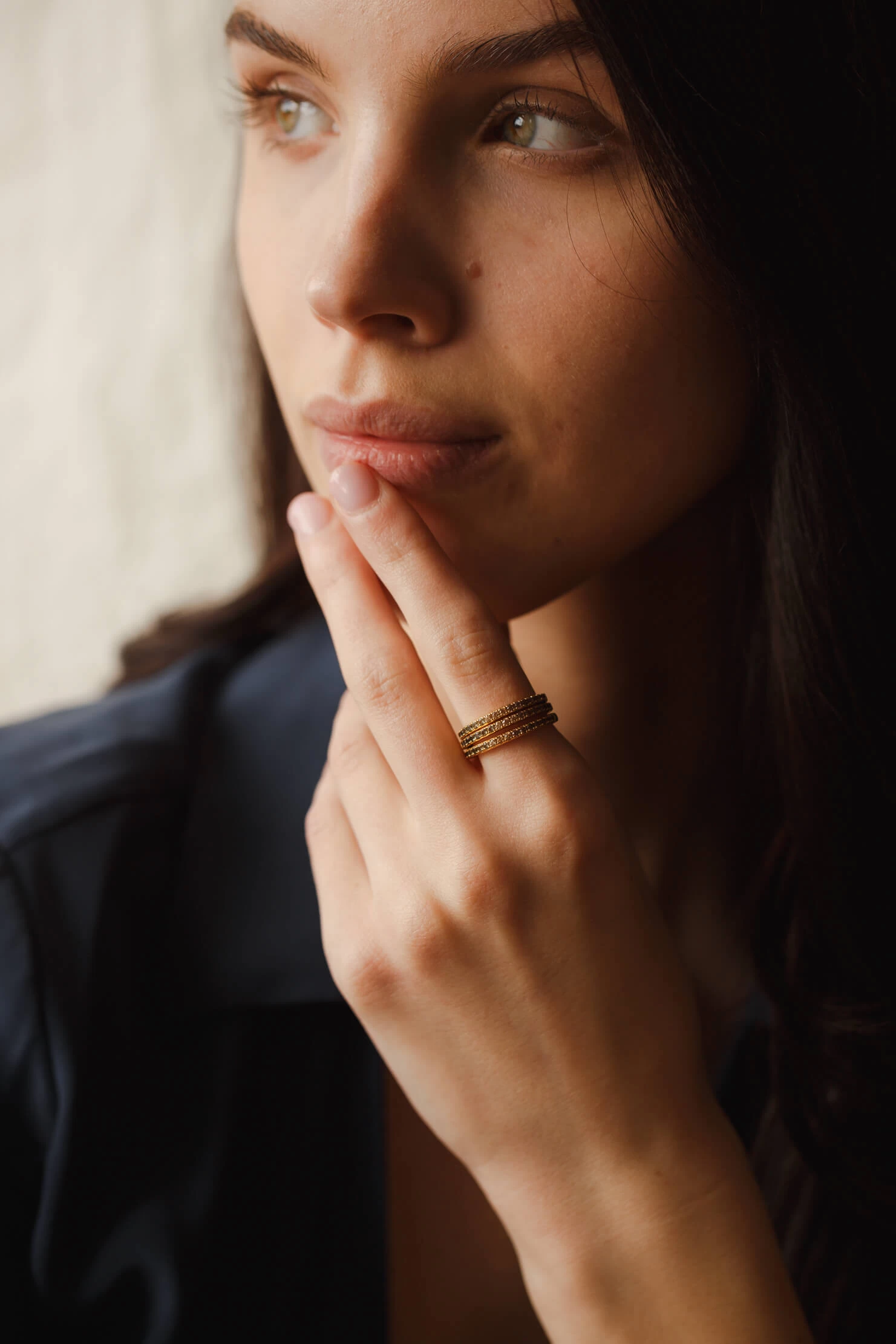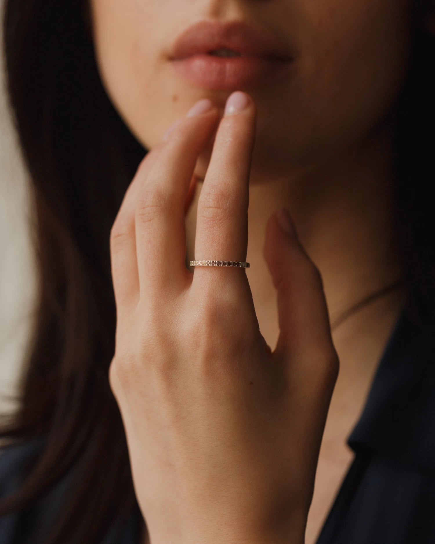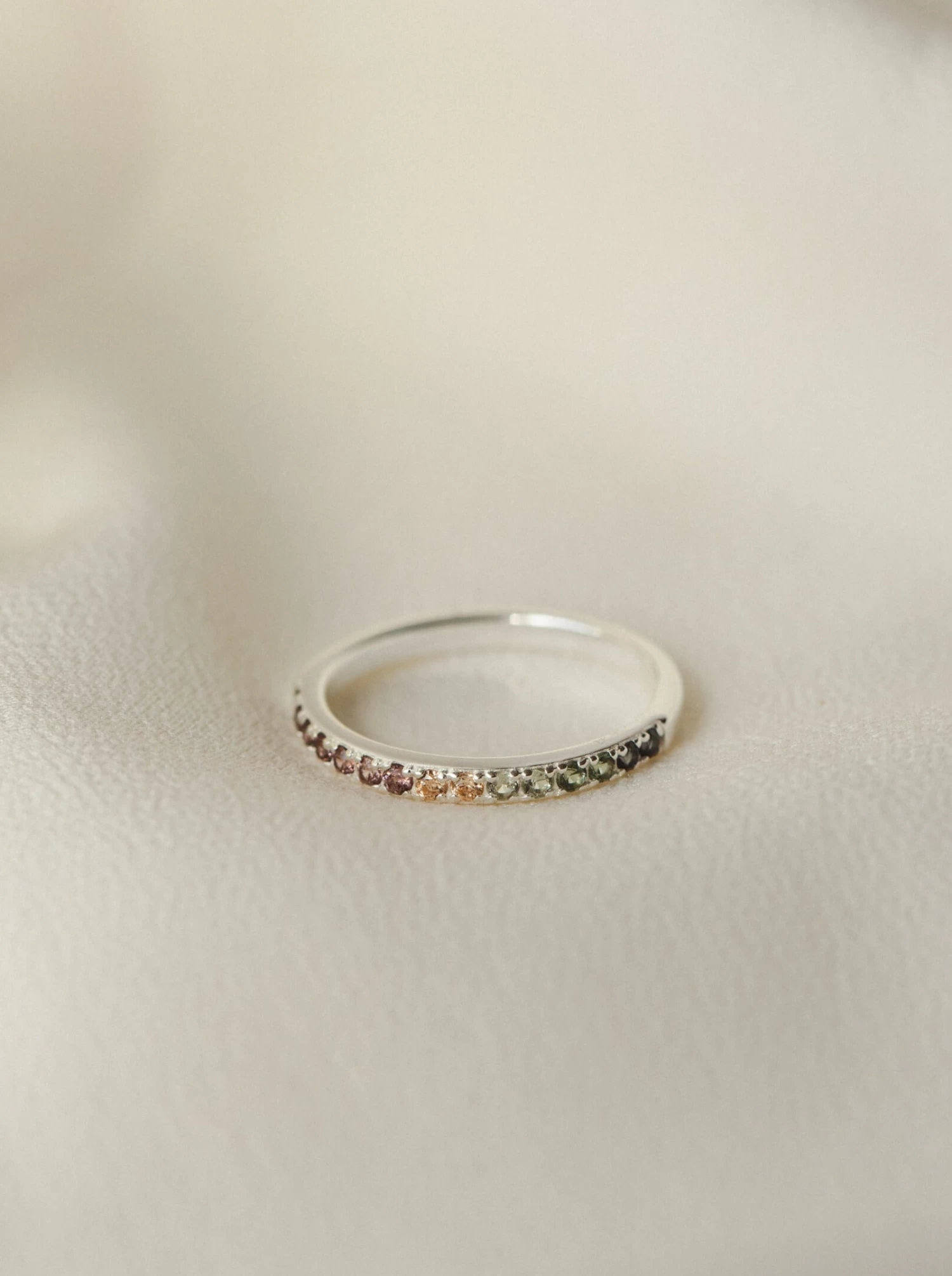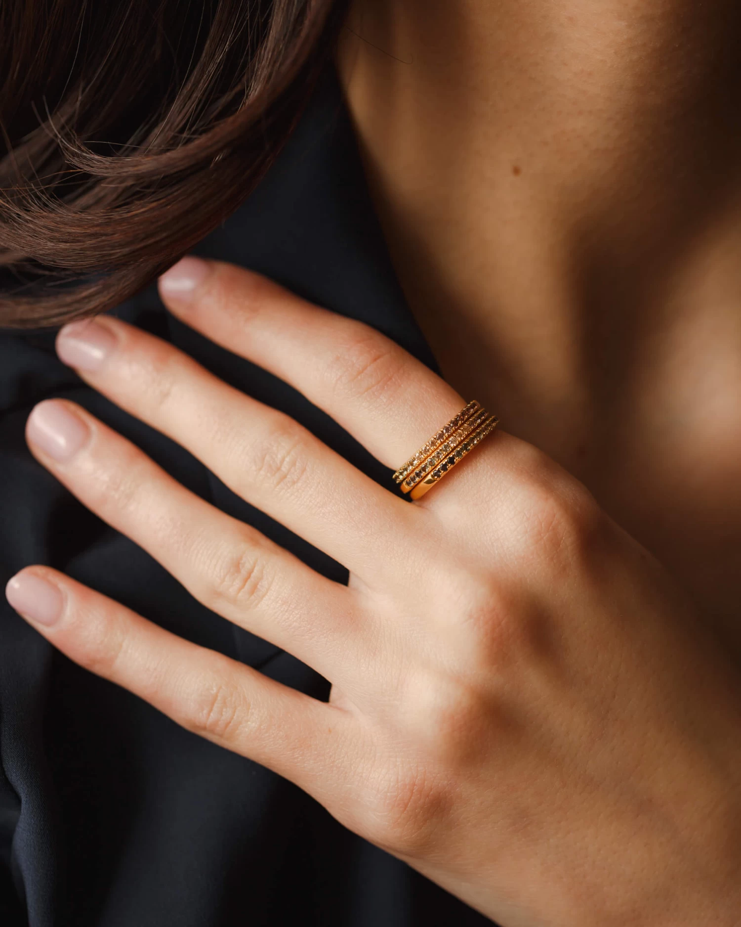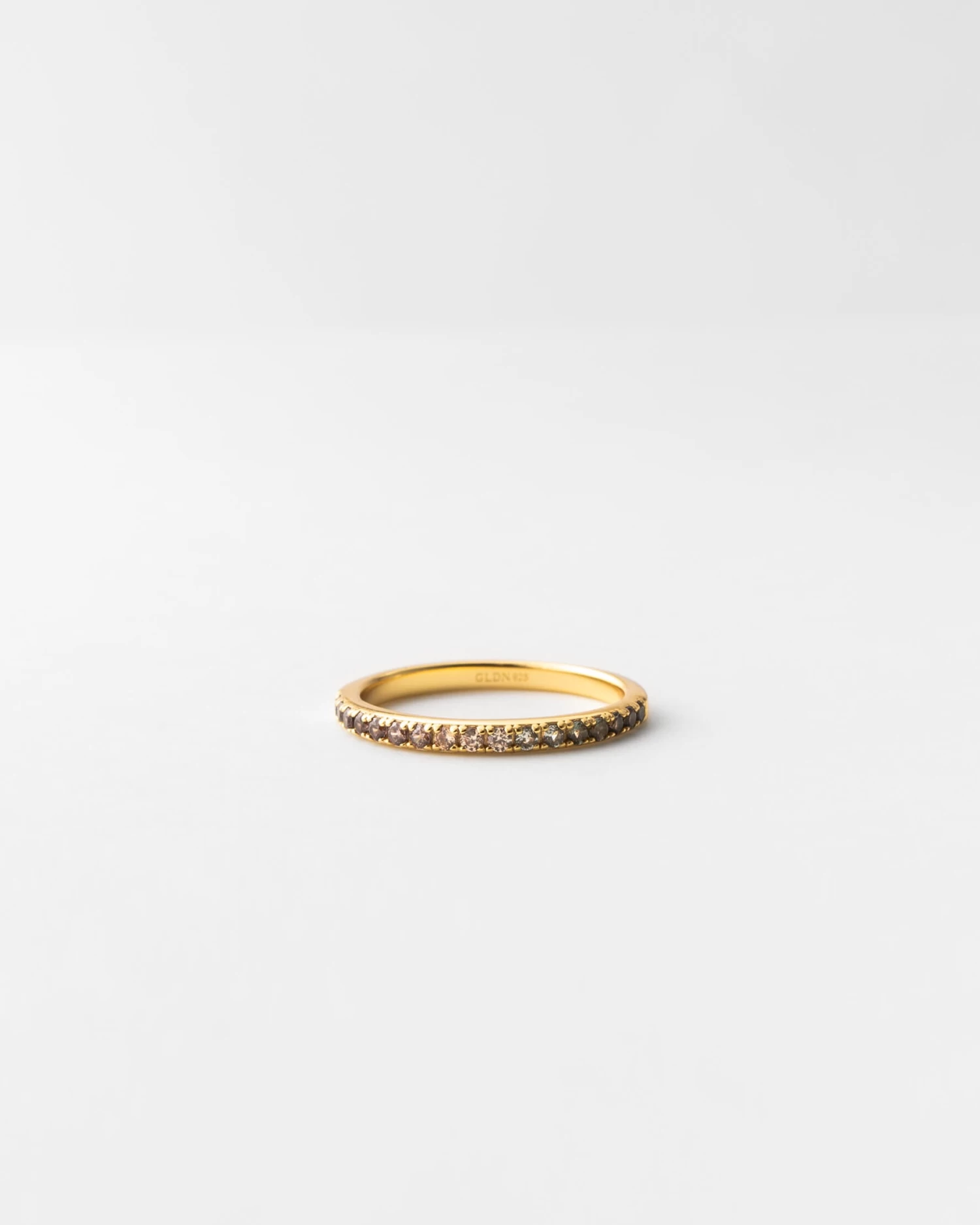 Dawn to dusk, season to season. Serenade your stack with our multi-colored gemstone ring, featuring mysterious mauves arcing into champagne yellows and settling into deep, dusky blues—the palette of poetry. Available in your choice of gold vermeil or sterling silver. Pair with our Midnight Blossom Ring (or any of your GLDN favorites) and let your story unfold stanza by stanza.