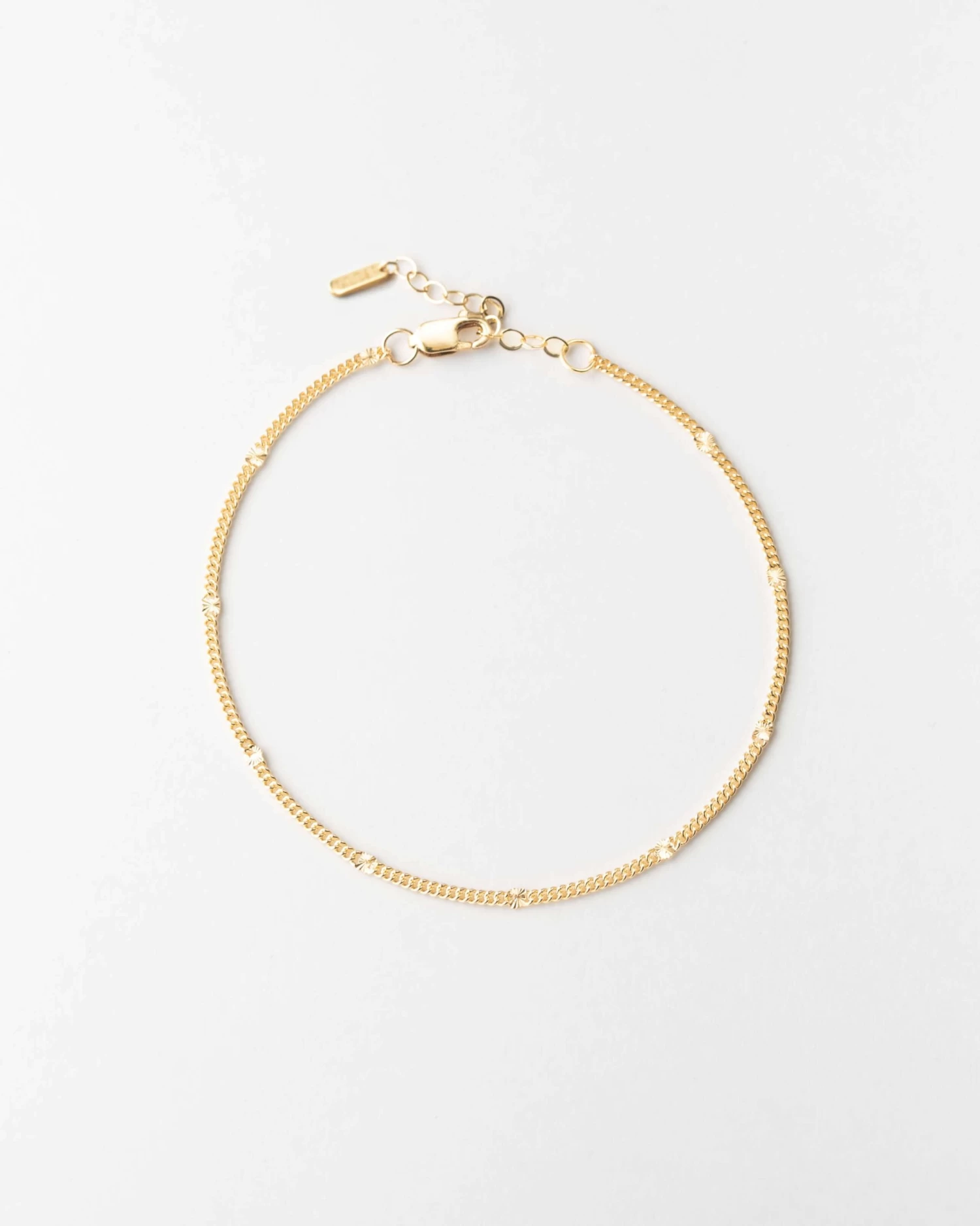 Each chain is dotted with little sunbursts to catch the light—like fireflies, twinkling lights and golden hour all rolled into one! Style it solo, stack with your favorite bracelets or add a charm for an extra sparkle of personalization.