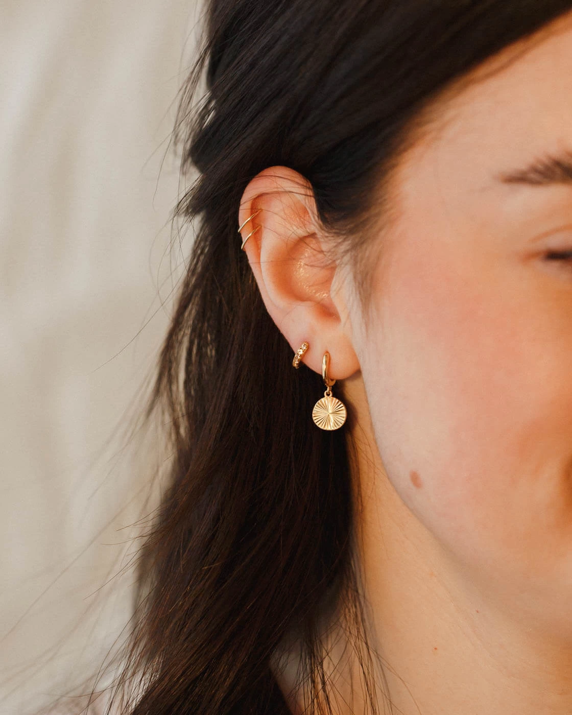 Part huggie, part drop earring, charming as can be. This lit-from-within piece sparkles and sways with you! Sold as a pair.