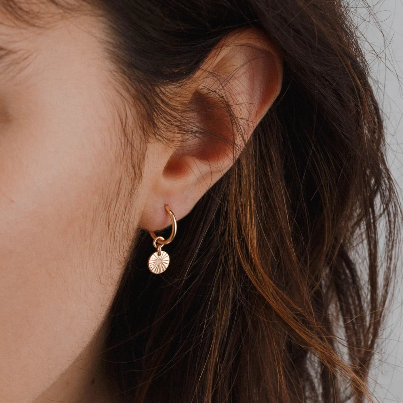 With removable disks, these hoops are double the style and double the warmth. Add ’em to your stack or style them alone for a look that’s wearable sunshine. Sold as a pair.