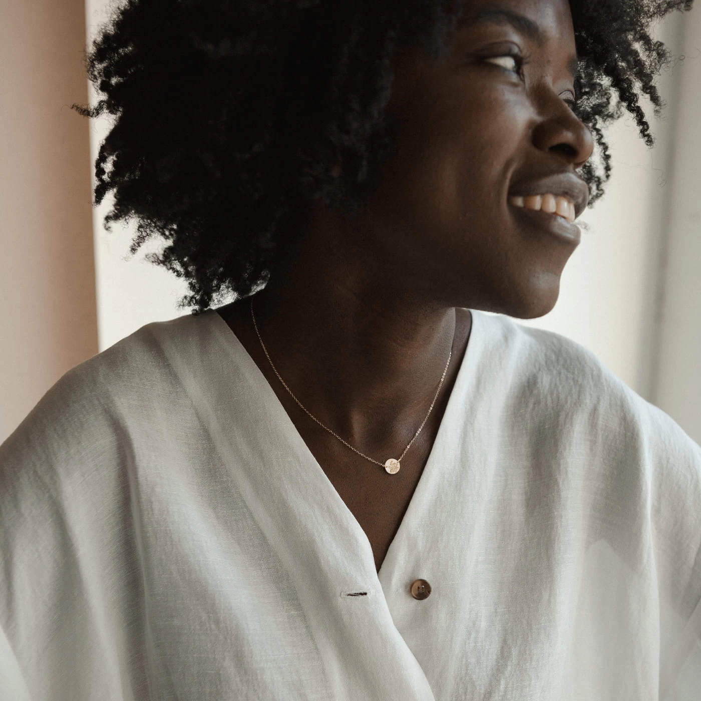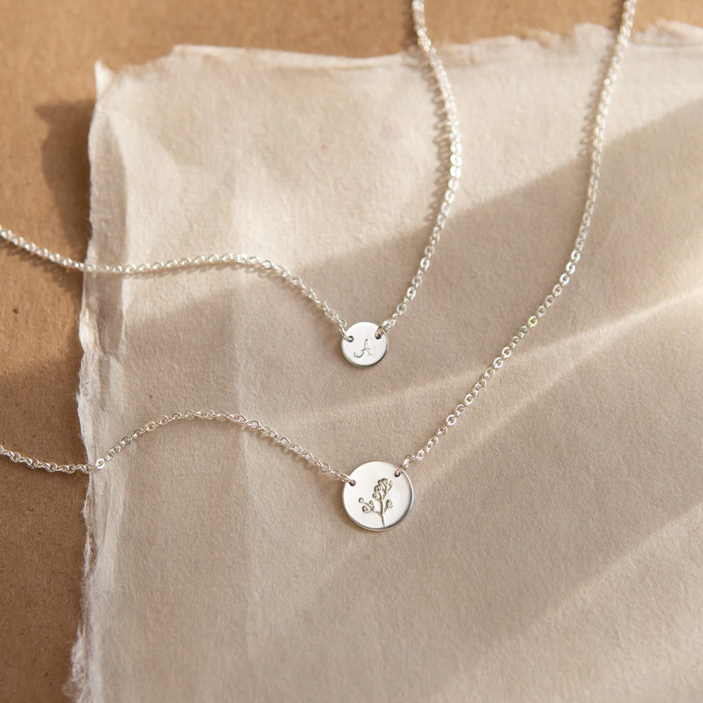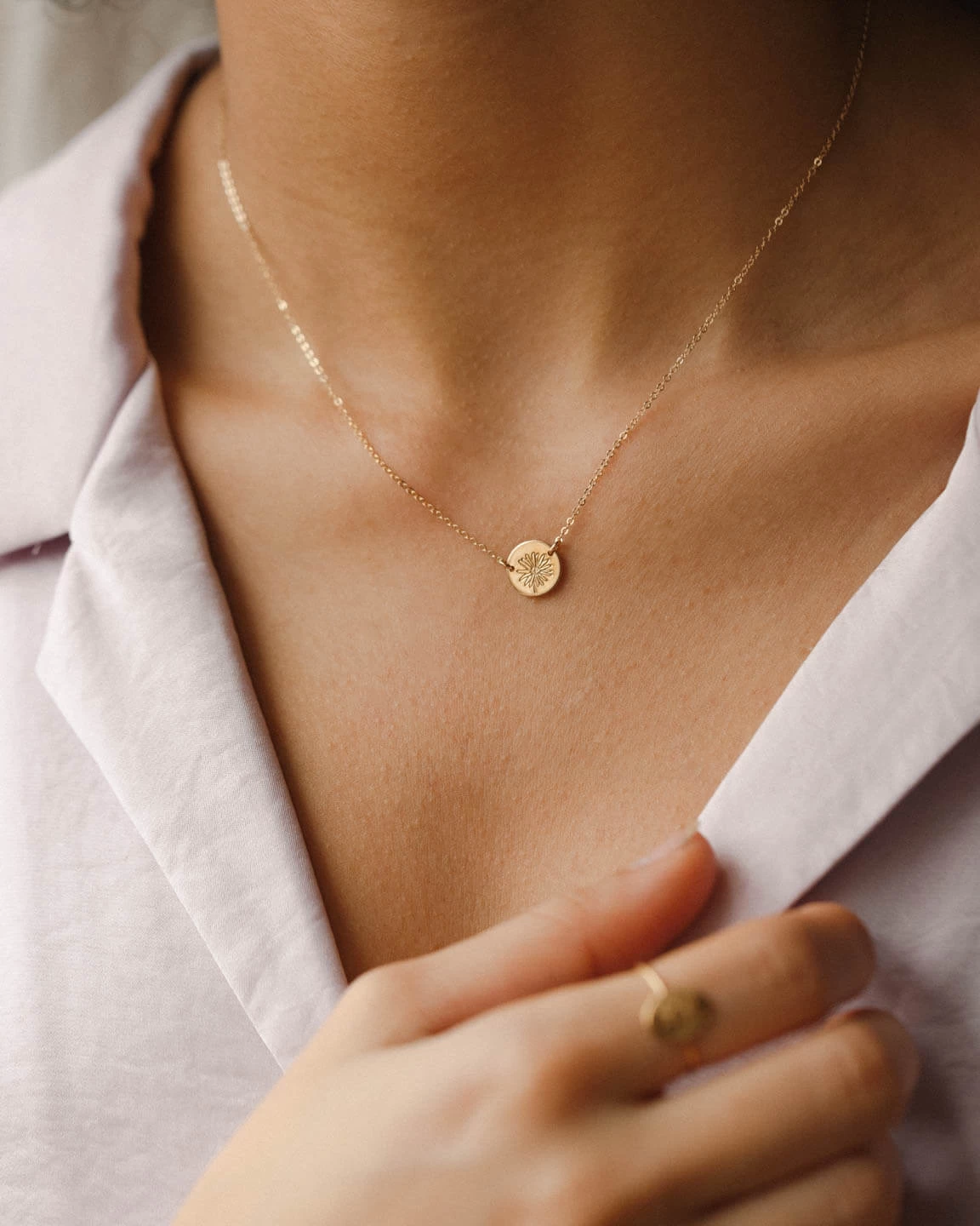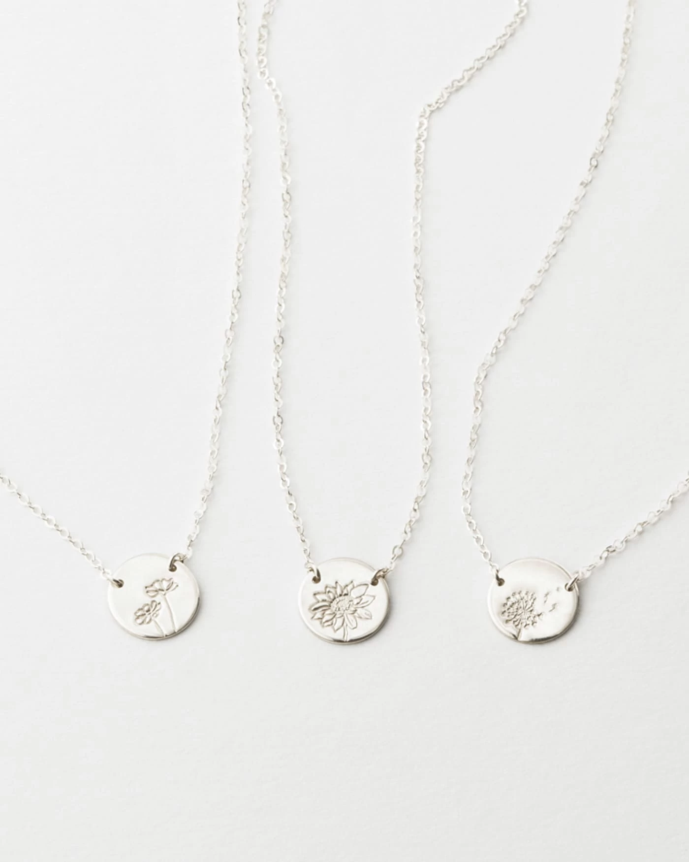 Link up with a beloved bloom (and carry it with you, always). This suspended, hand-stamped disk pendant never swivels or spins — always stays perfectly in place, like magic.