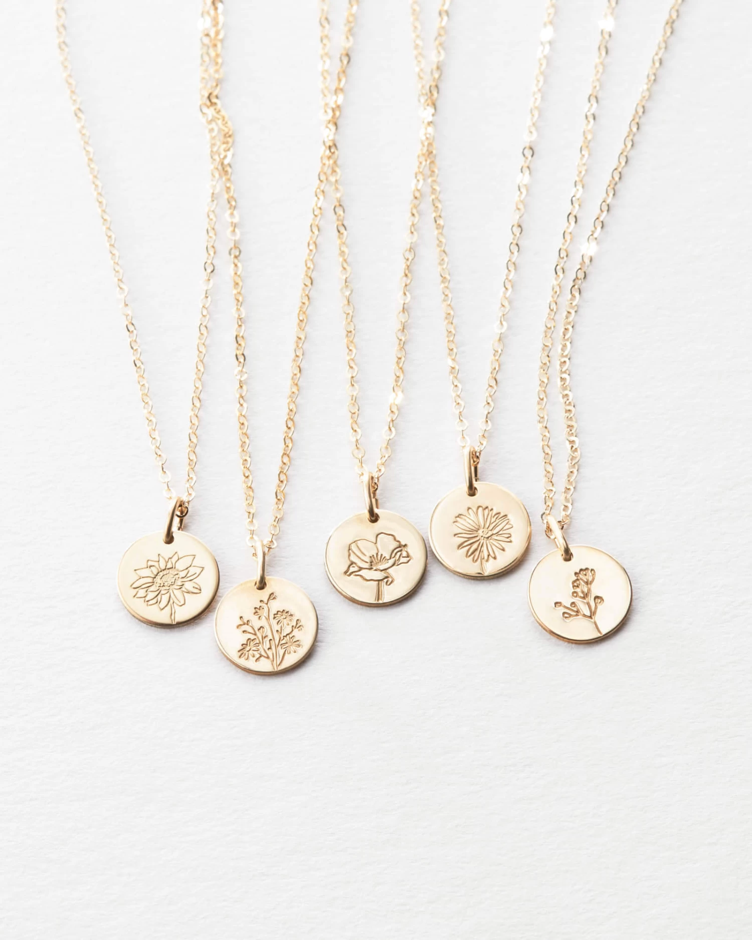Spotlight a beloved bloom on our best-selling small flower necklace (a classic, and for good reason)! Each flower is elegantly illustrated and stamped by hand in our studio.