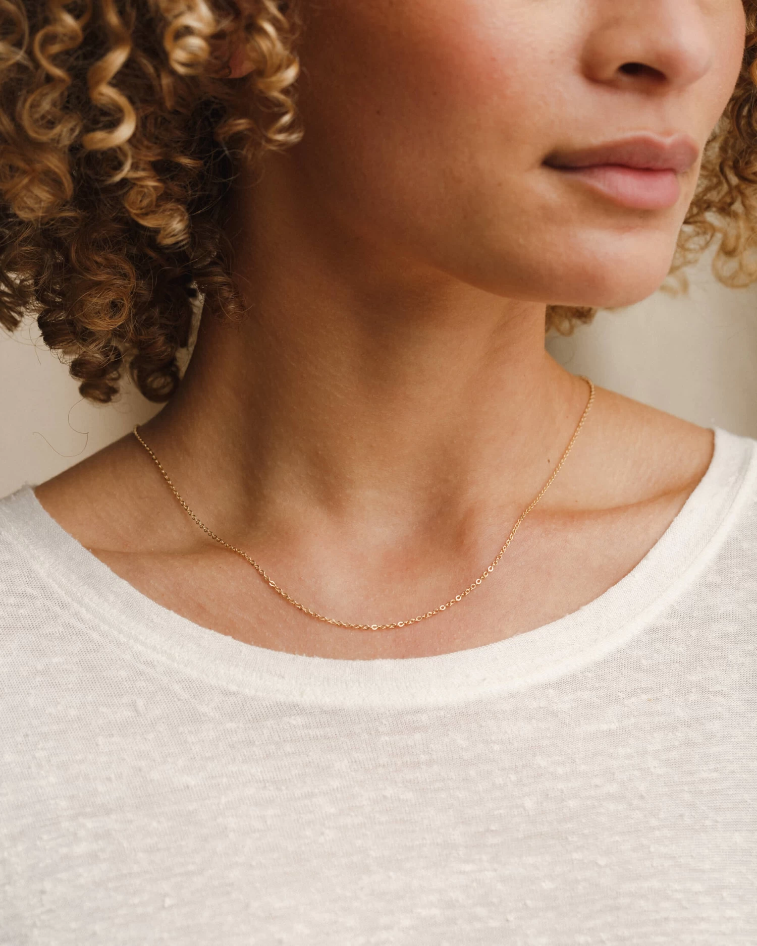 Our every-sparkling dainty chain got an heirloom upgrade—the perfect base for your favorite pendants and charms, or to wear as a whisper along your collarbone.