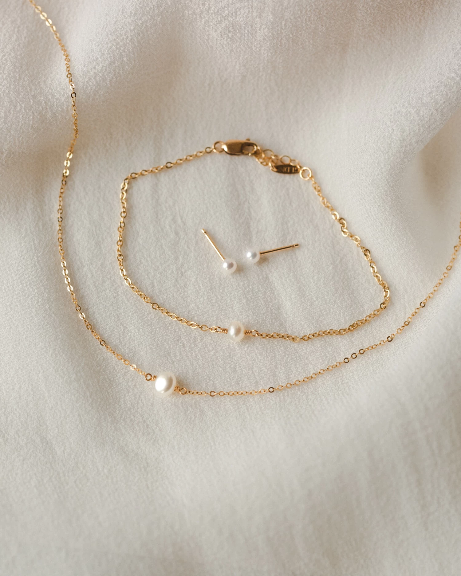 Ready, set, glow with this pearl jewelry set: three timeless pearl pieces crafted in 14k solid gold.