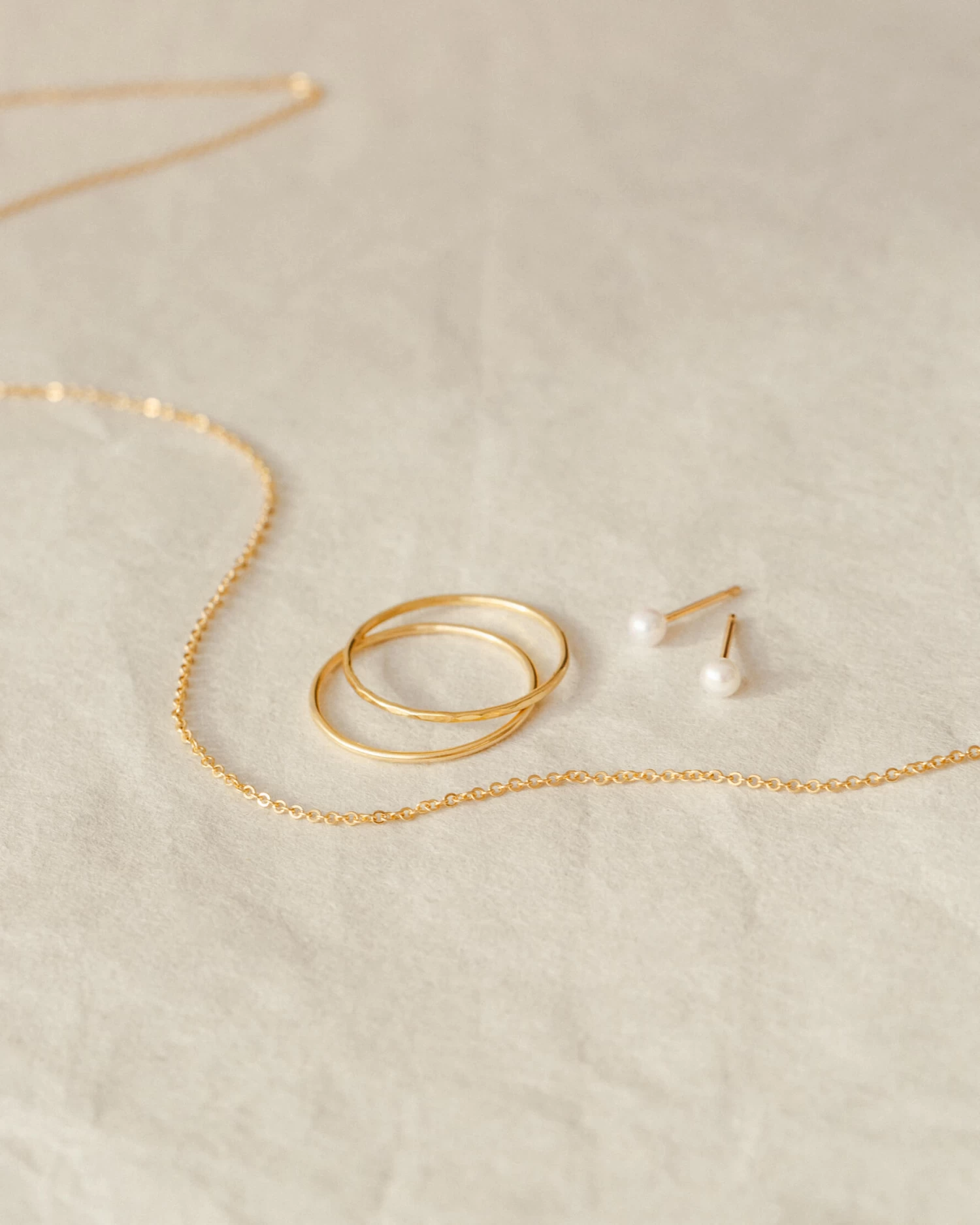 Both rings will be made in one size, as they’re meant to stack! All pieces will arrive in one gift-ready box with letterpress goodies, a care card, polishing cloth and handwritten note inside.