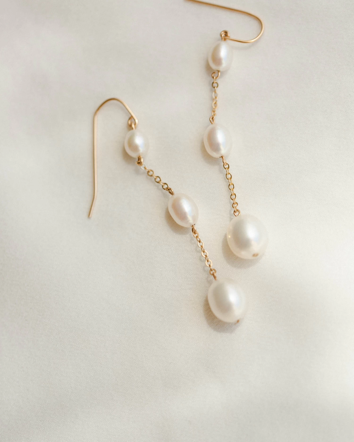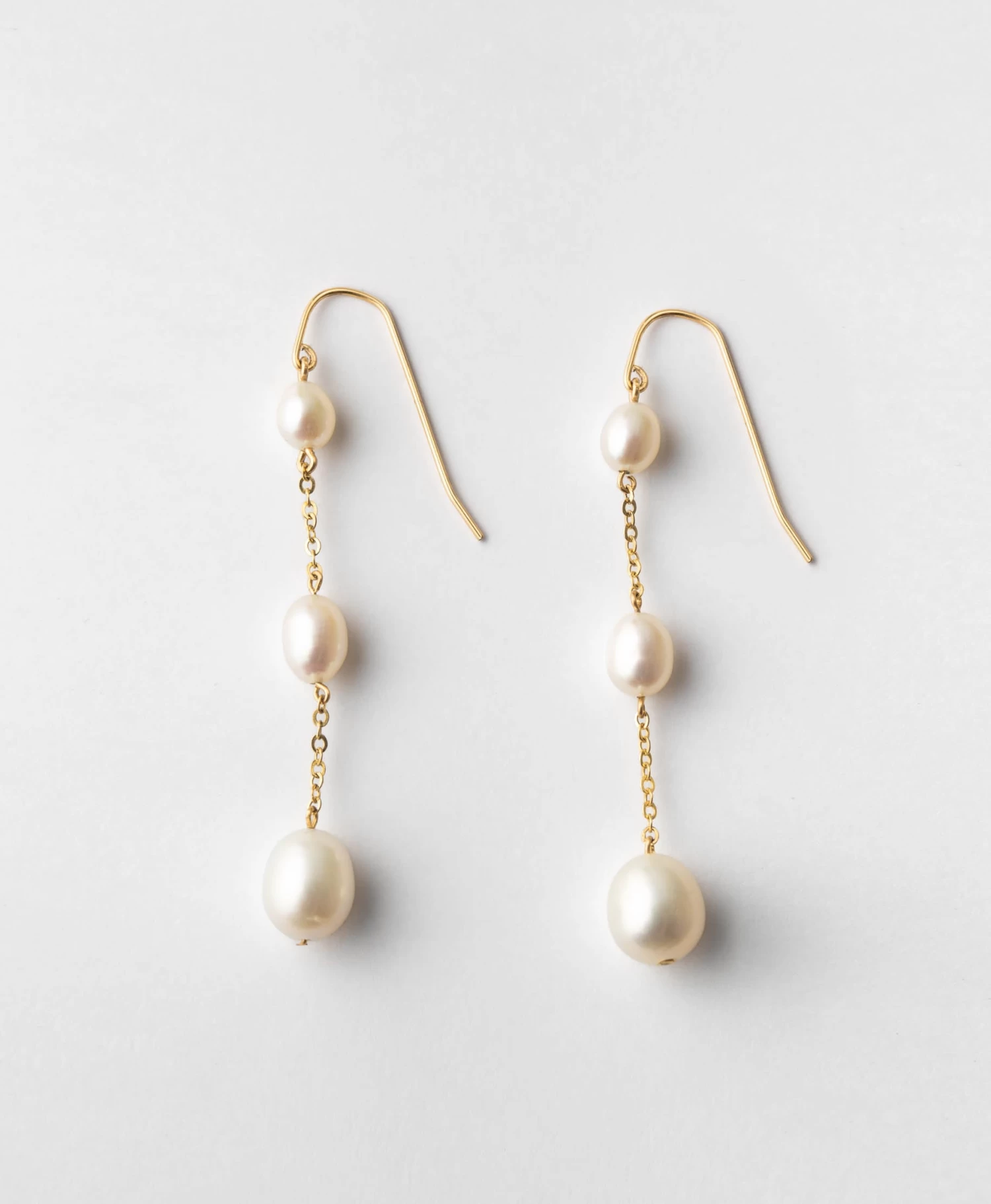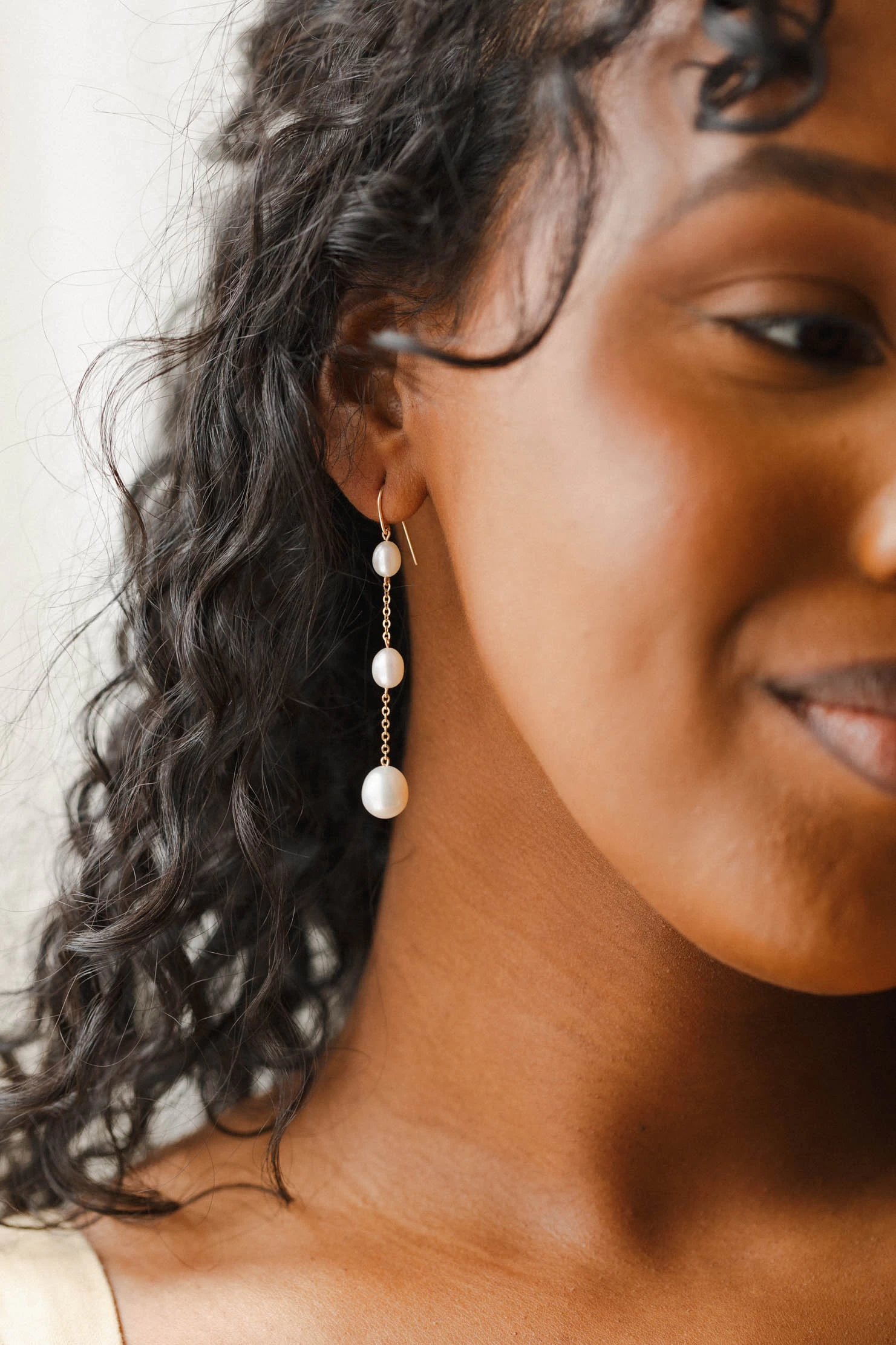 A dramatic cascade of pearls to dress up or down—from jeans and a tee to an evening gown. Starring three lit-from-within freshwater pearls (and a super comfy, elegant ear wire!) for an effortless glow wherever you go. Sold as a pair.