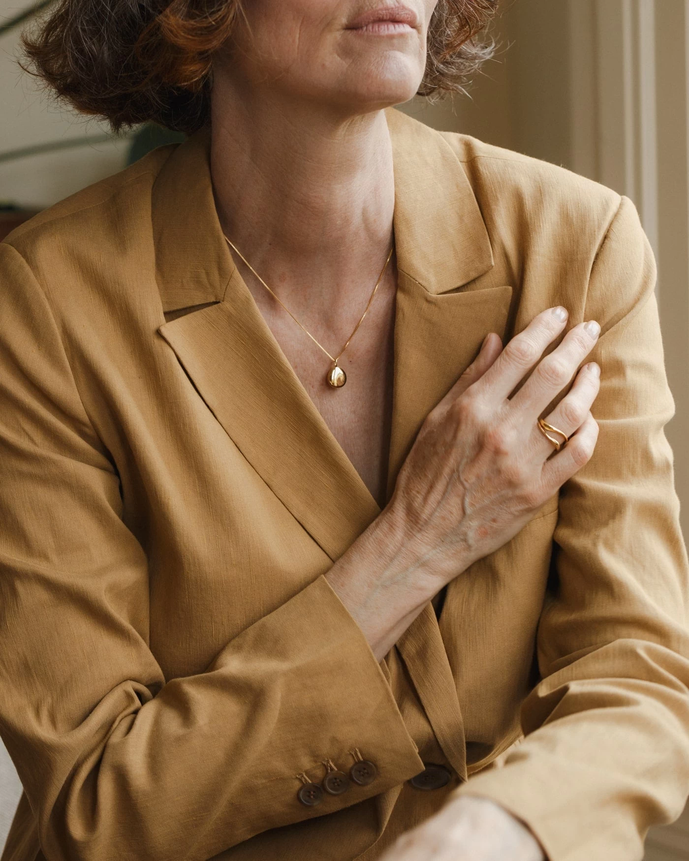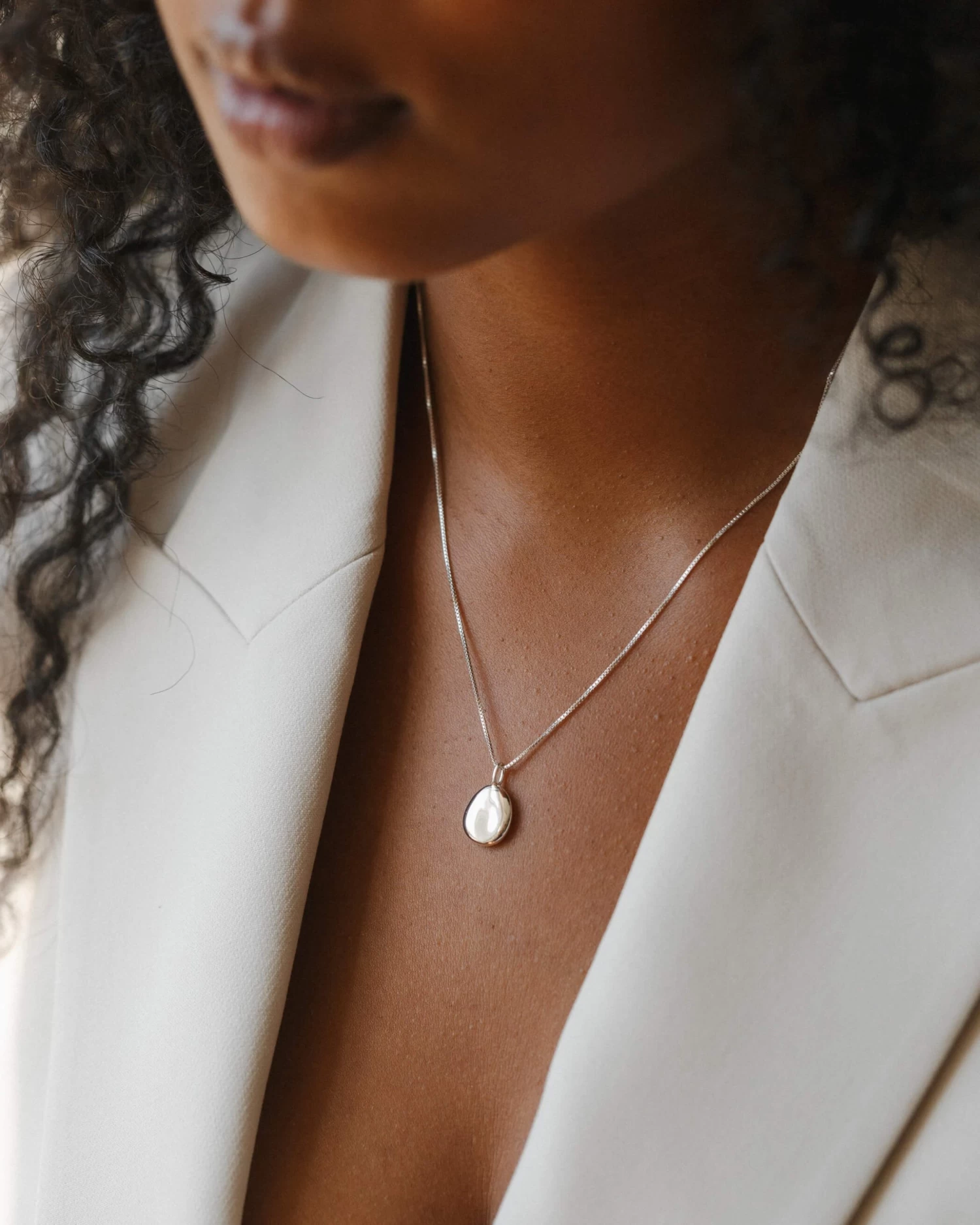 Feel the earth’s embrace with our elegant take on traditional worry stone pendants. Designed with a sculptural shape, soft indentation and calming aura to settle your mind and ground your look. Part of the Modern Serenity collection.